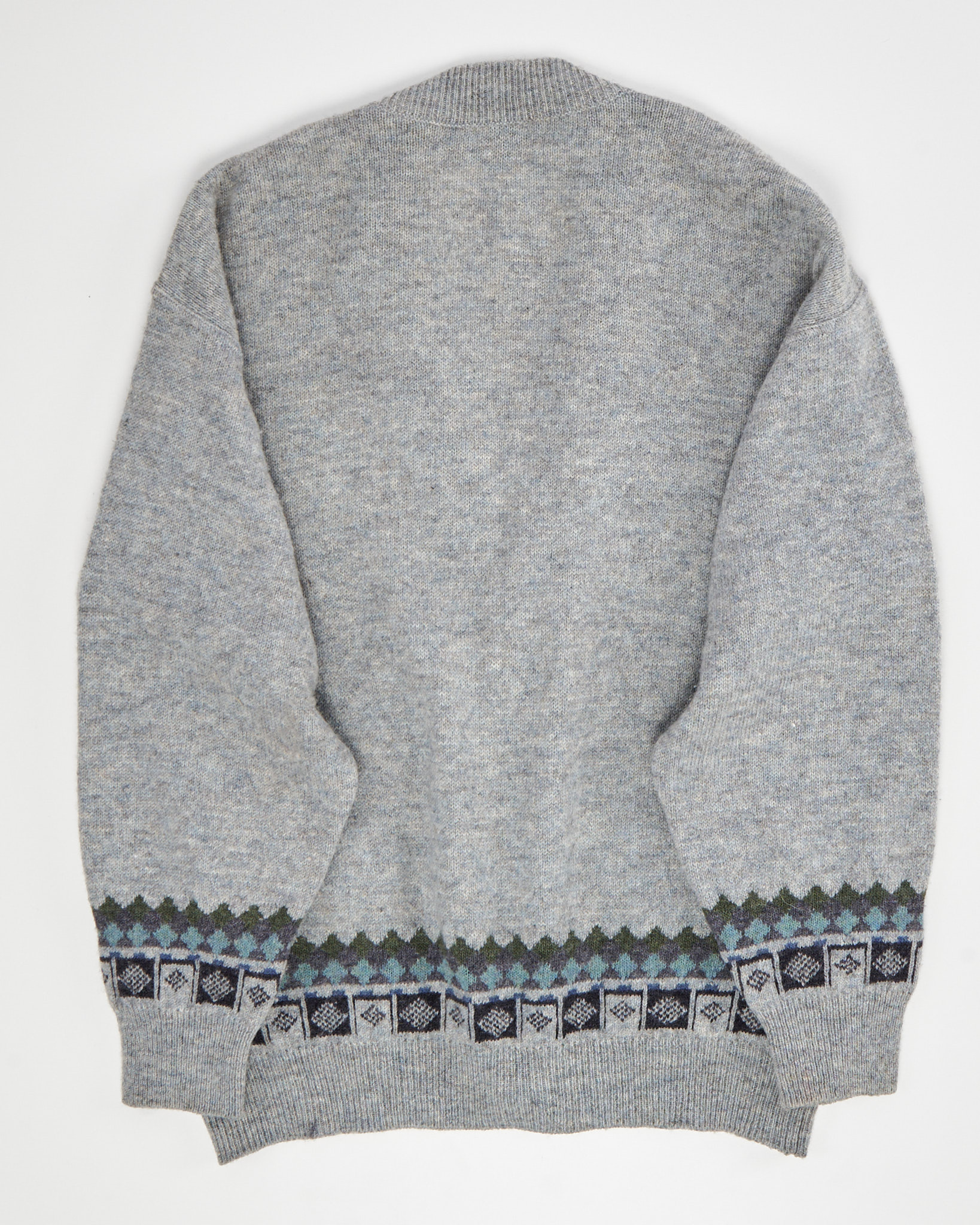 - Контрастный жаккардовый узор по низу и манжетам придаёт образу характер.