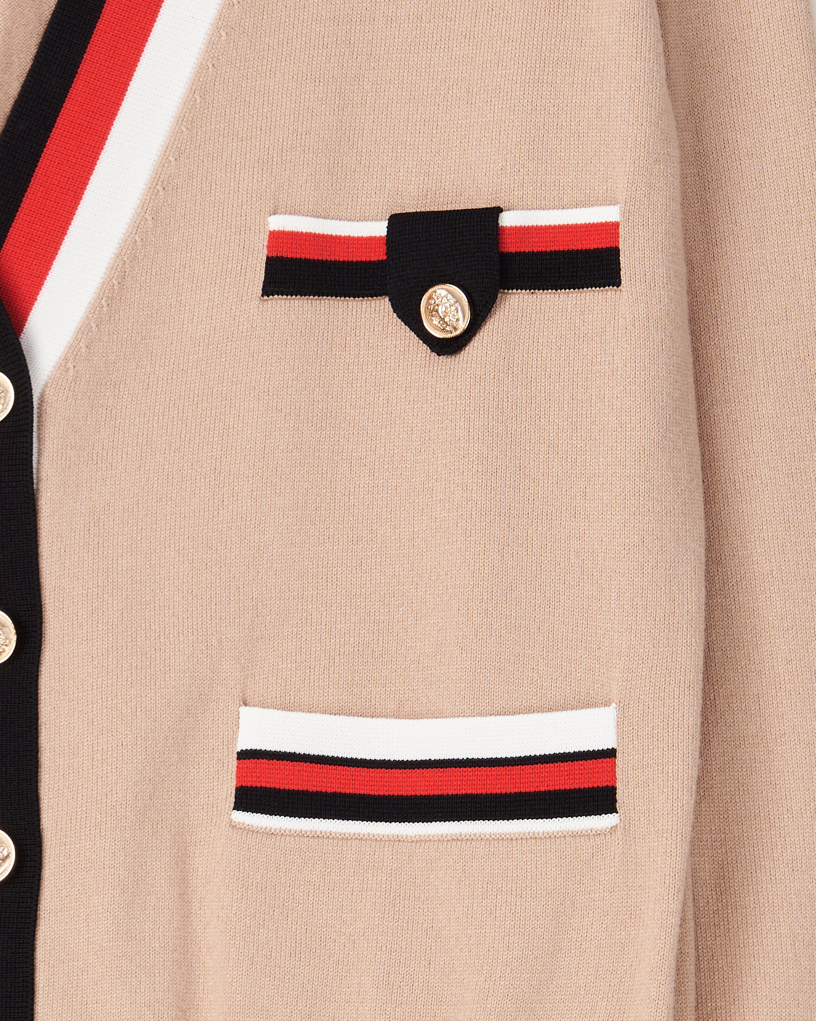 Кардиган Claudie Plerlot из смеси шерсти и хлопок. Прямой крой, с аккуратной посадкой по плечам. Контрастная кантовка, акцентные пуговицы с гравировкой.