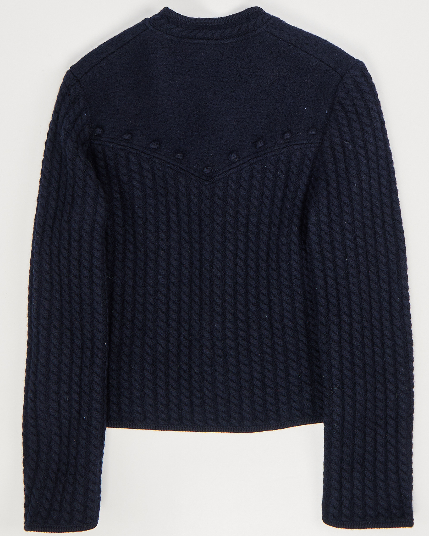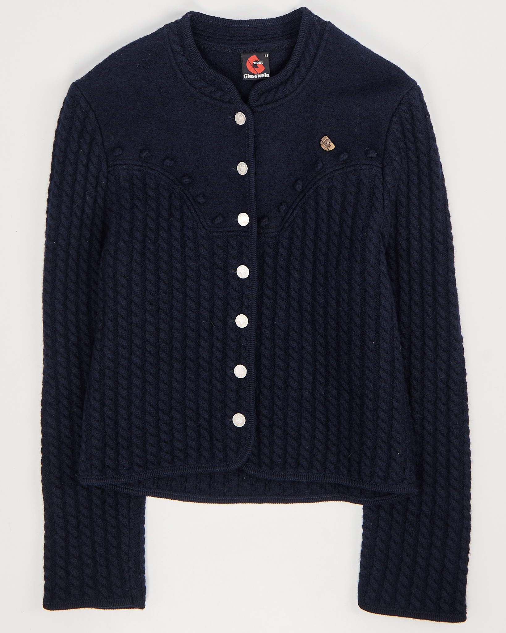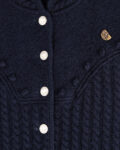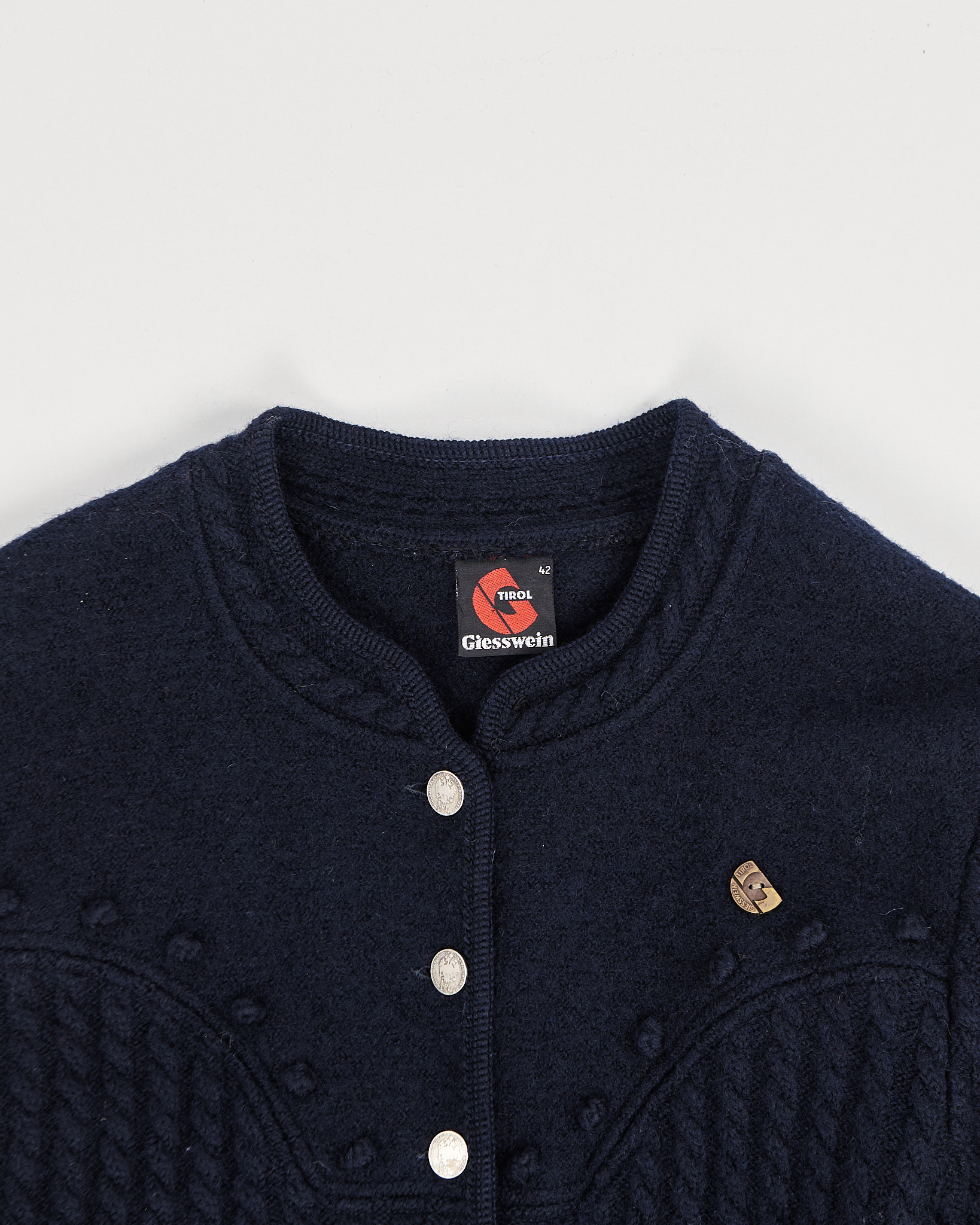Кардиган Giesswein Tirol из 100% шерсти, отмечен знаком woolmark. Посадка аккуратная, с четкой линией плеч и прямым силуэтом. Металлические пуговицы с гербом и фирменный значок на груди.