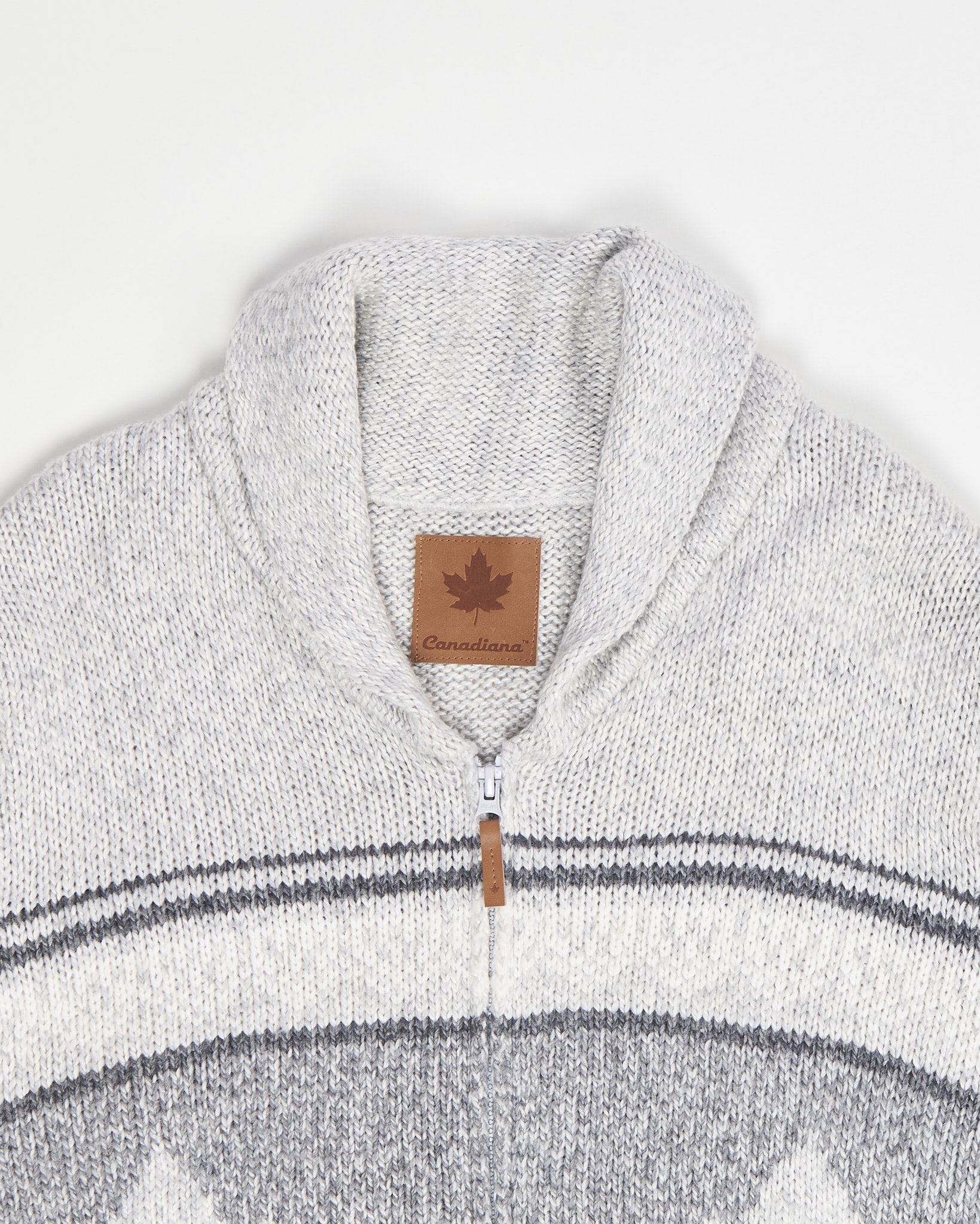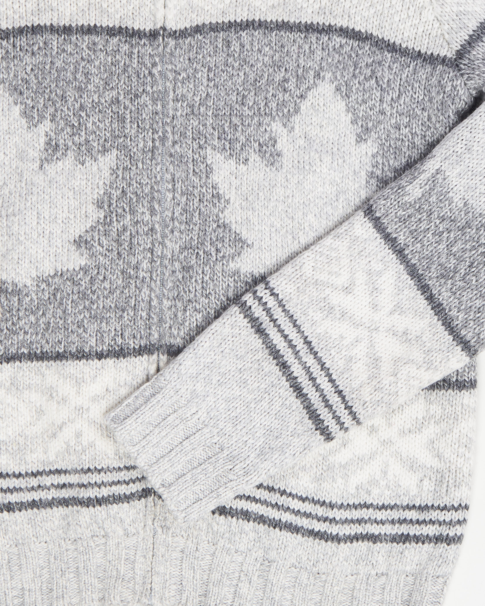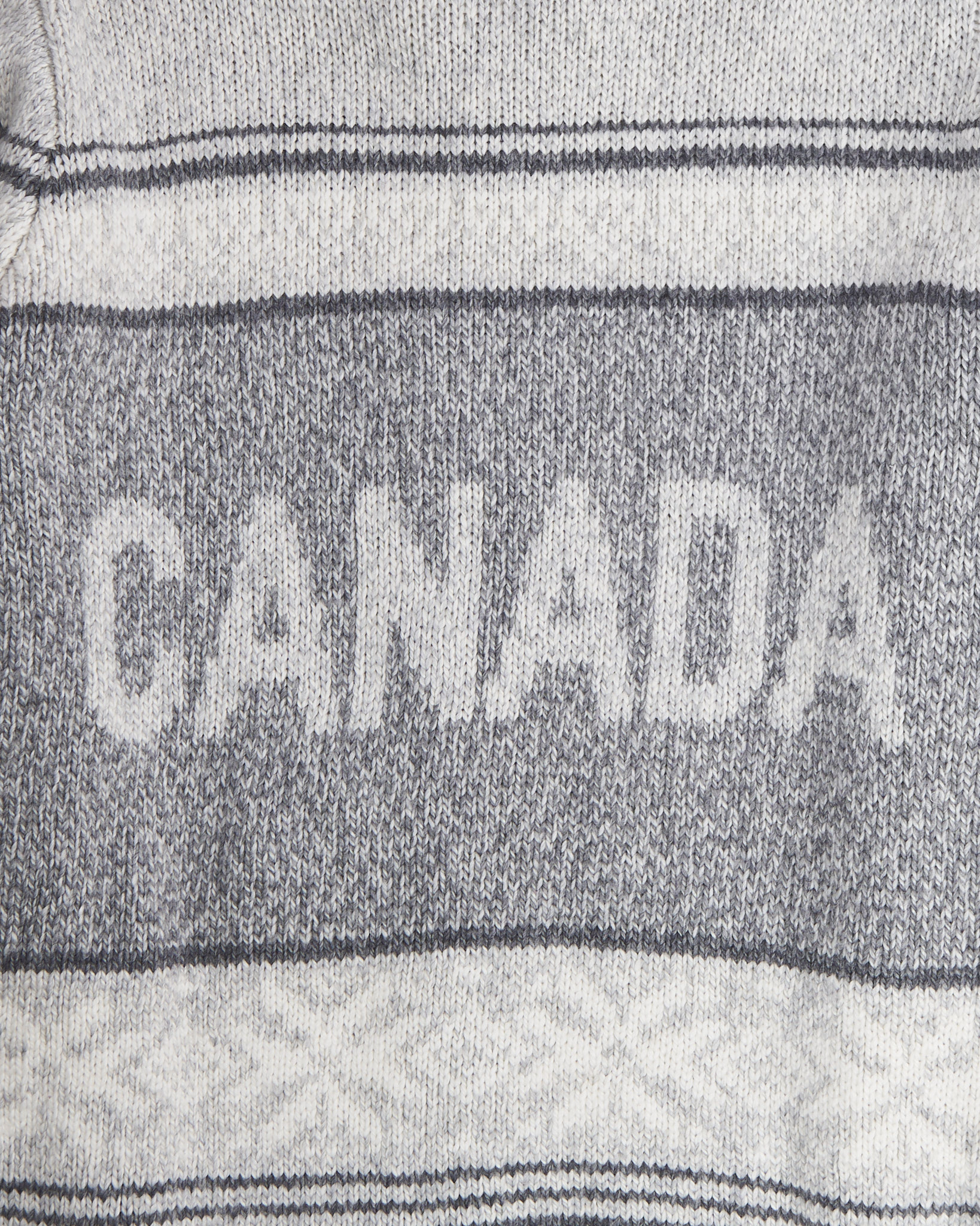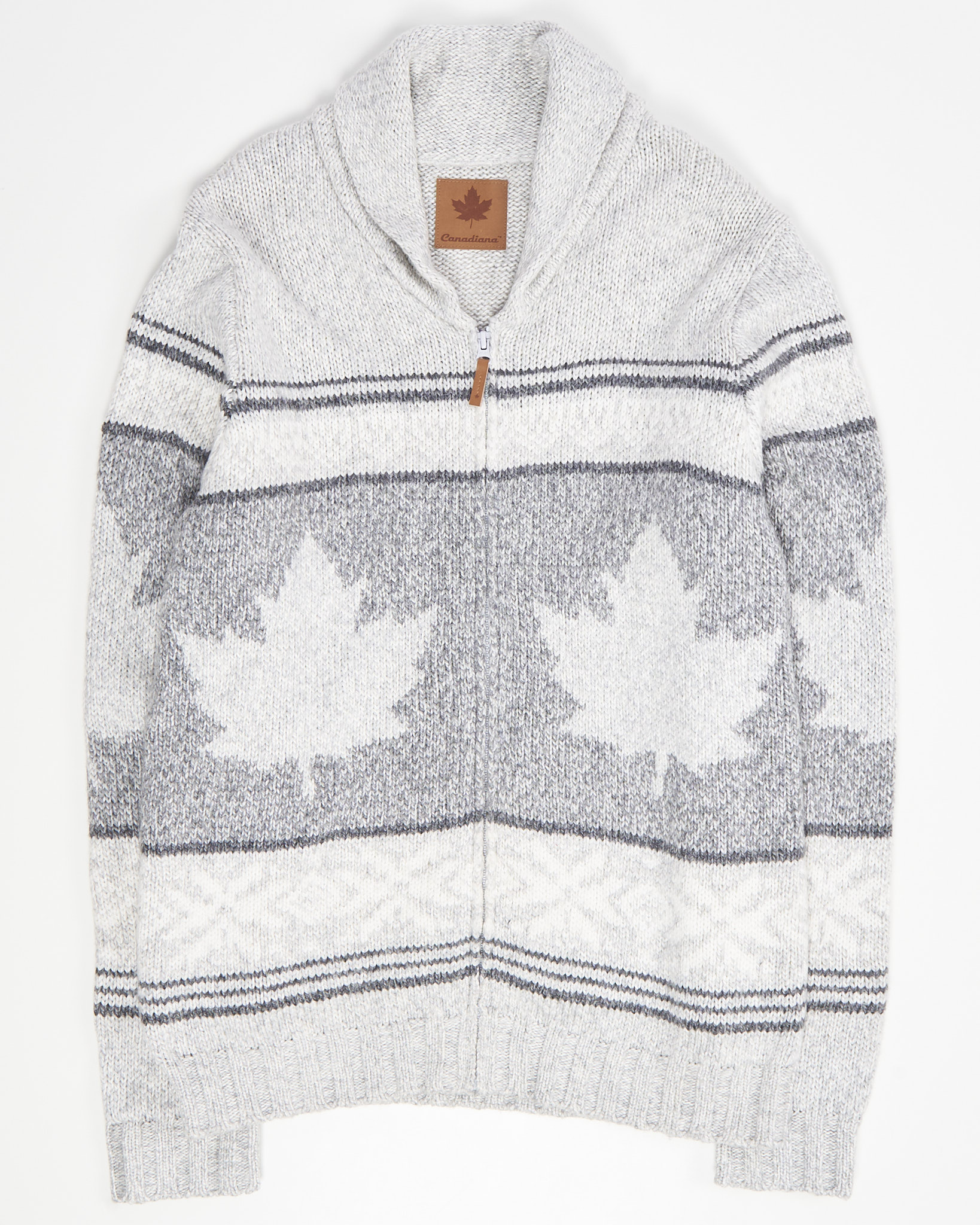 Объёмный кардиган на молнии с густой вязкой. Комфортная посадка подчёркивает расслабленный силуэт. Контрастные жаккардовые полосы и крупные кленовые листья придают акцент.