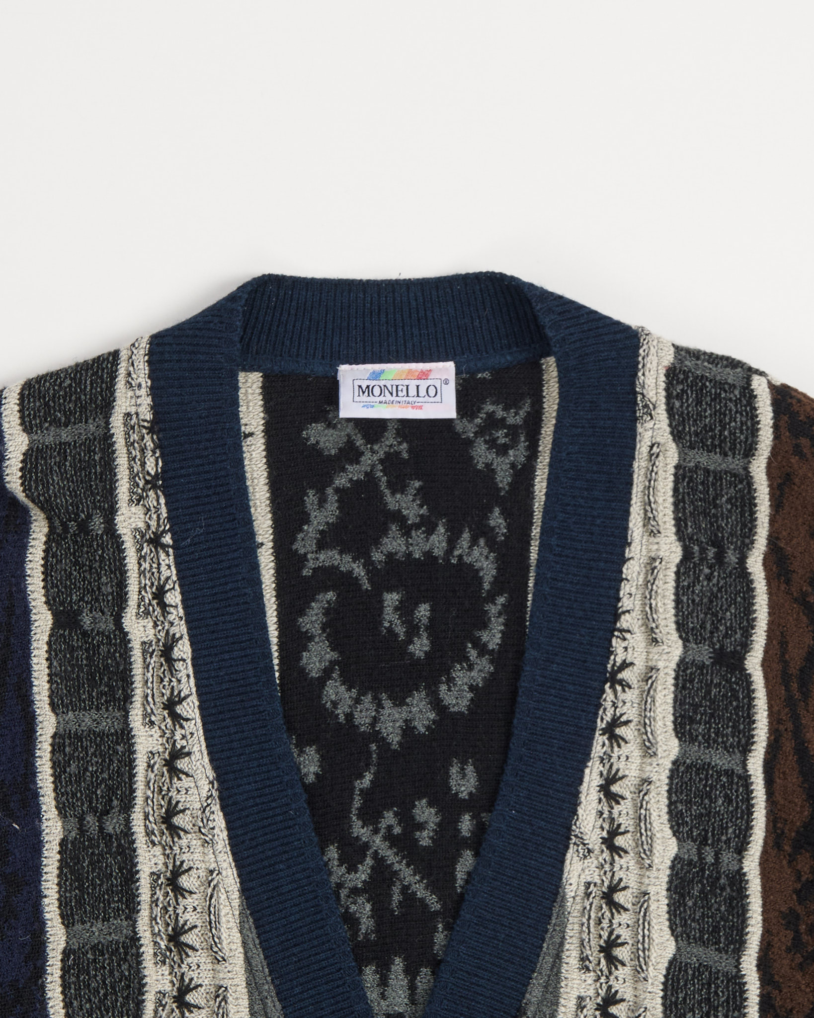 Винтажный кардиган из шерсти. Вертикальные полосы разной вязки, свободный крой, комфортная посадка.