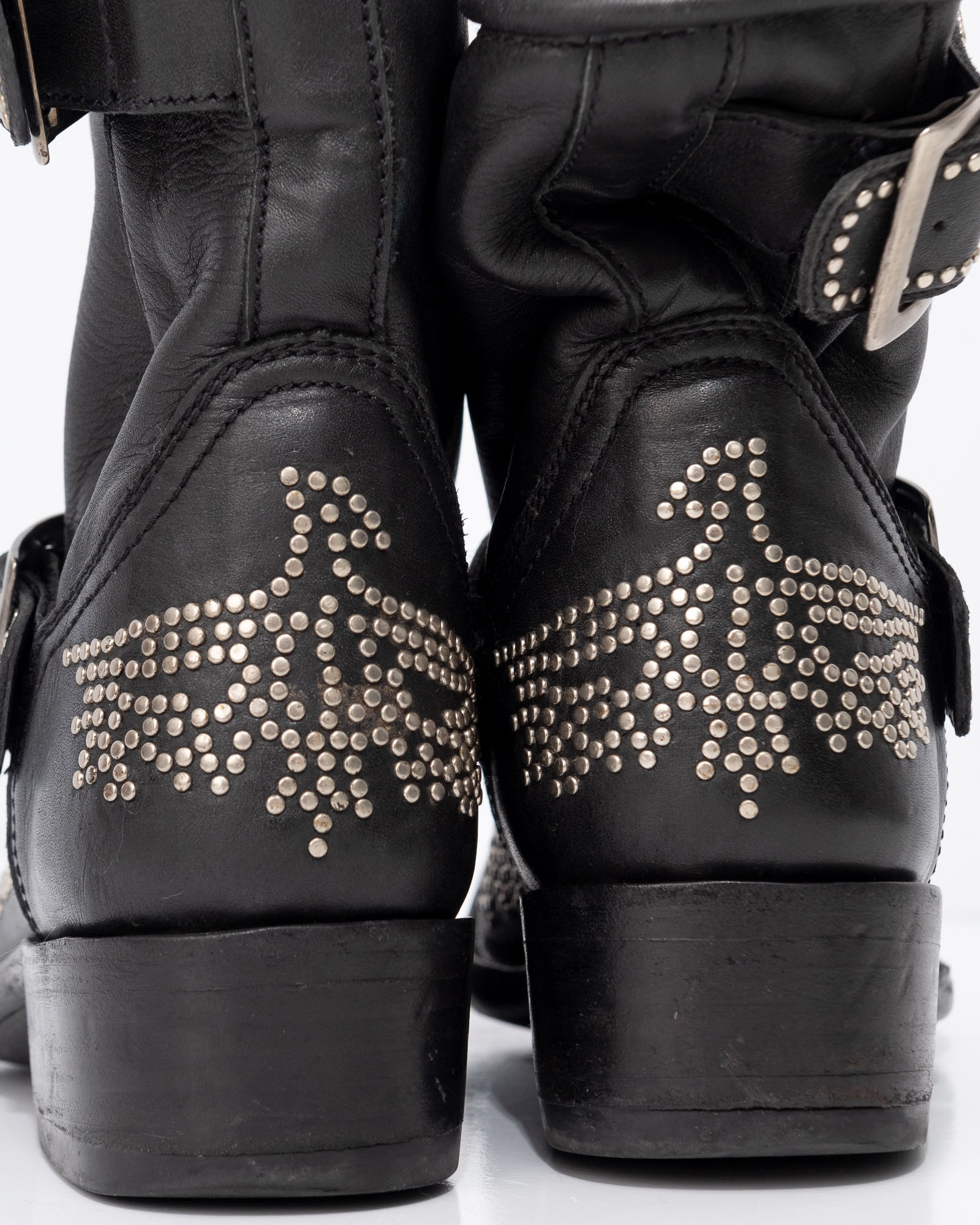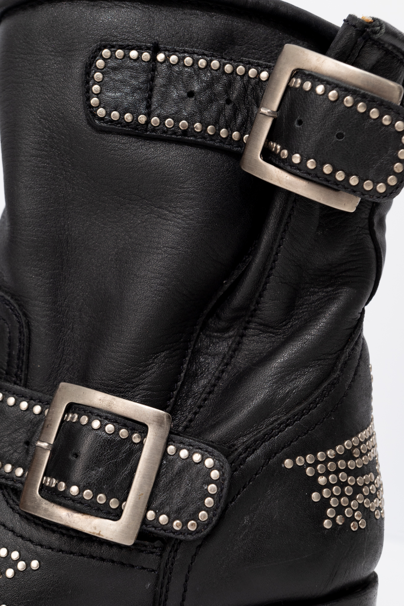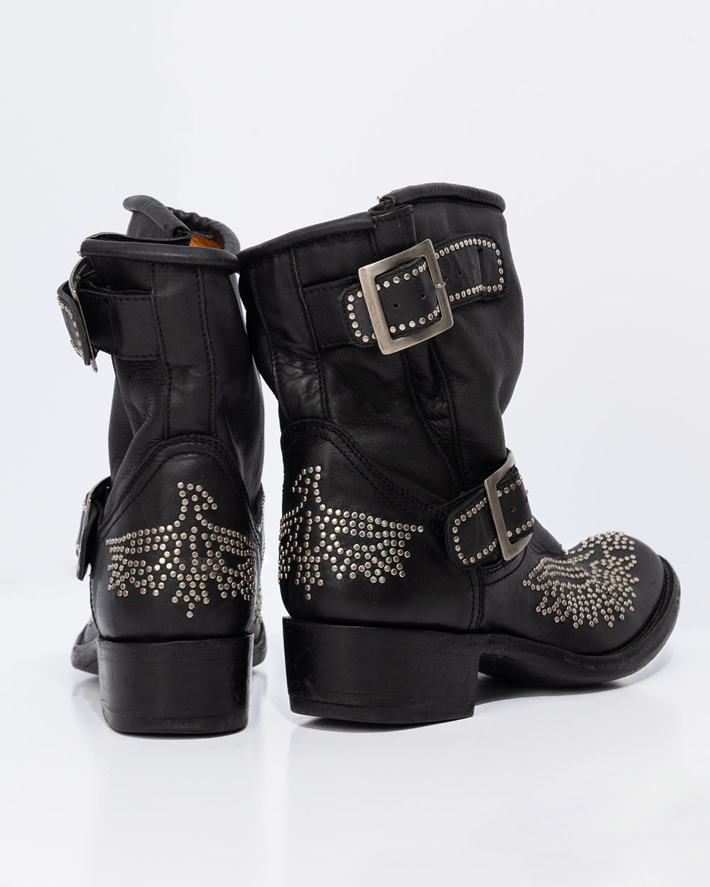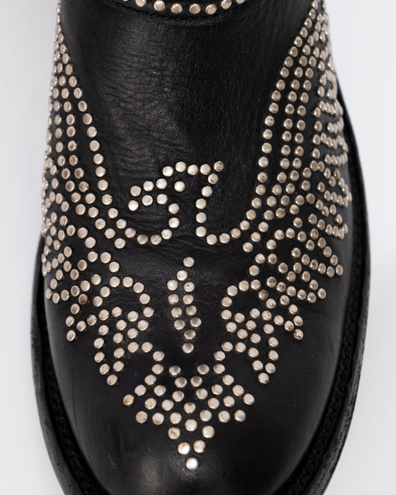 - Декор из металлических заклёпок на мыске и по бокам формирует выразительный акцент
