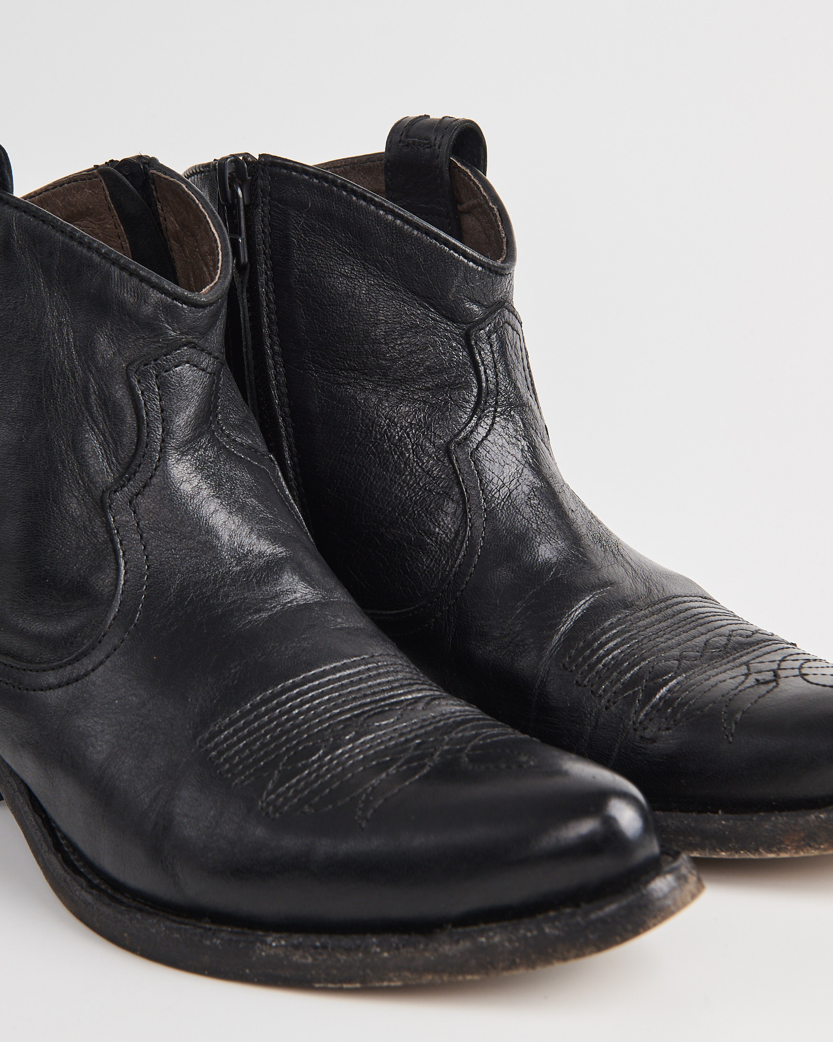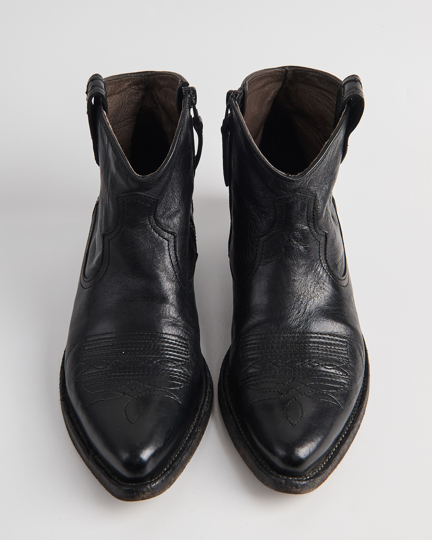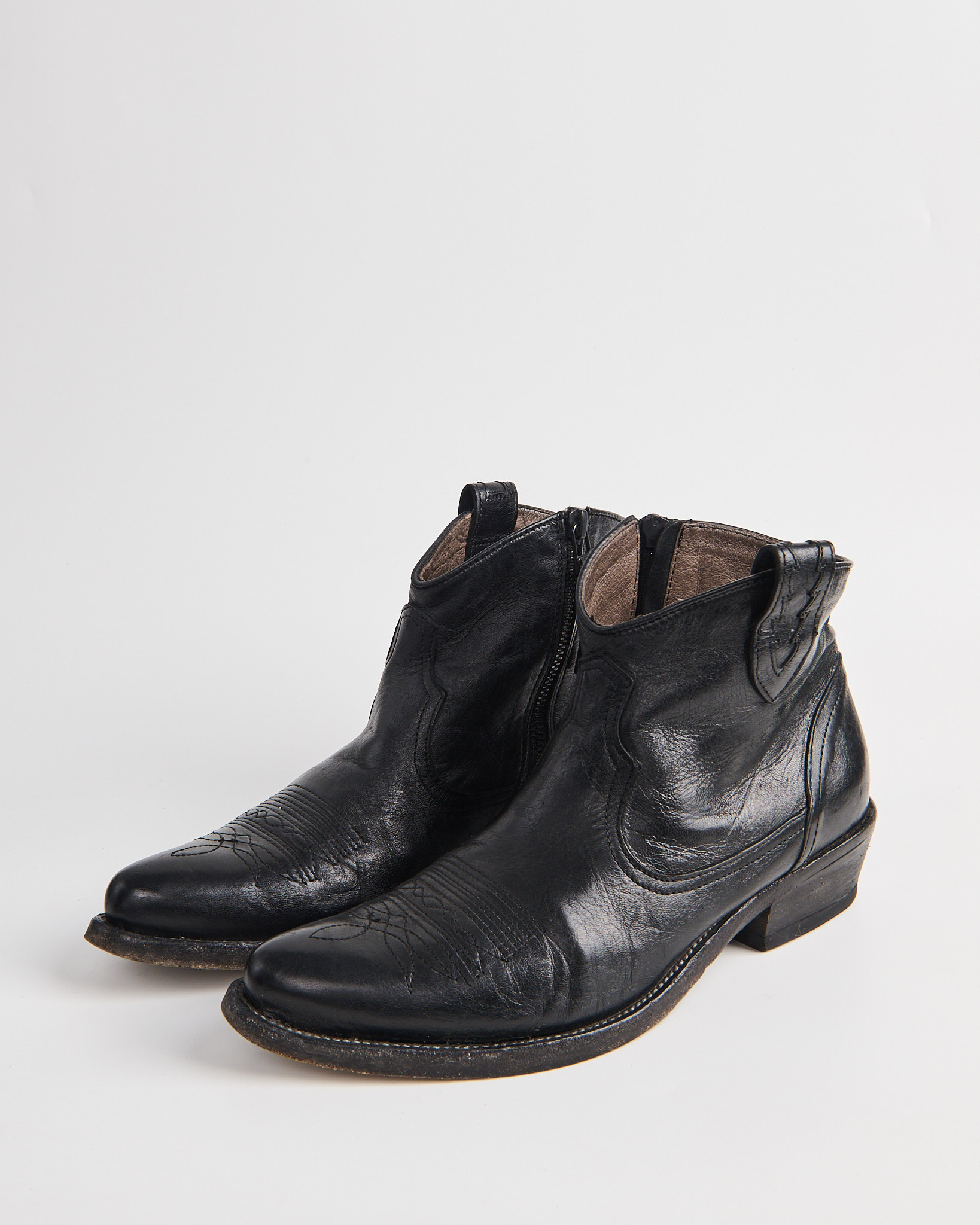 Казаки из натуральной кожи Vero Cuoio черного цвета. Зауженный нос. Декоративная прострочка на мысе и характерные линии по корпусу. Сбоку молния. Замок с петлей. Устойчивый каблук с легкой скошенной формой.