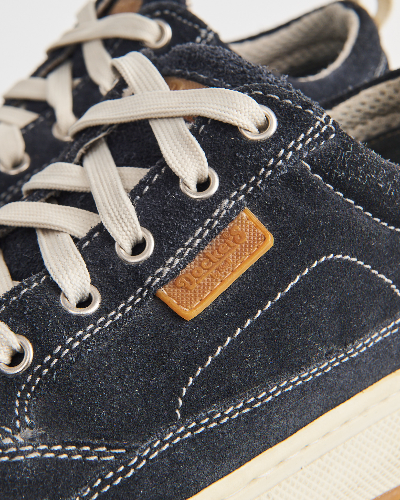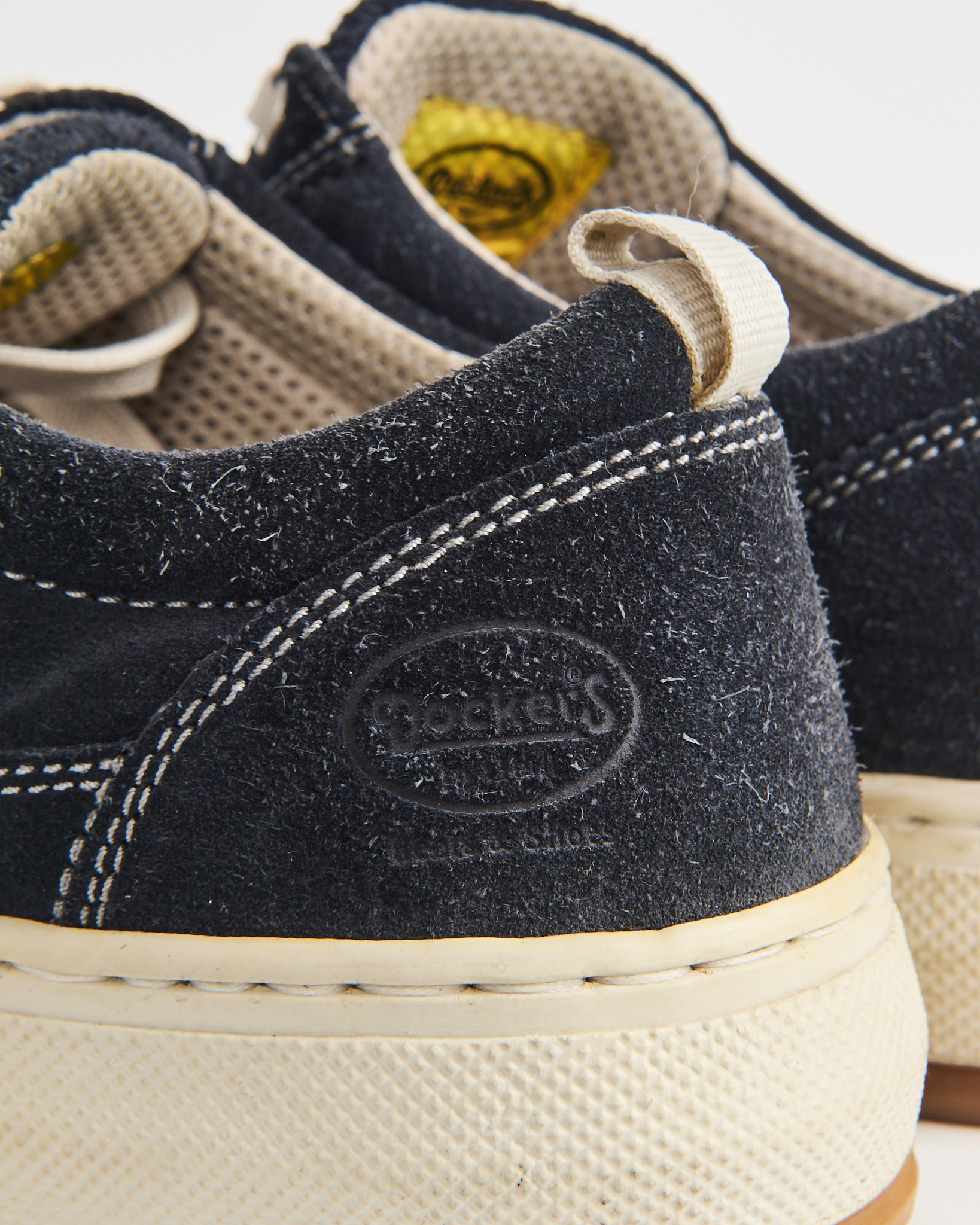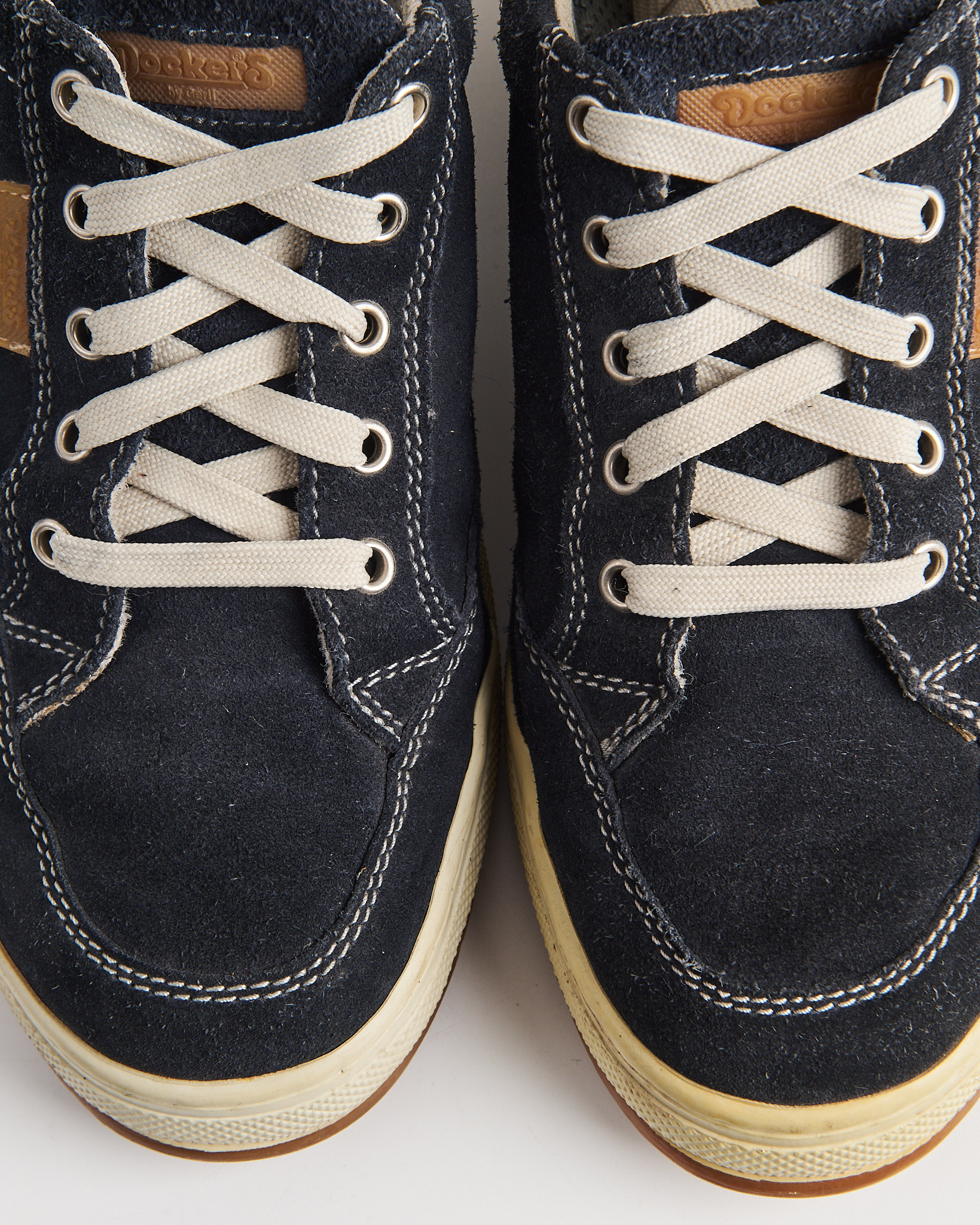 Замшевые кеды Dockers темно-синего цвета. Контрастная строчка. Металлические люверсы. Сбоку фирменный патч с логотипом. Подошва светлая, с выраженным протектором и плотной кромкой. Внутренняя часть с текстильной подкладкой.