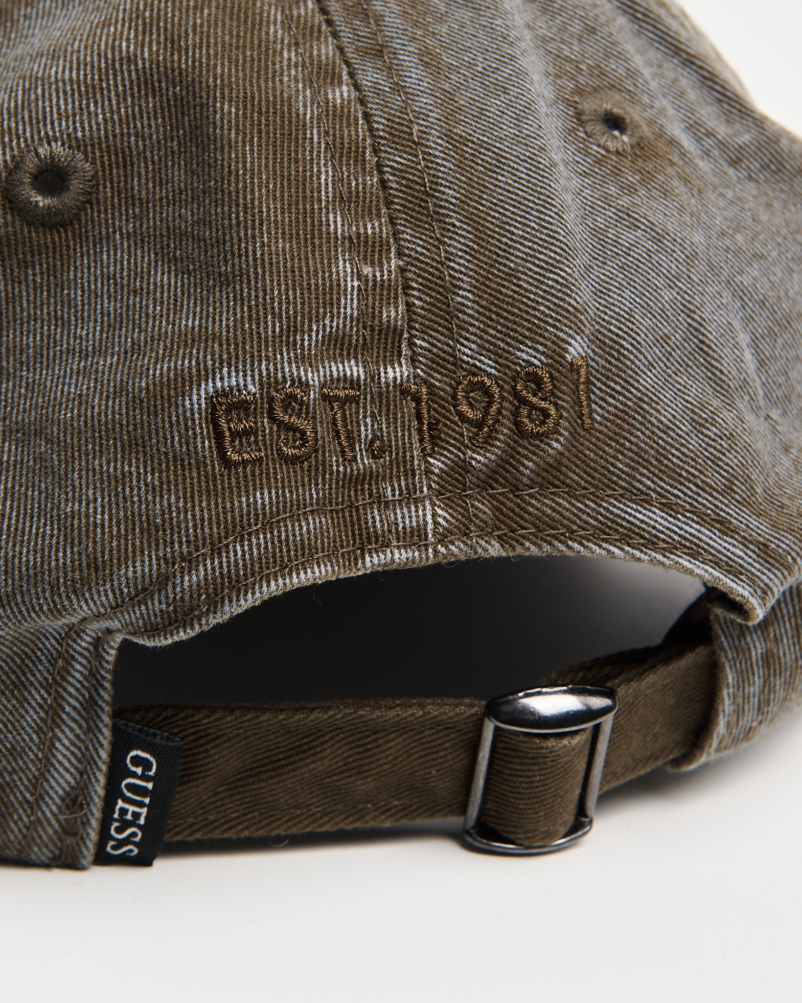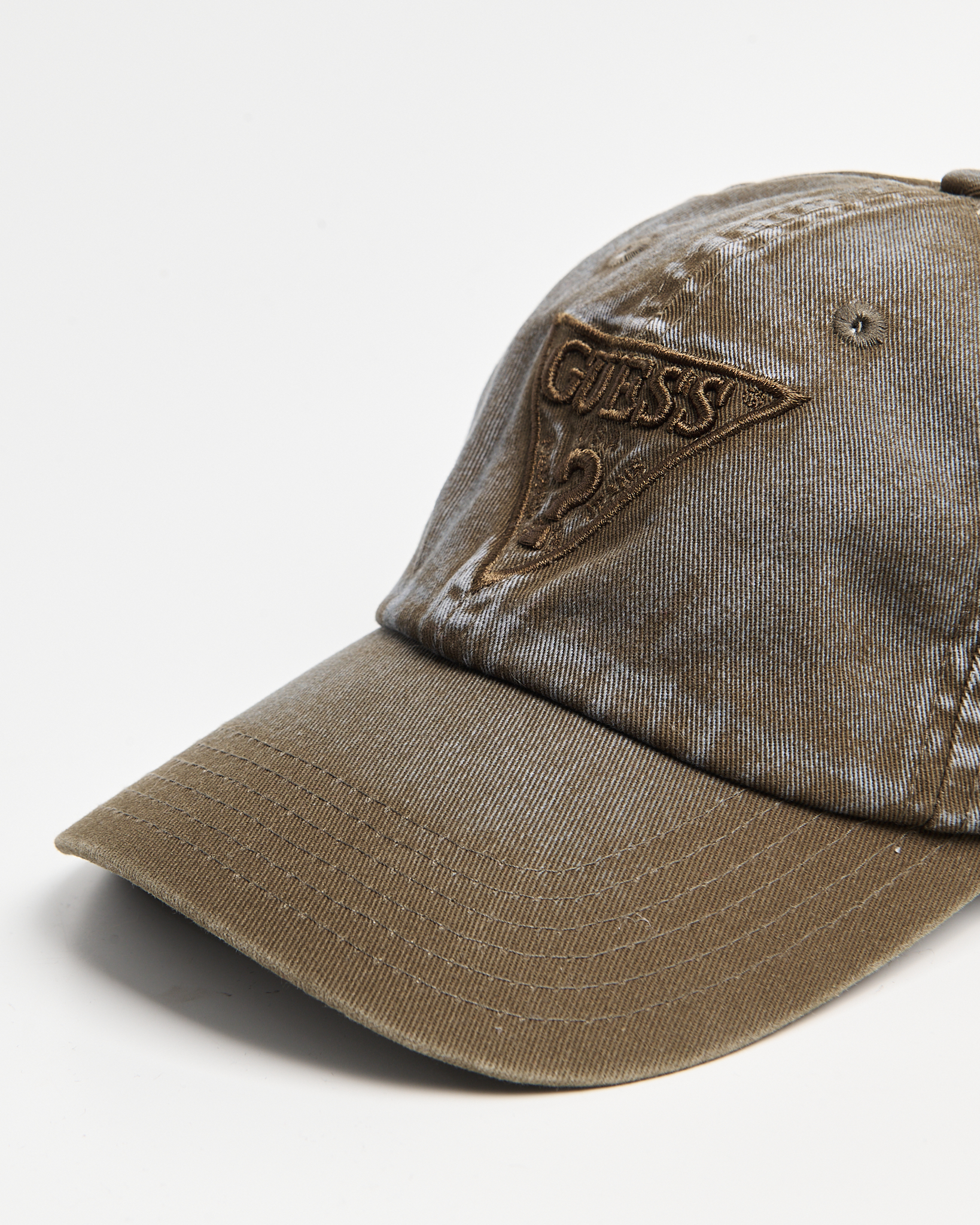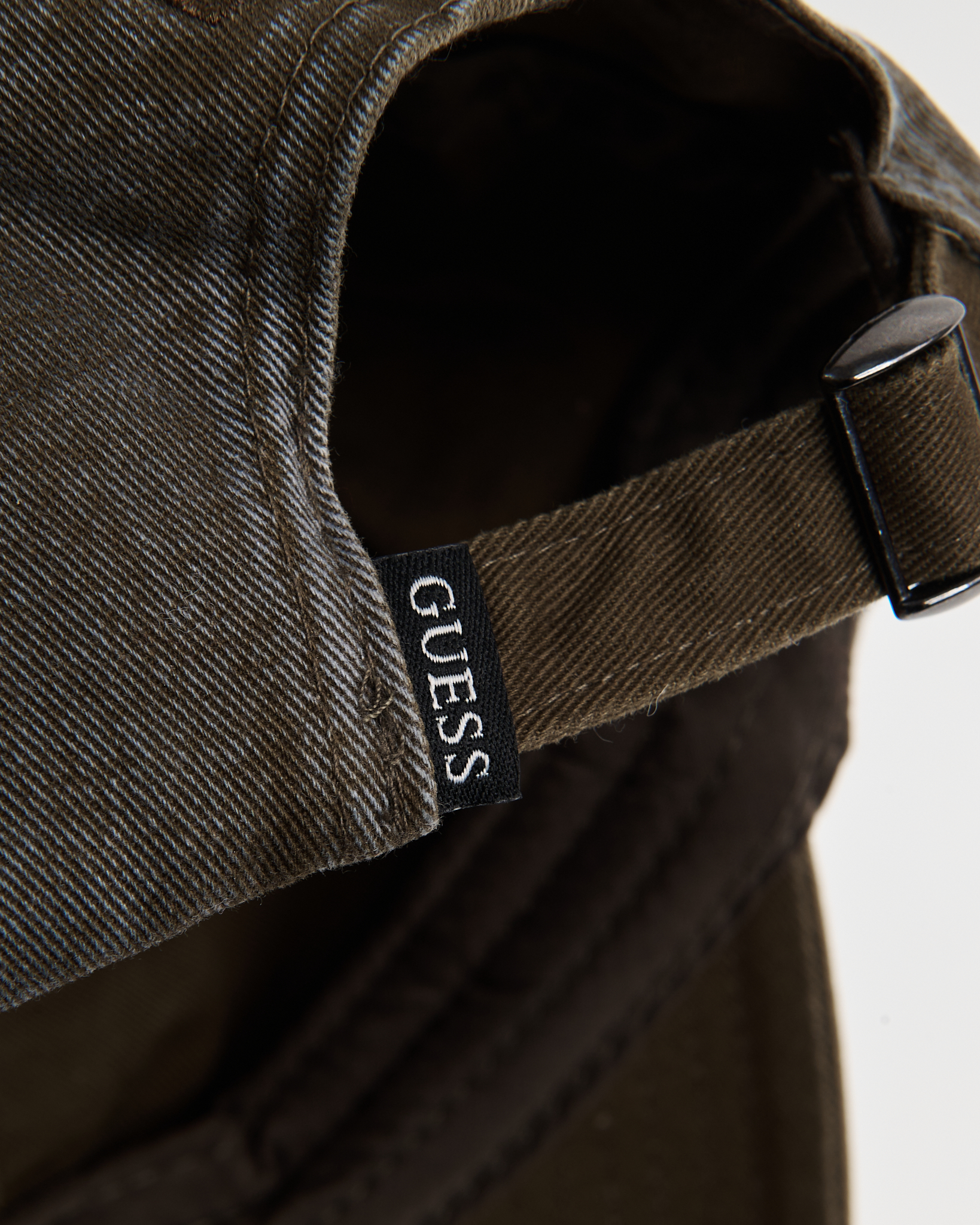 Кепка из плотного хлопка в зеленом оттенке. Материал приятный на ощупь, с эффектом варки. Посадка регулируется ремешком, объёмная вышивка с логотипом Guess.