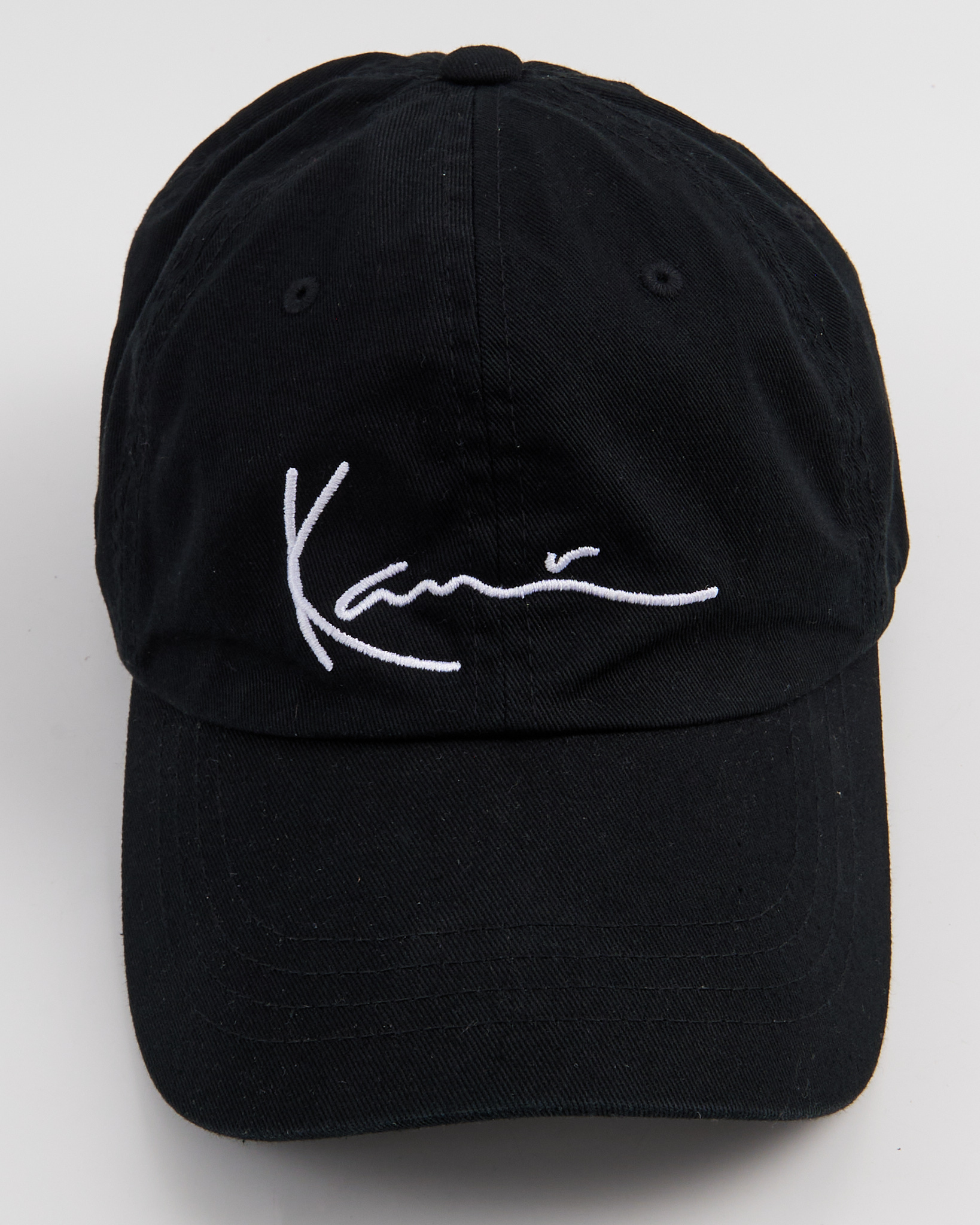 Кепка Karl Kani из плотного хлопка чёрного цвета. Посадка классическая, контрастная белая вышивка с фирменным логотипом Karl Kani.