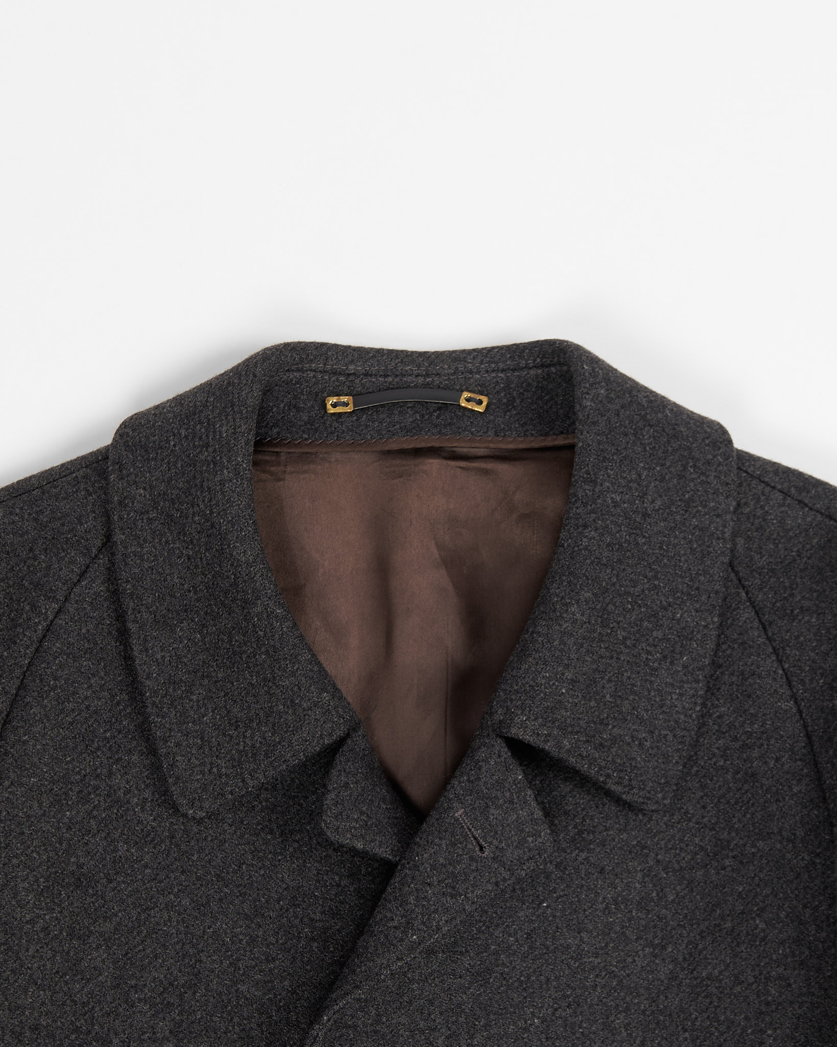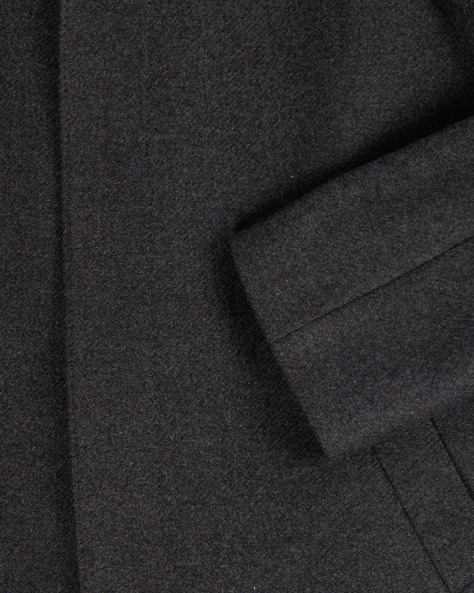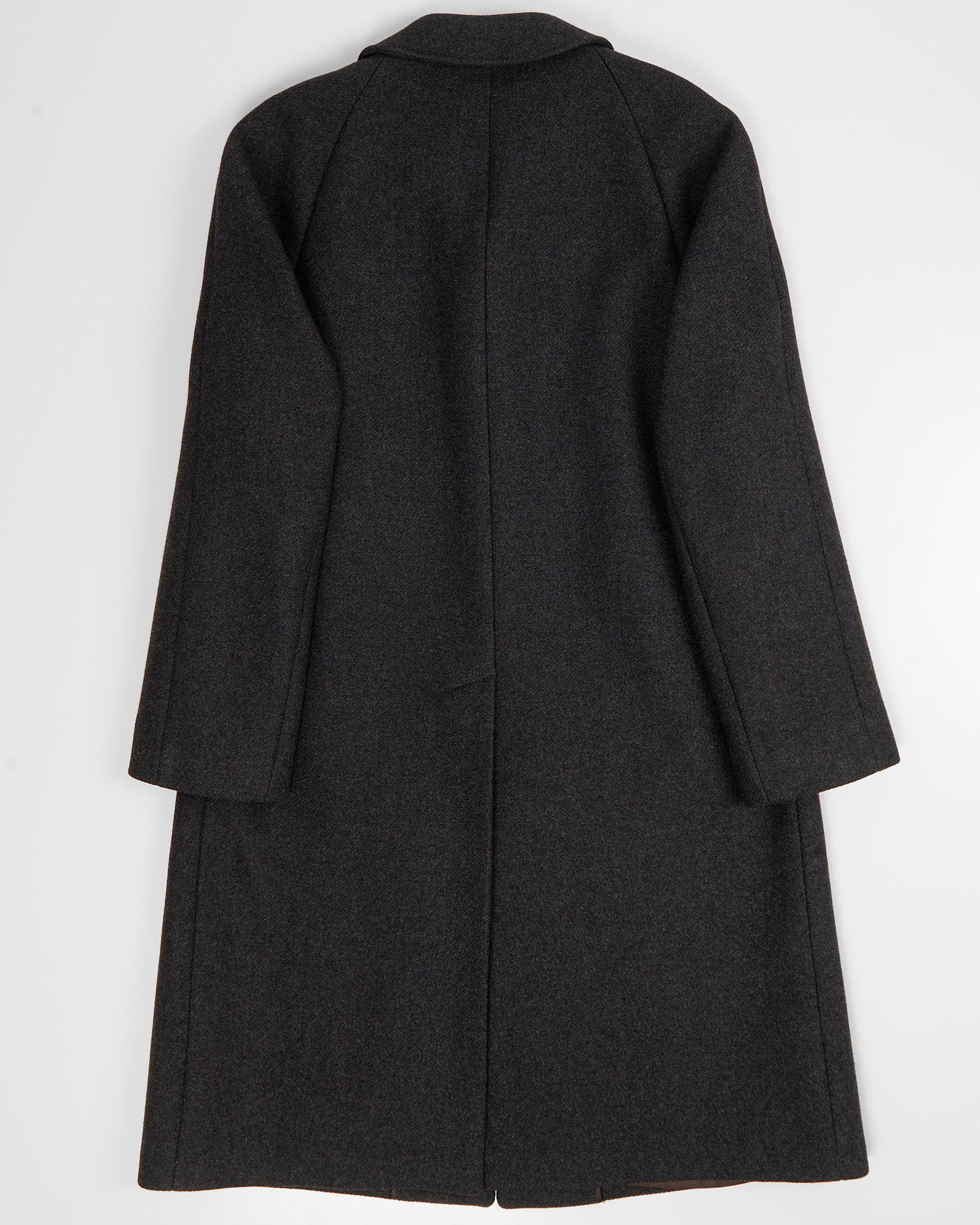 Пальто из натуральной шертси. Отложной воротник, переходящий в потайную застежку. Два больших функциональных кармана. Есть высокая шлица для удобства.