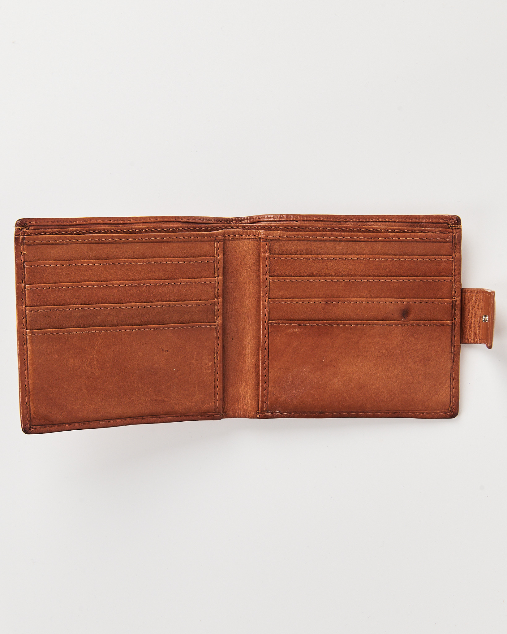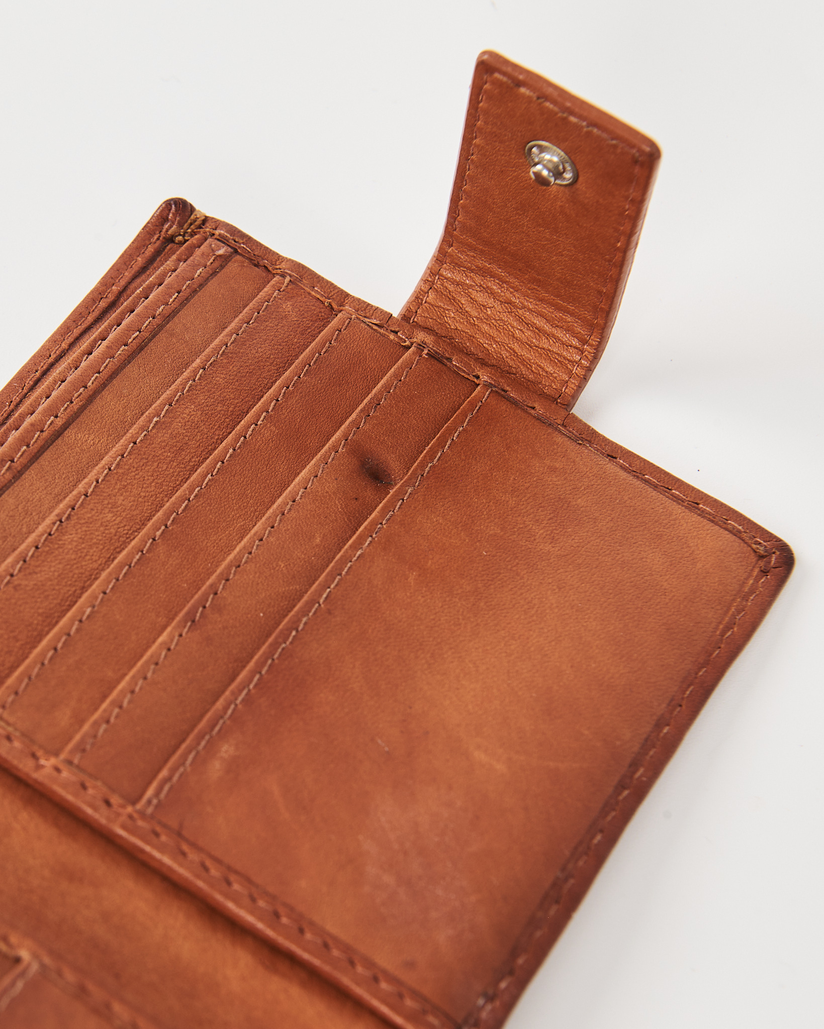 Кошелёк из натуральной кожи коричневого оттенка. Форма компактная, удобно лежит в руке и легко помещается в карман. Внутри предусмотрены отделения для карт и купюр, конструкция продумана для повседневного использования.