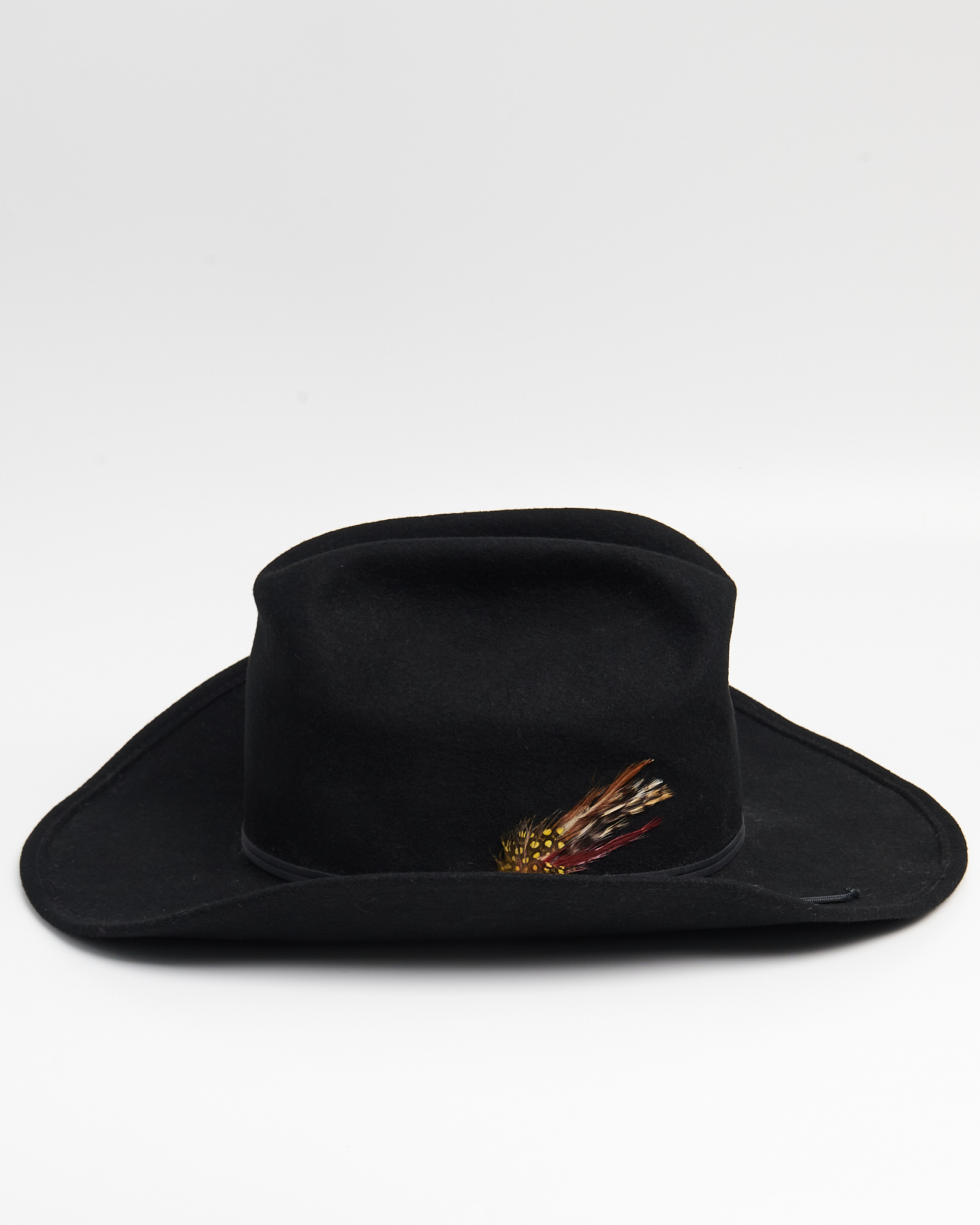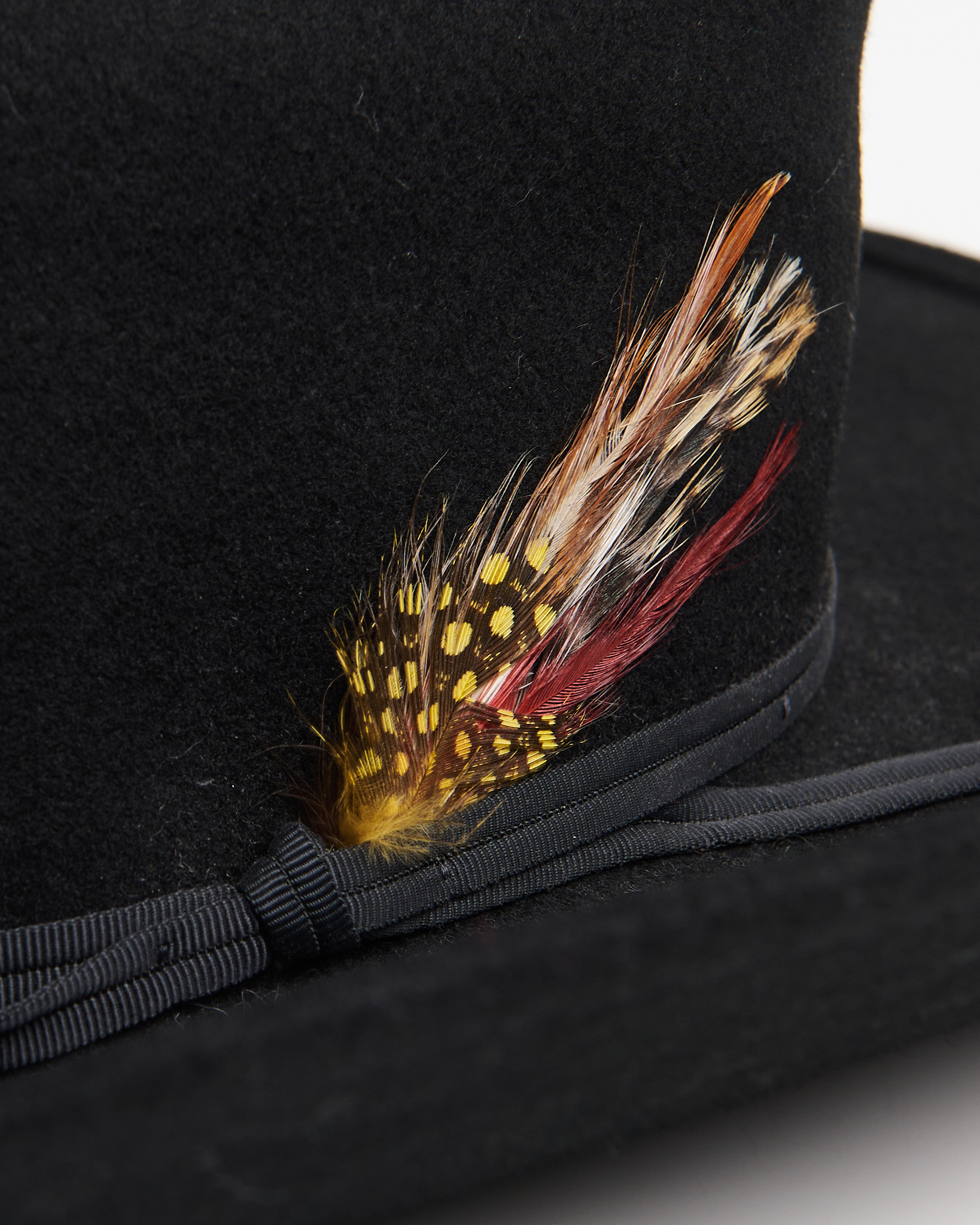 Шляпа из плотной натуральной шерсти, отмечена знаком woolmark. Широкие поля и декоративная лента с перьями.