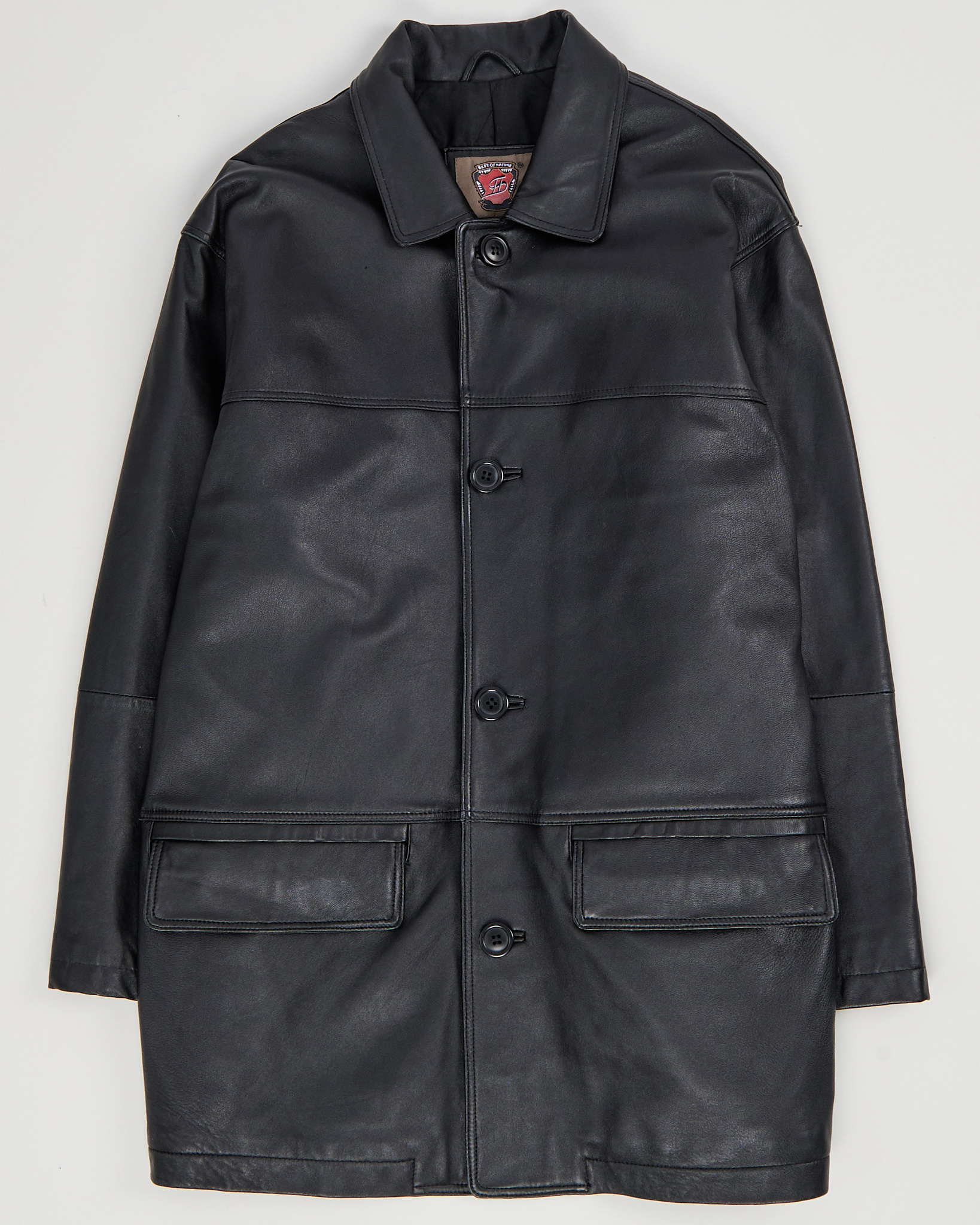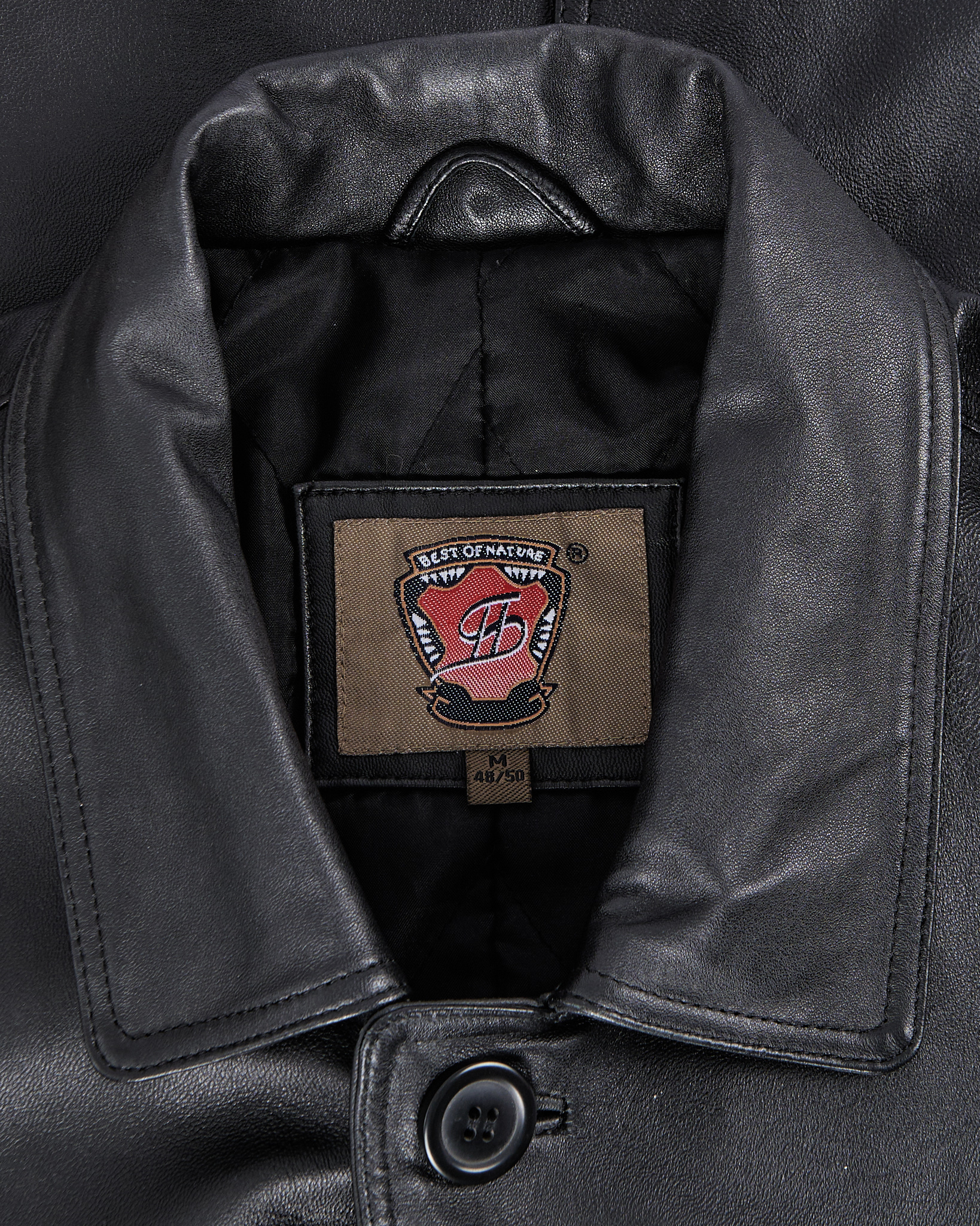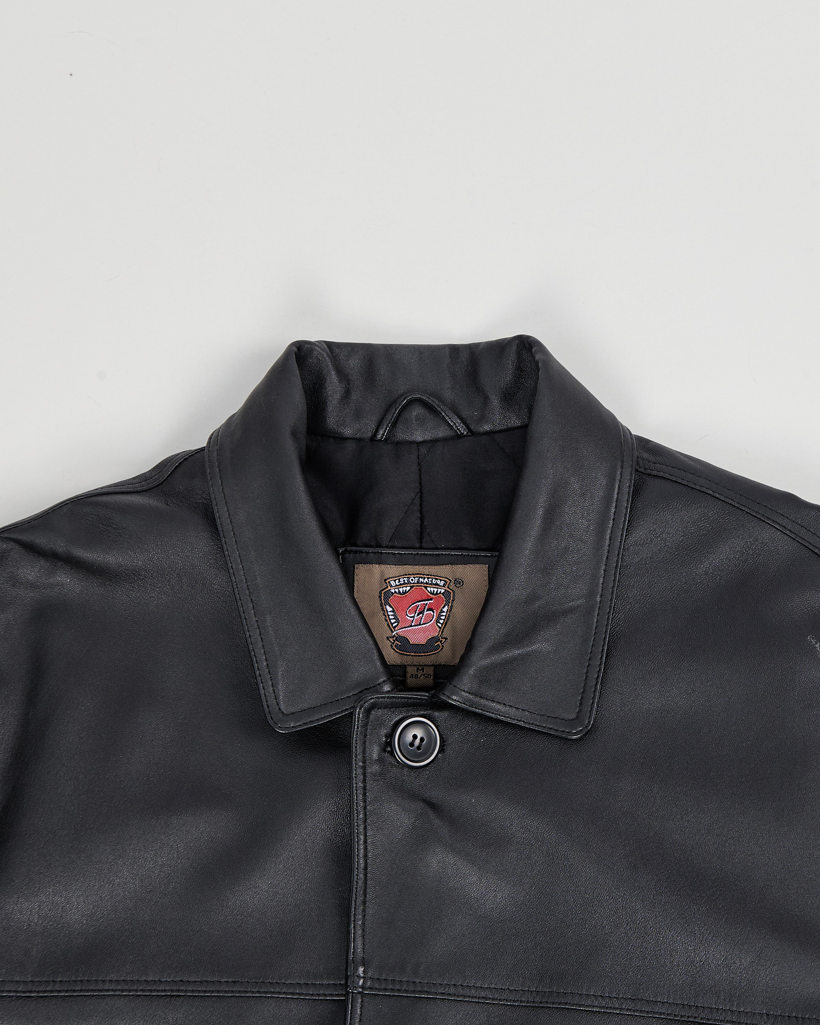 Классическая кожаная куртка от Best of Nature прямого кроя. Отложной воротник, застёжка на пуговицах, два накладных кармана.