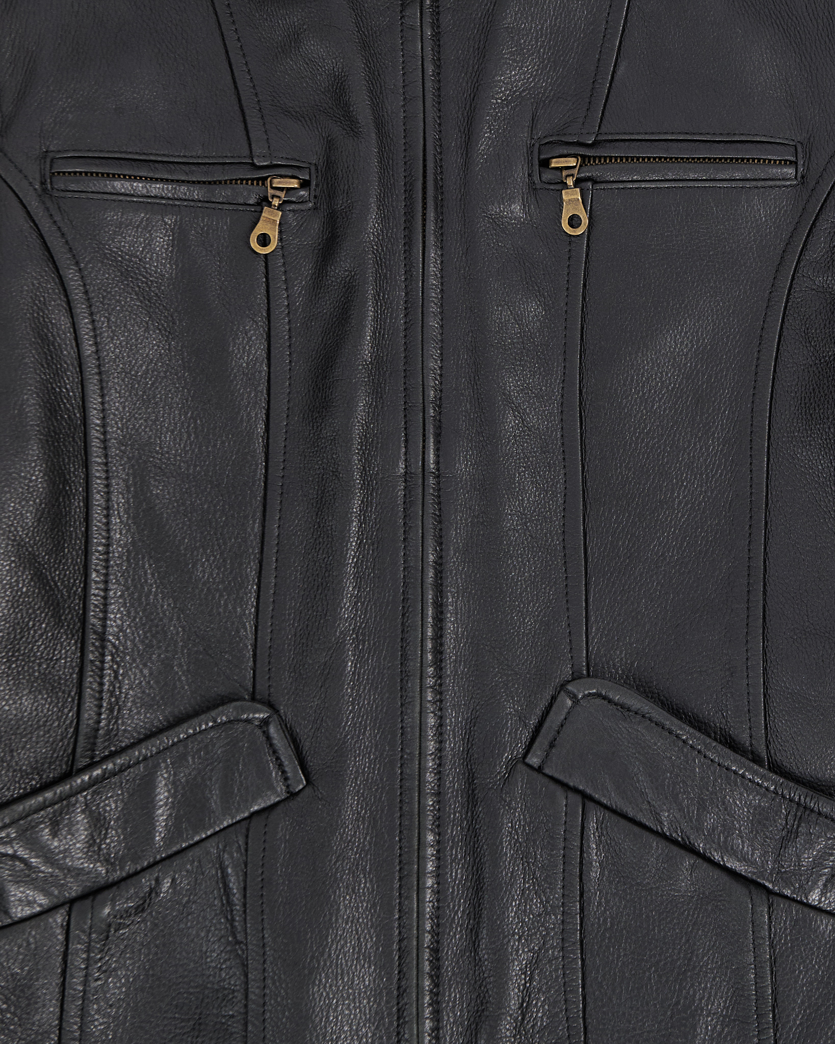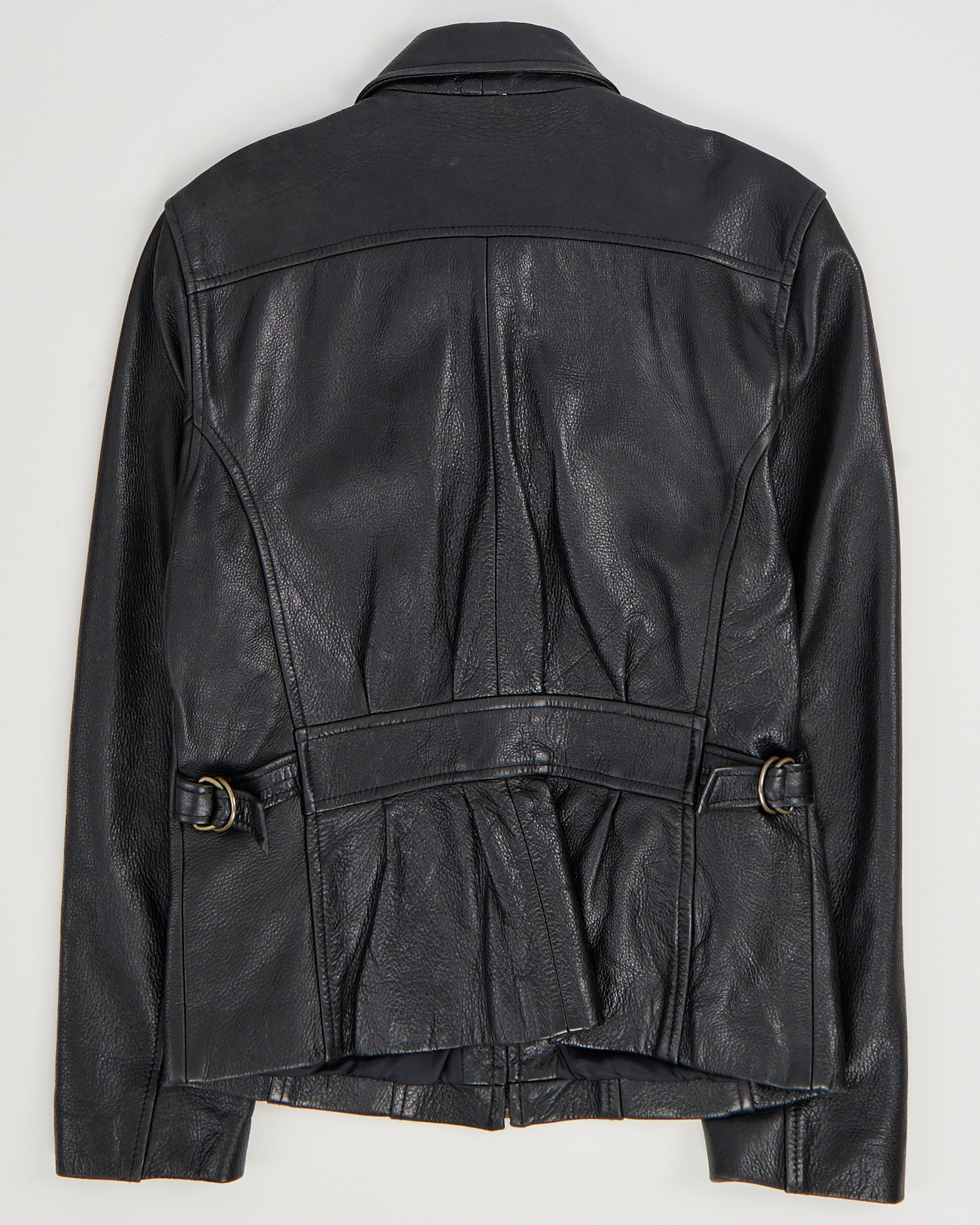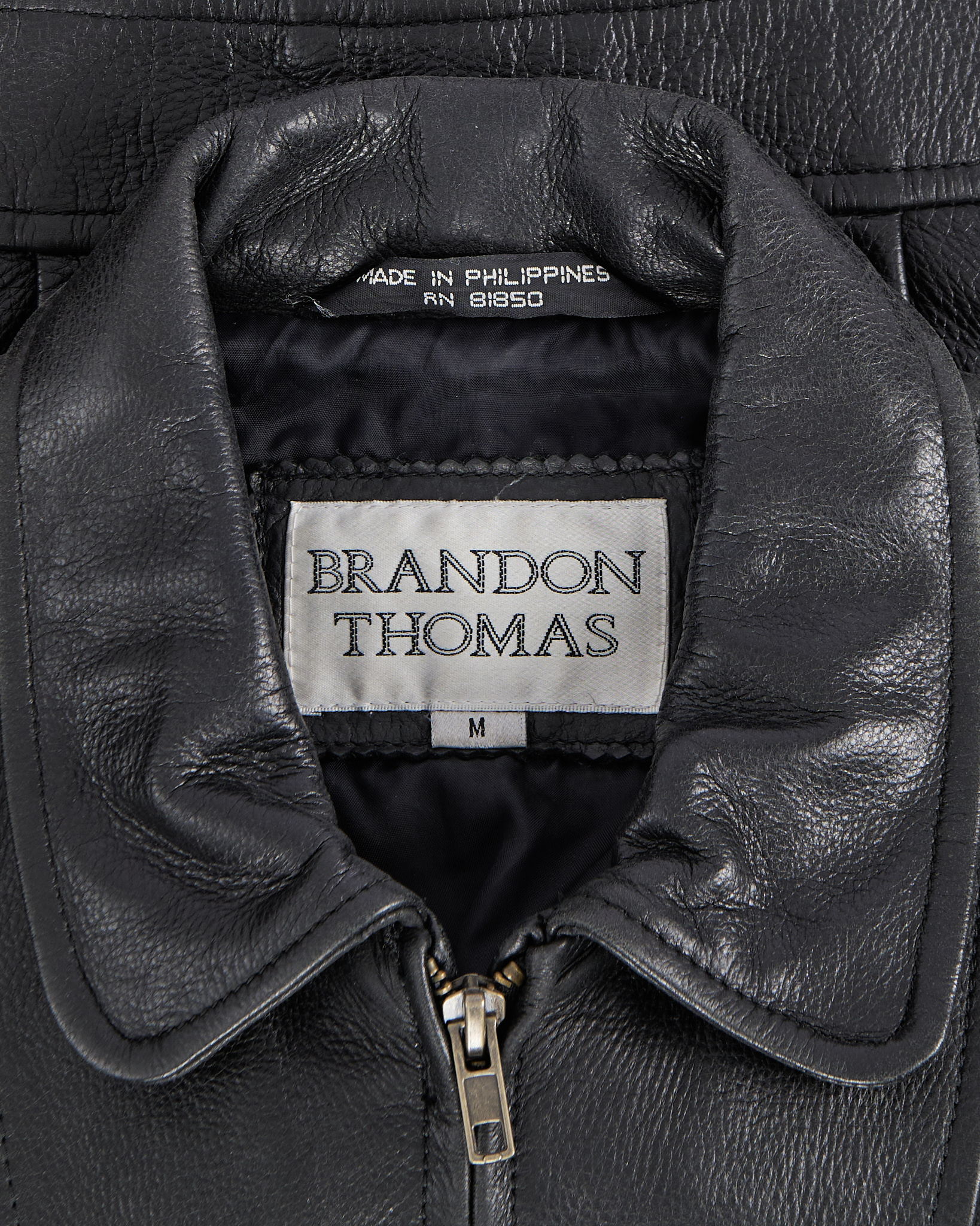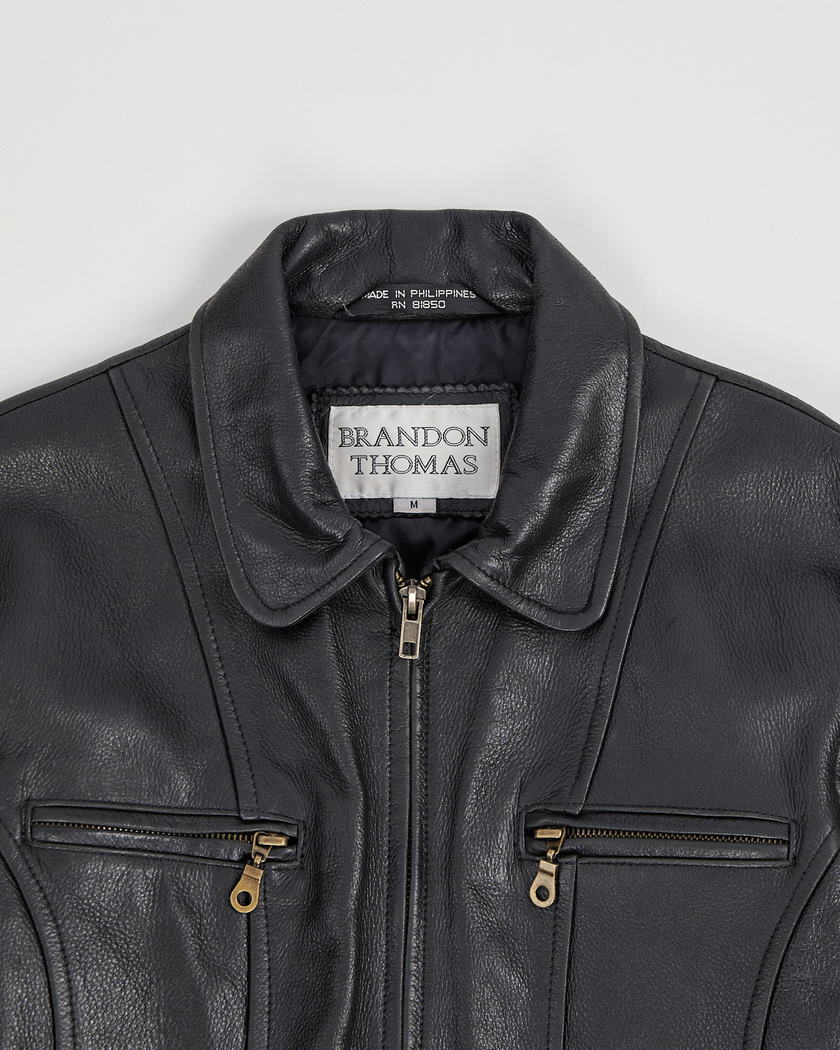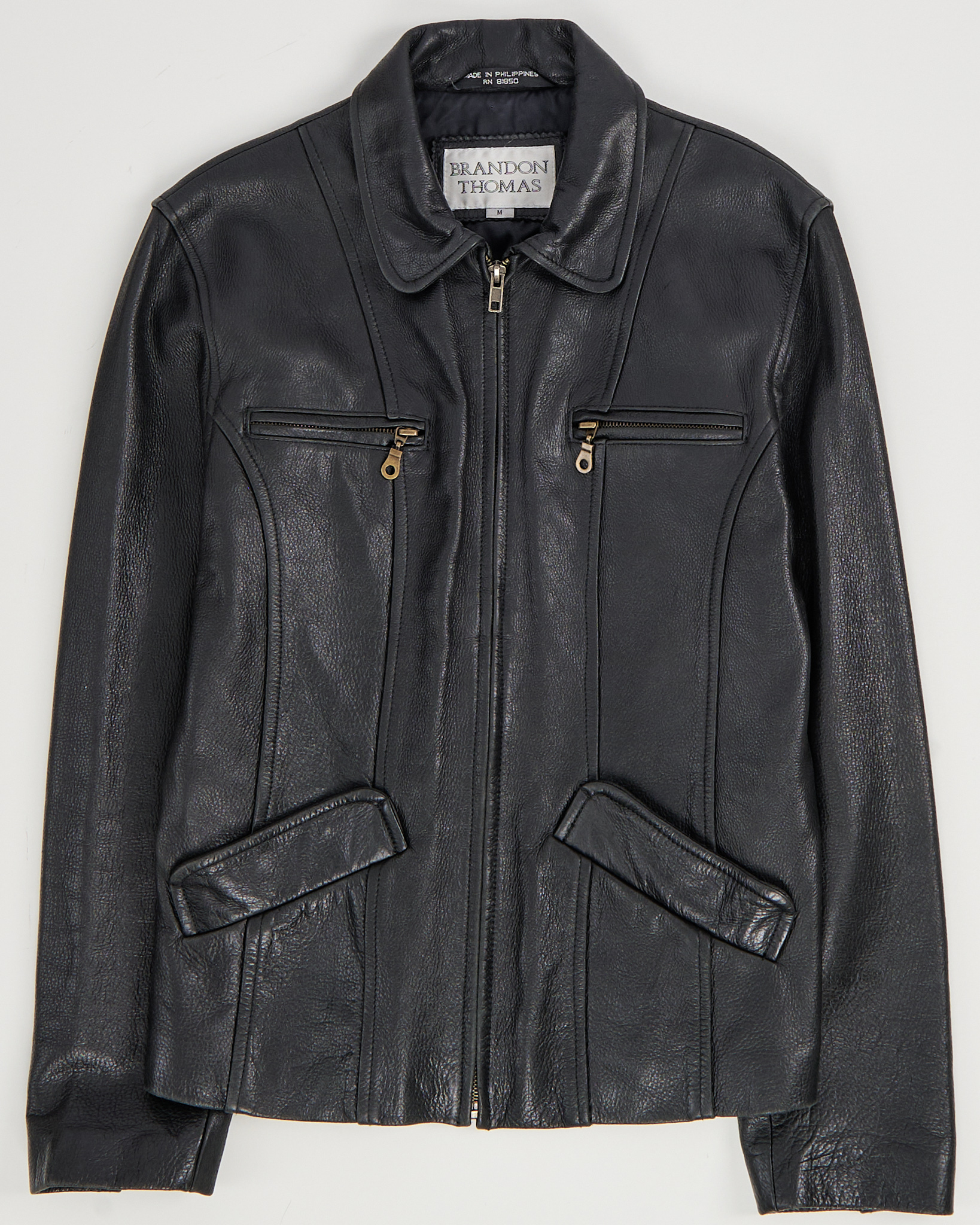 Куртка Brandon Thomas из натуральной чёрной кожи. Приталенный силуэт, куртка дополнена несколькими карманами на молниях и акцентными швами. Регулируемые ремешки на спине.