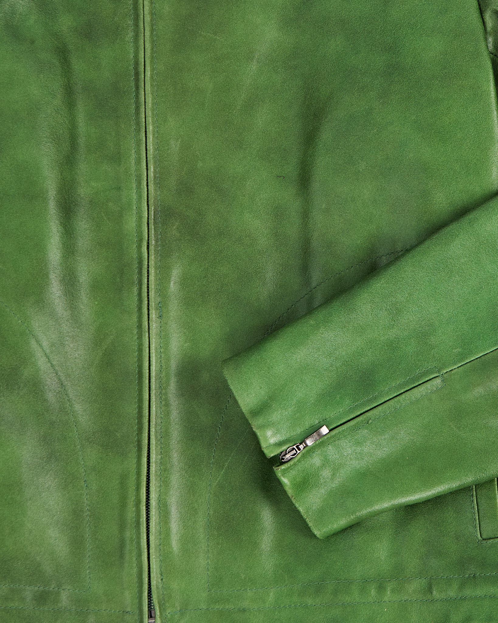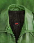 Куртка GIL из натуральной кожи насыщенного зелёного оттенка. Прямой крой, удобная застежка на молнию, аккуратные карманы и широкий воротник. Акцентные замки по бокам.