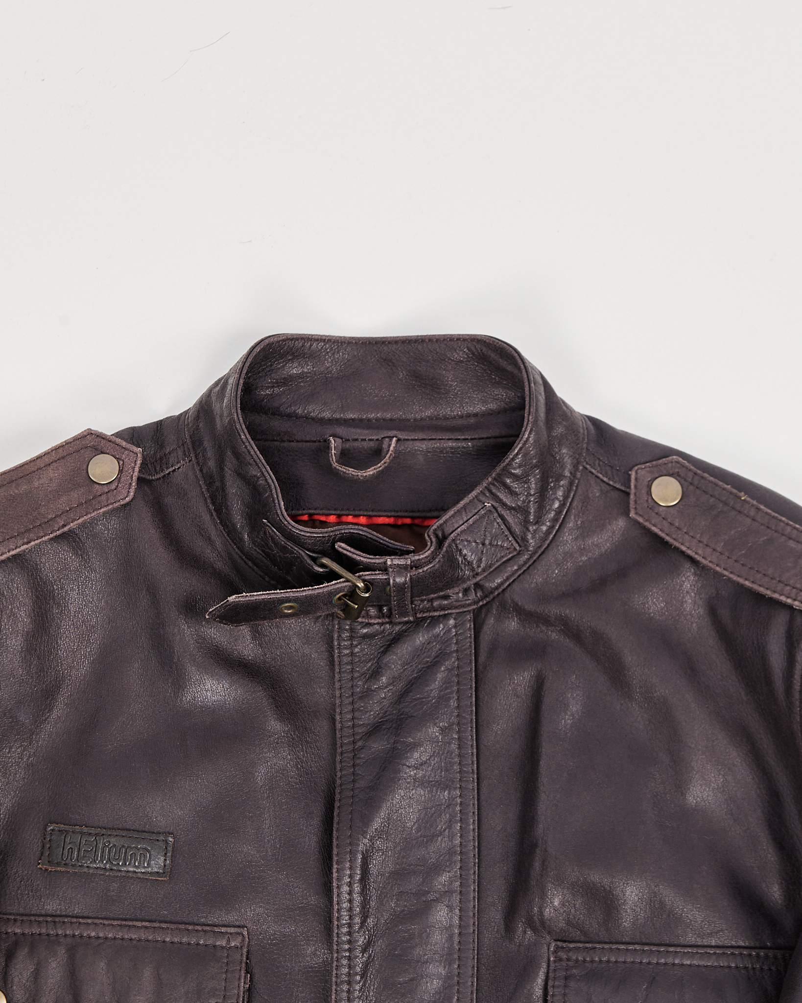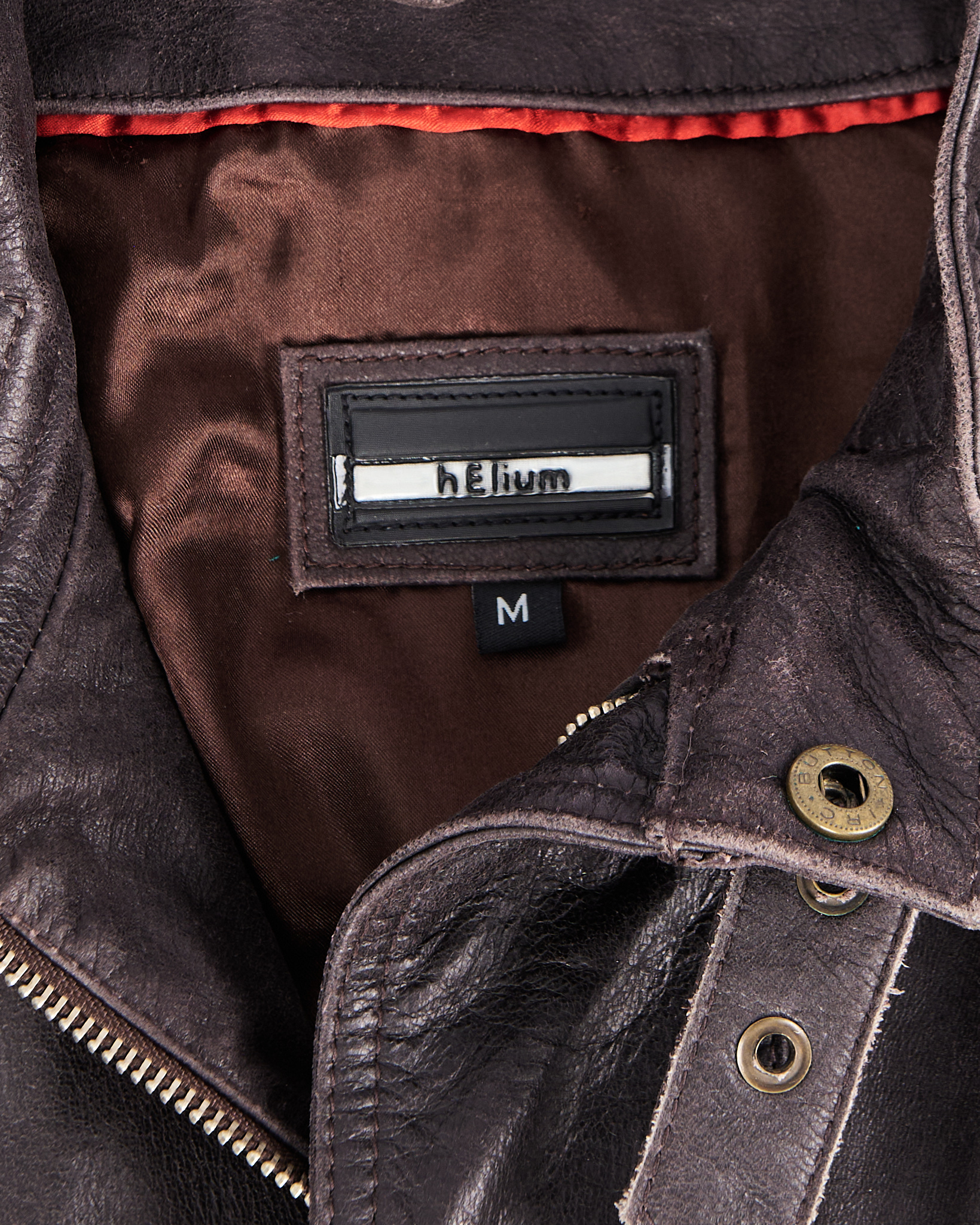 Кожаная куртка Helium из 100% натуральной кожи. Прямая посадка, накладные карманы на кнопках и воротник с ремешком. Внутренняя подкладка с контрастной вставкой добавляет. Надёжная фурнитура и продуманная конструкция.