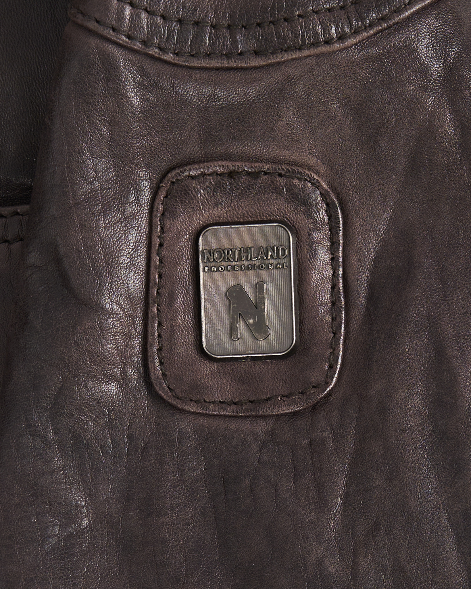 Куртка Northland из мягкой натуральной кожи темного коричневого цвета. Приталенный силуэт. Нагрудные карманы с клапанами и ремешок на вороте