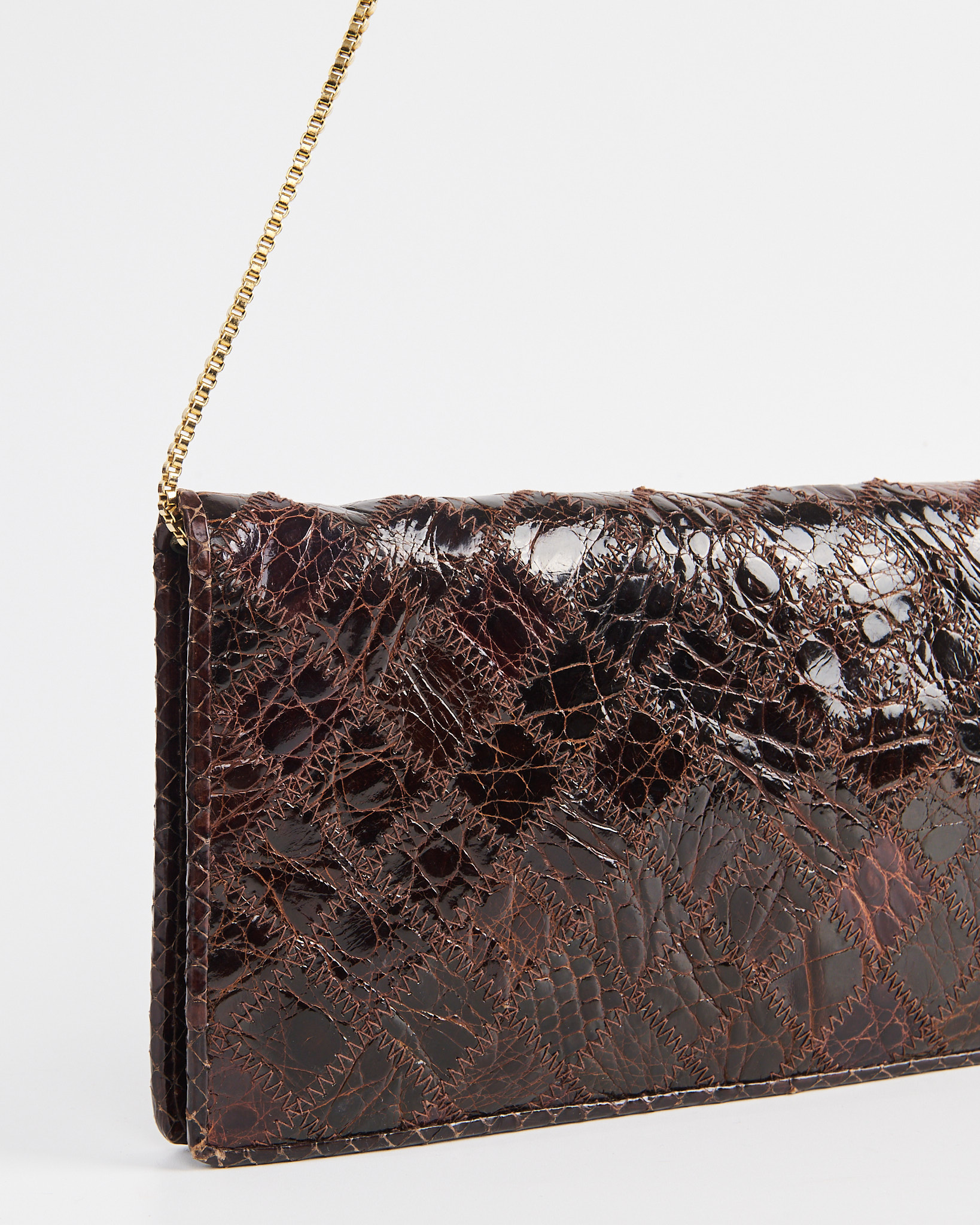 Кожаная сумка под рептилию коричневая