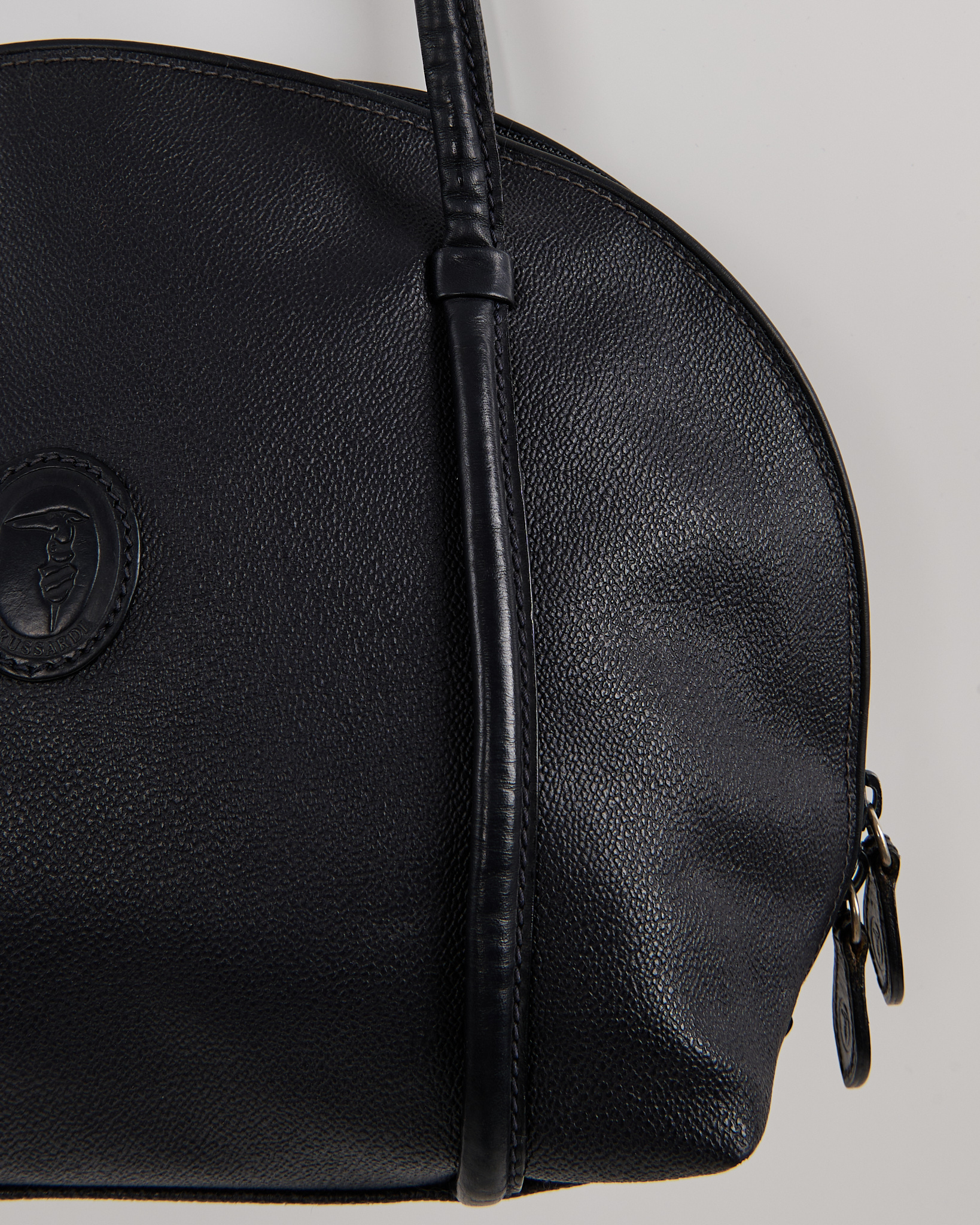 Сумка Trussardi из искусственной кожи, подкладка из 100% хлопка. Форма полукруглая, длинные ручки обеспечивают удобную посадку на плече. Спереди эмблема с символом бренда.