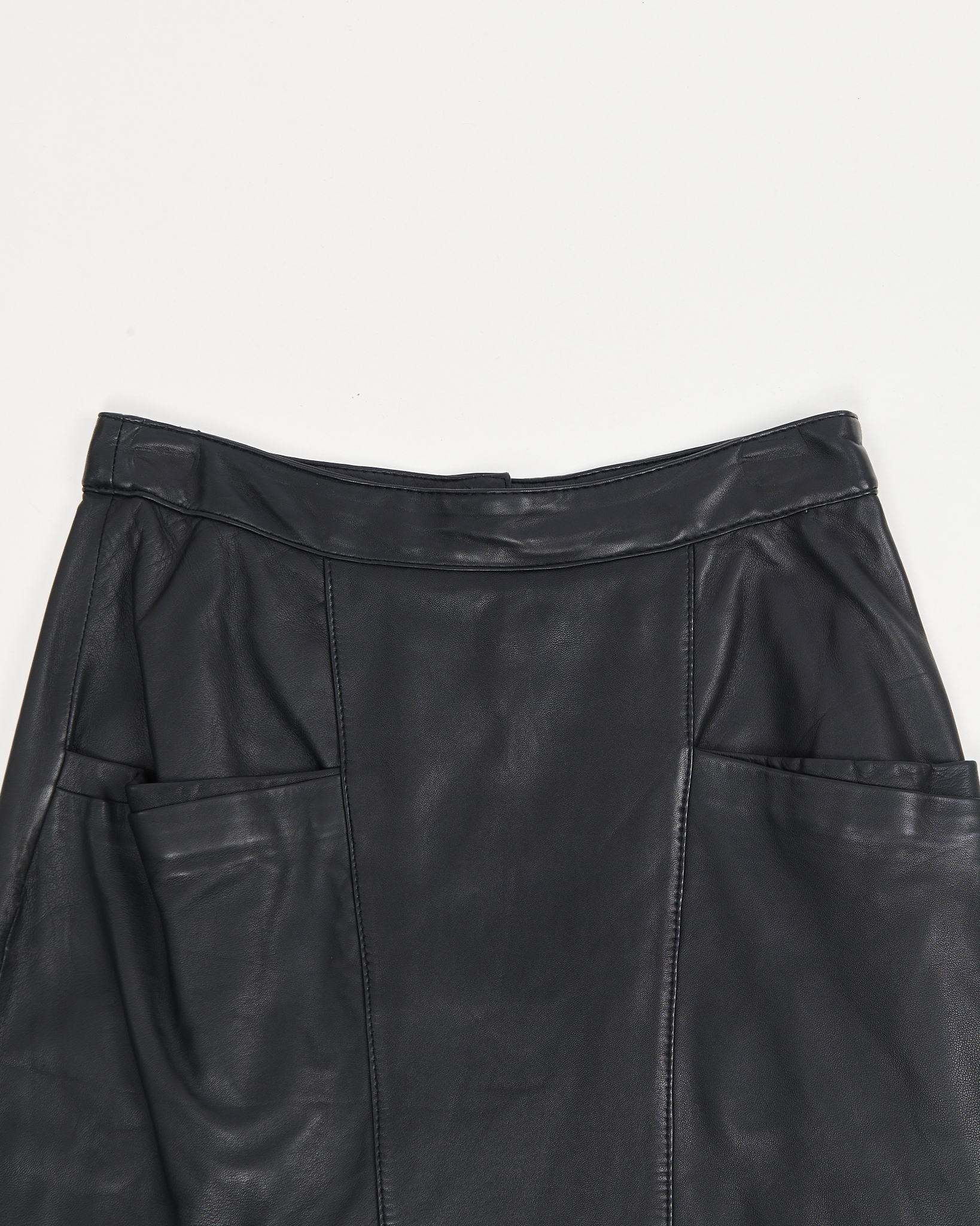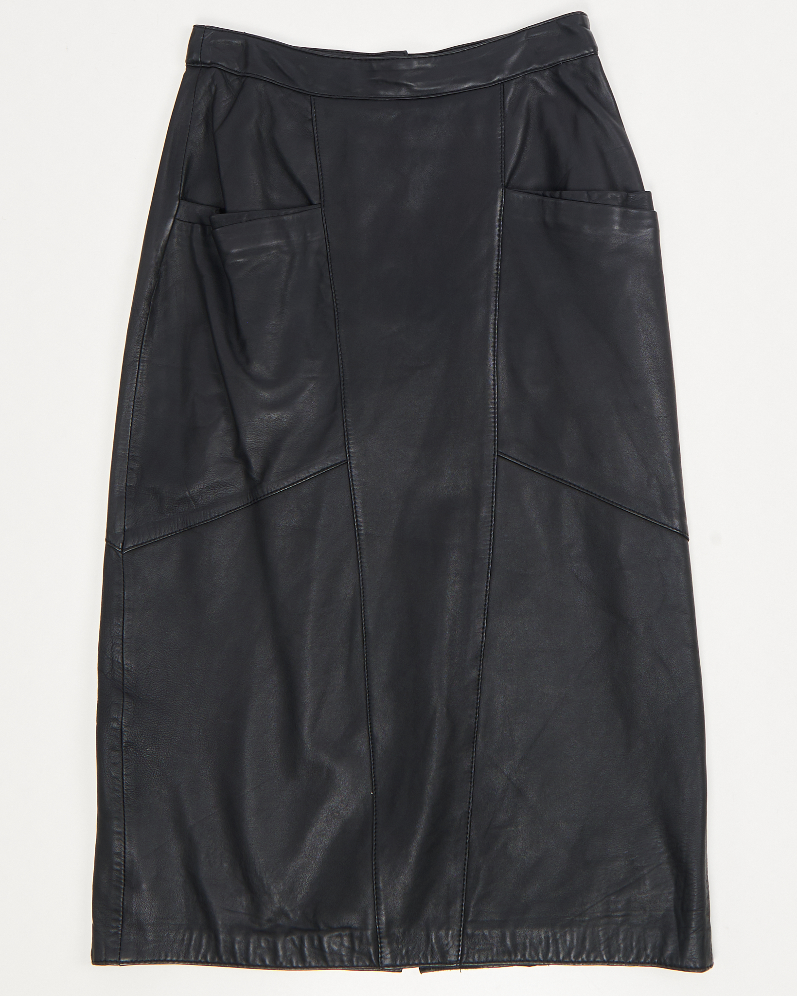 Юбка из мягкой натуральной кожи. Прямая посадка, объемные накладные карманы, акцентные вытачки.