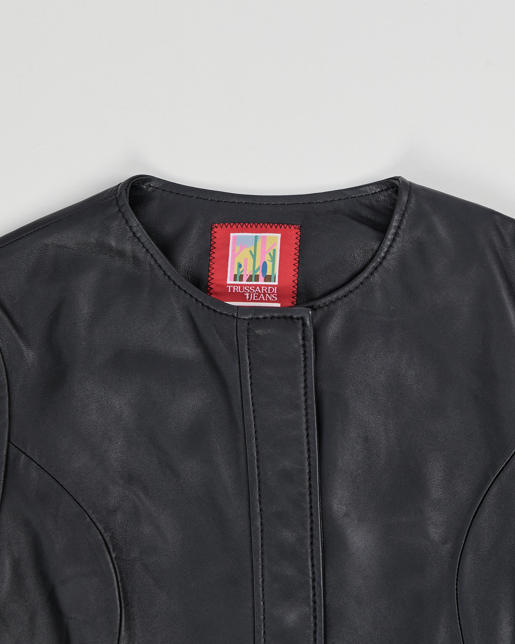 Кожаное пальто Trussardi Jeans из натуральной мягкой кожи. Приталенная посадка, вытянутый силуэт. Шнуровка на рукавах с металлическими люверсами, удобные карманы на молнии.