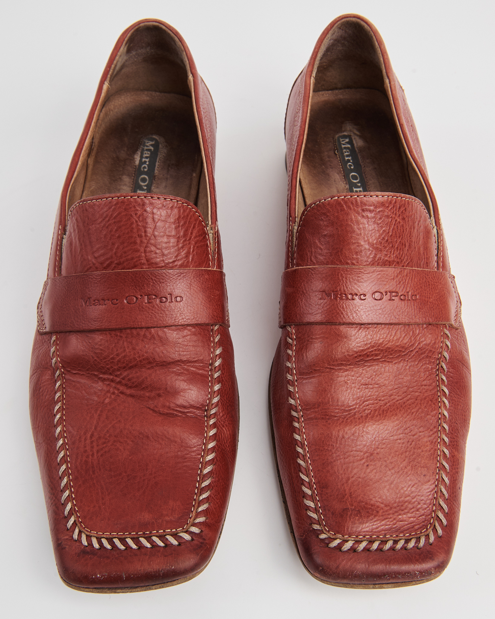 Лоферы Marc O’Polo из 100% натуральной кожи. Посадка с чёткой фиксацией за счёт классической перемычки и аккуратной колодки. Прошивка по контуру, патина на коже.