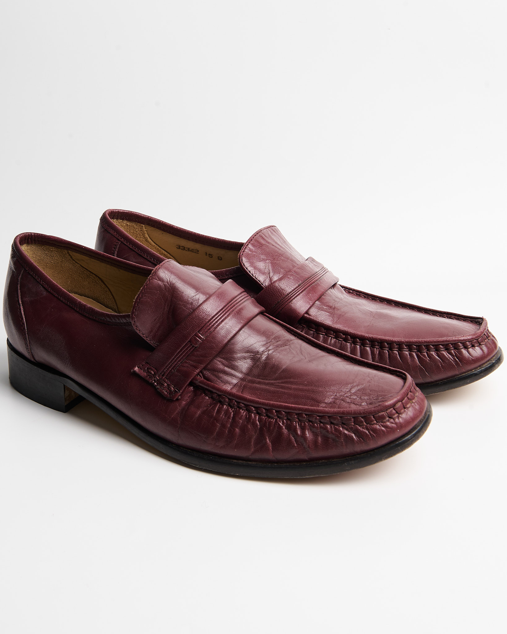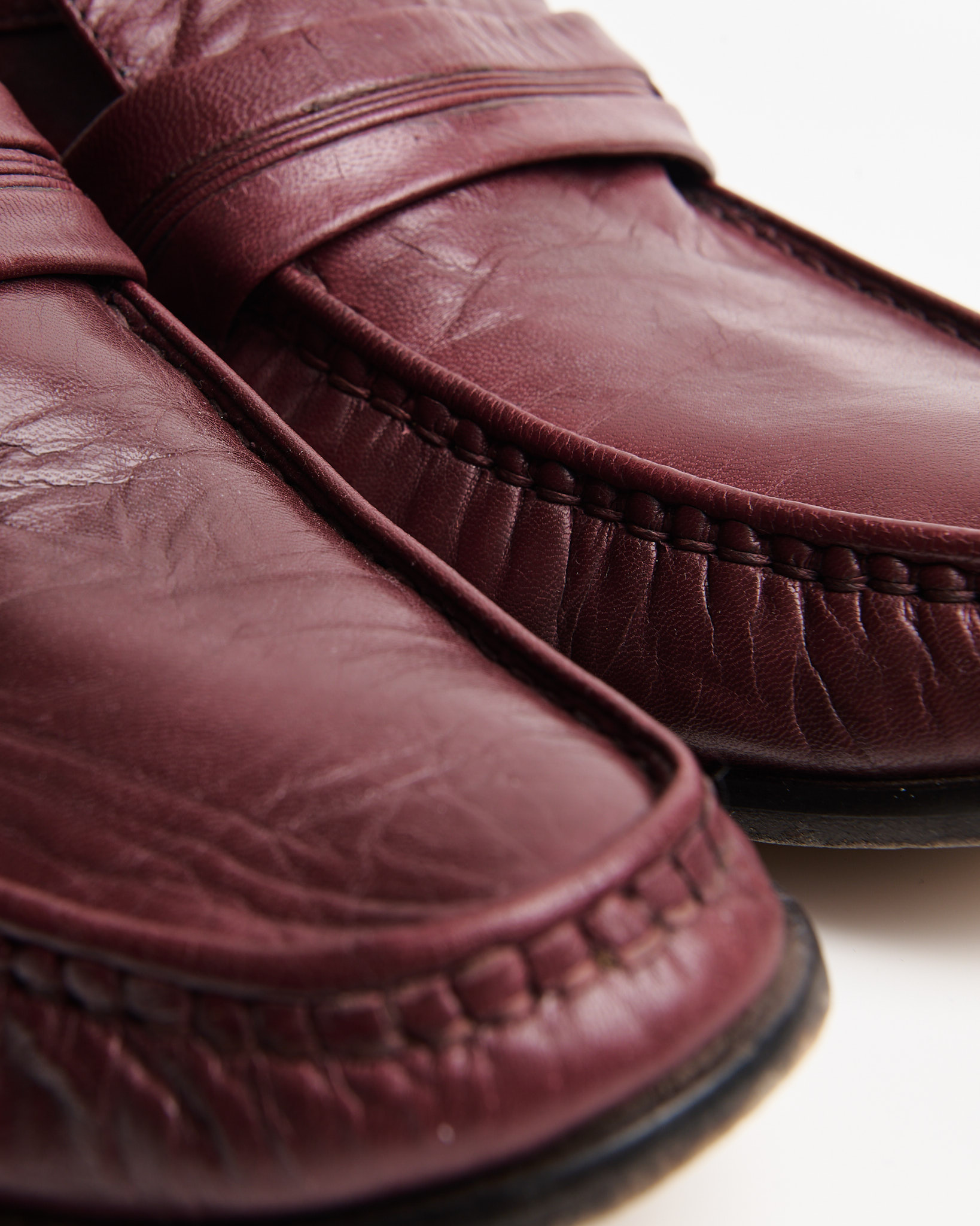Лоферы из натуральной кожи глубокого бордового оттенка с ручной прошивкой по мысу. Удобная колодка, кожа с патиной.