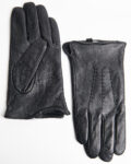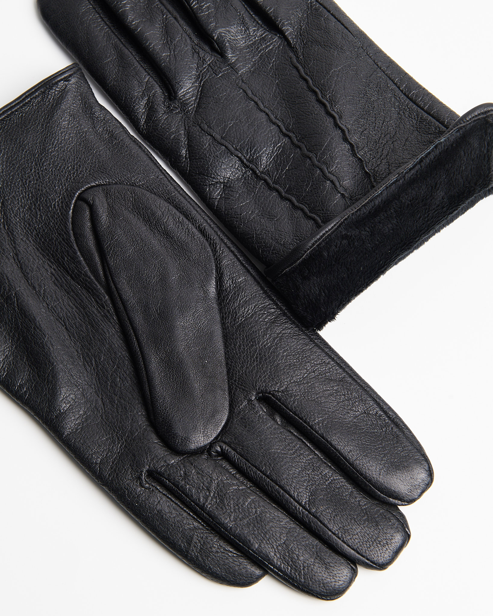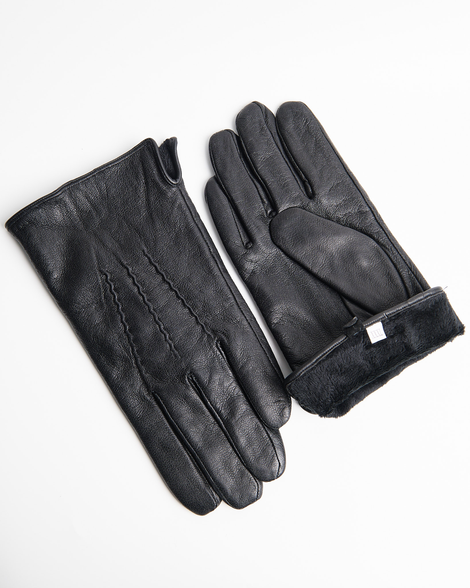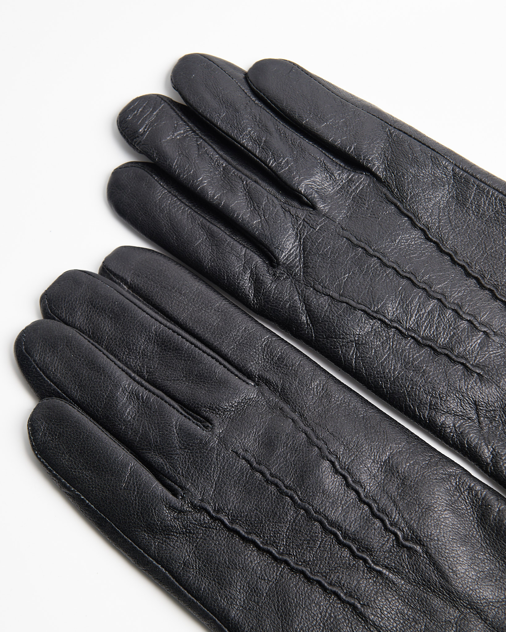 Перчатки  из натуральной кожи глубокого чёрного цвета. Внутренняя отделка из флиса, аккуратной прострочка.