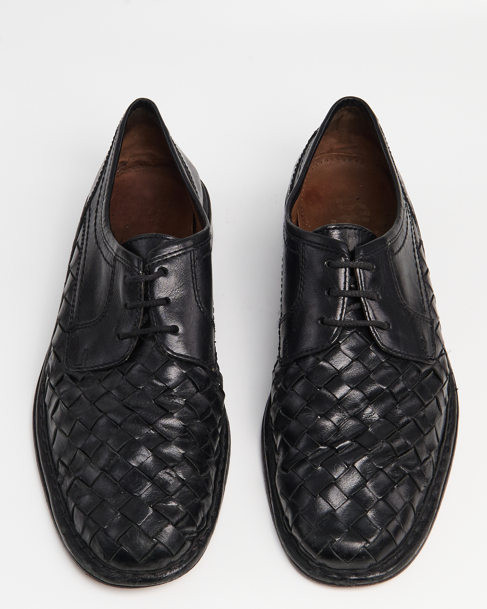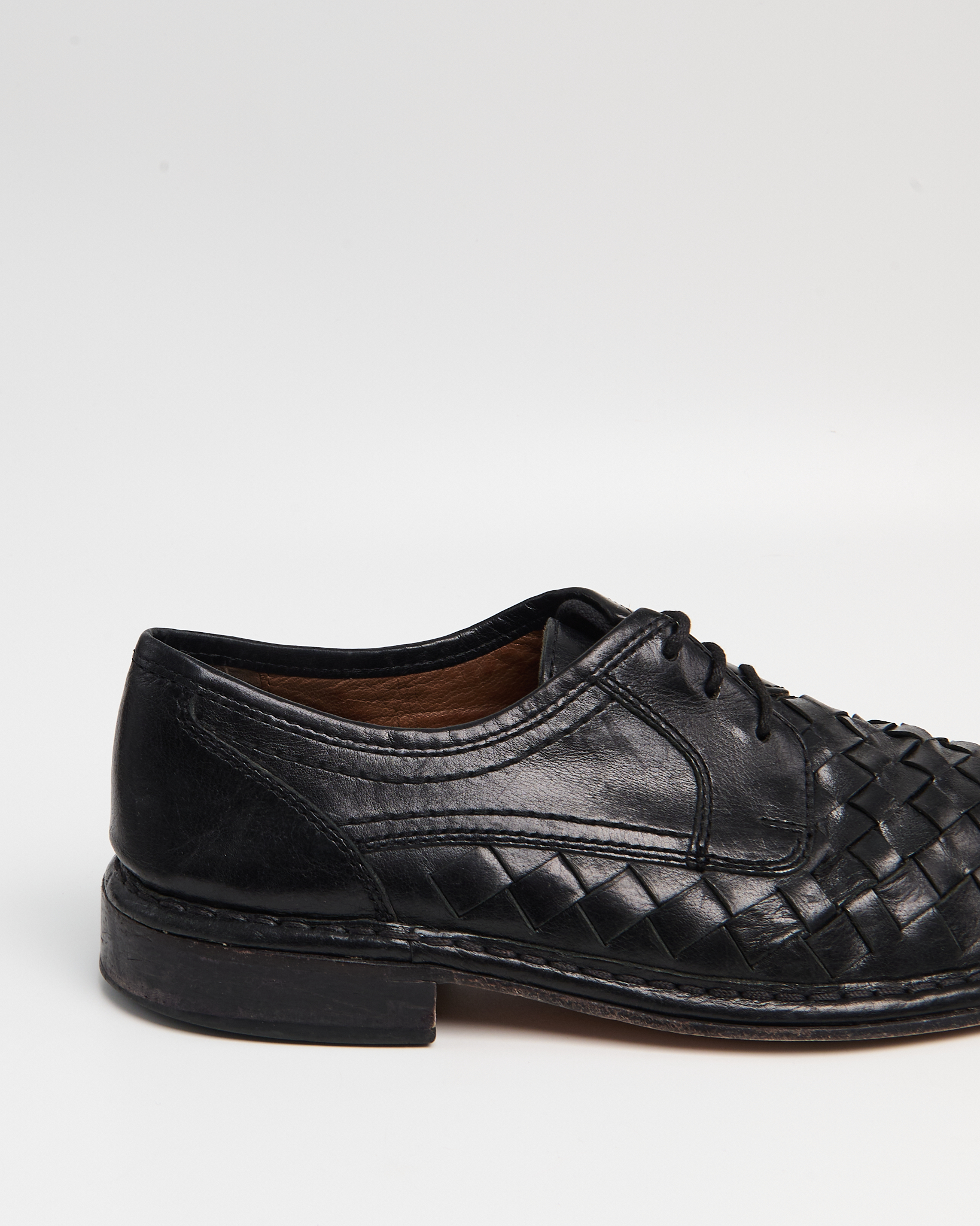 Туфли из плотной натуральной кожи с плетением. Качественное исполнение и прочная подошва, удобная шнуровка.