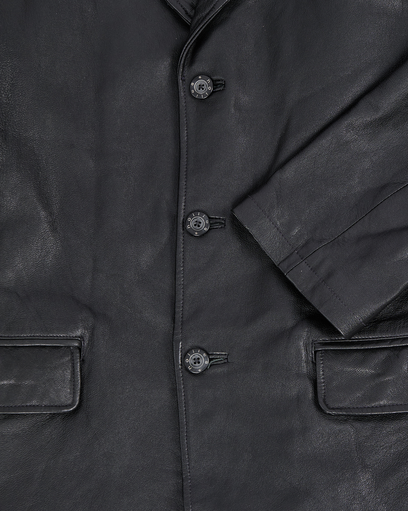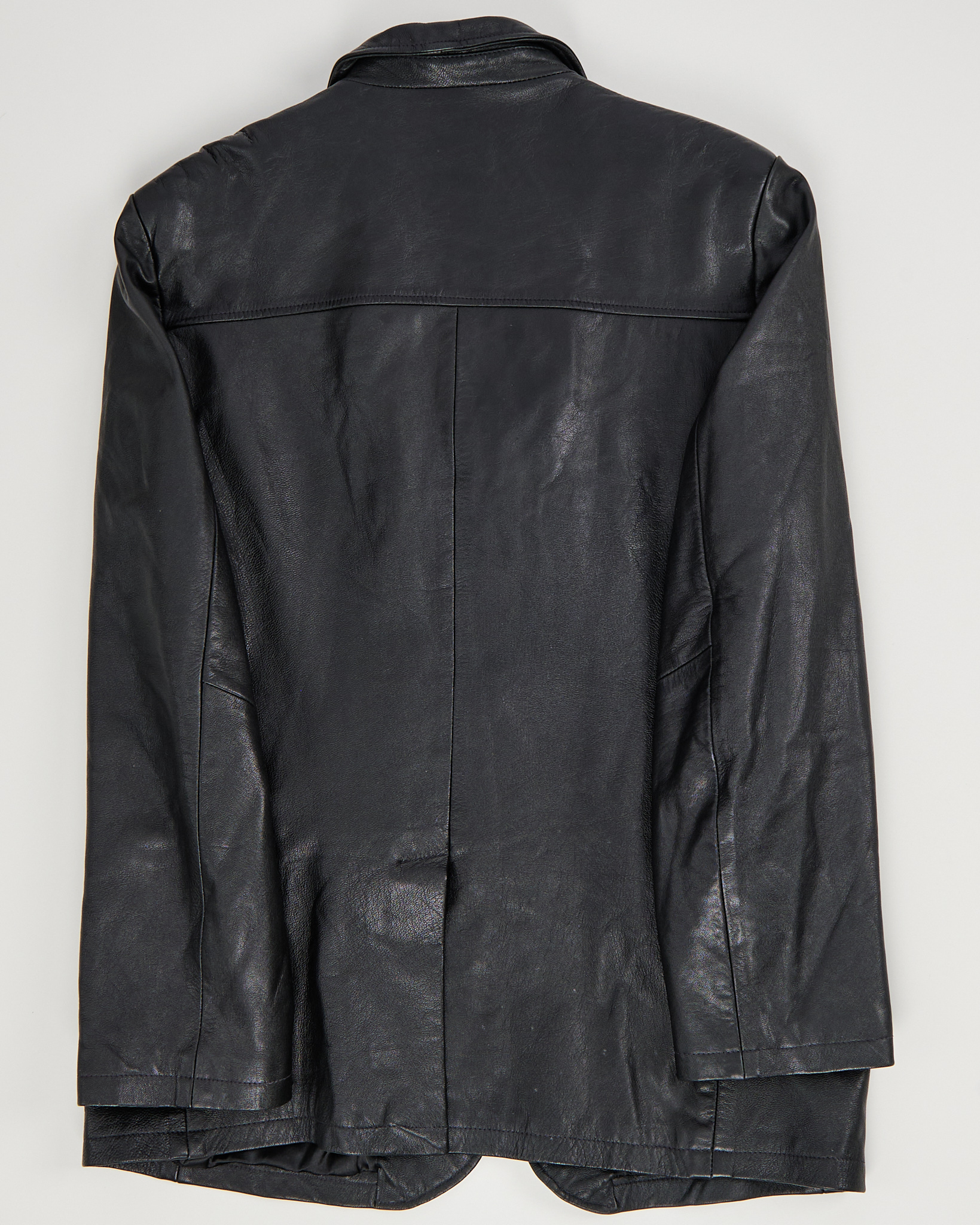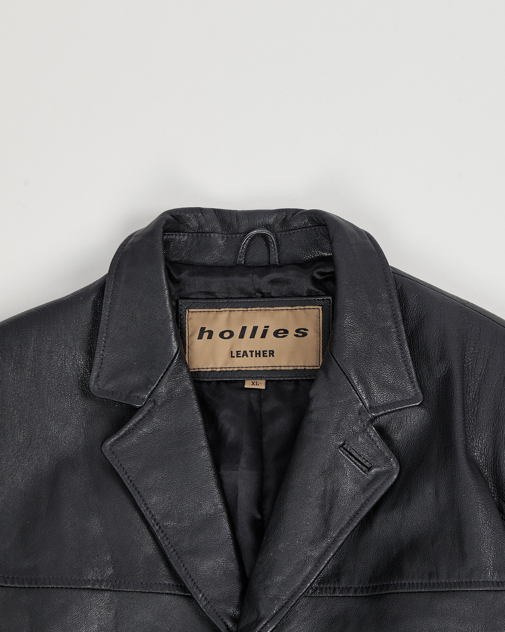 Кожаный пиджак от Hollies. Классический прямой крой, застёжка на трёх пуговицах, два боковых кармана, отложной воротник.