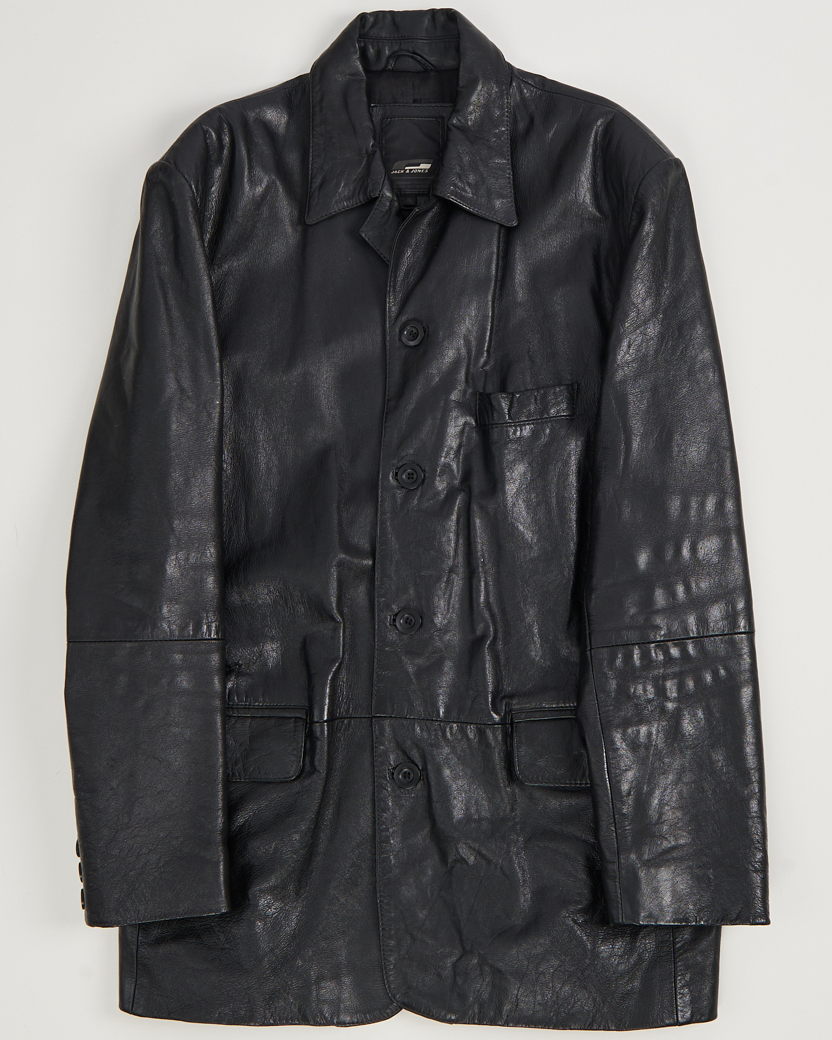 Пиджак Jack & Jones из 100% натуральной кожи. Прямой крой, свободная посадка, функциональные карманы по бокам, качественная фурнитура.