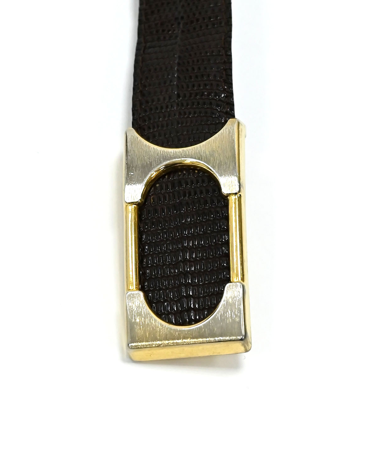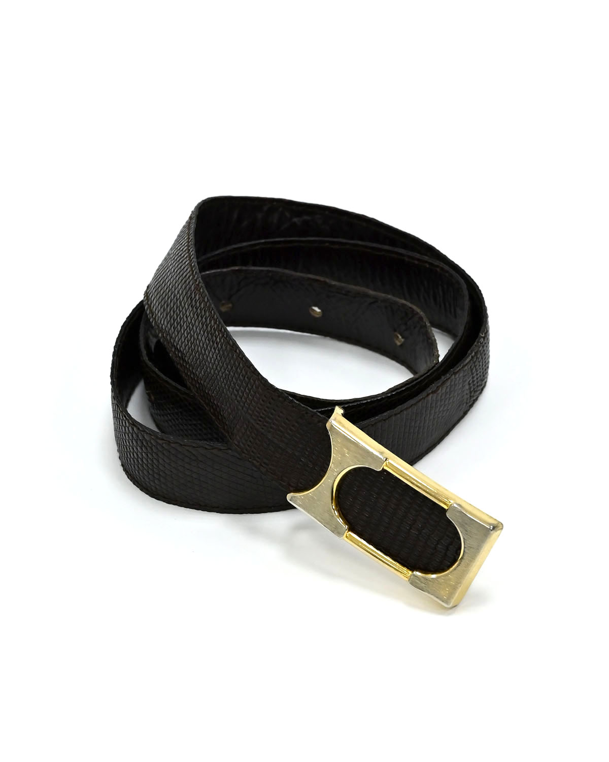 - Выполнен из натуральной кожи с выразительной фактурой под рептилию.