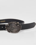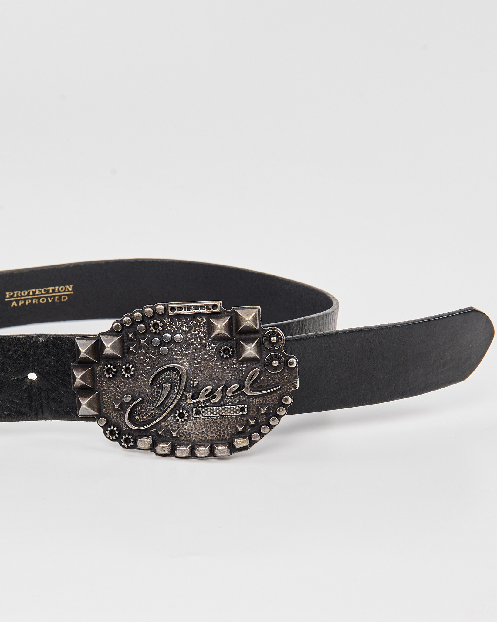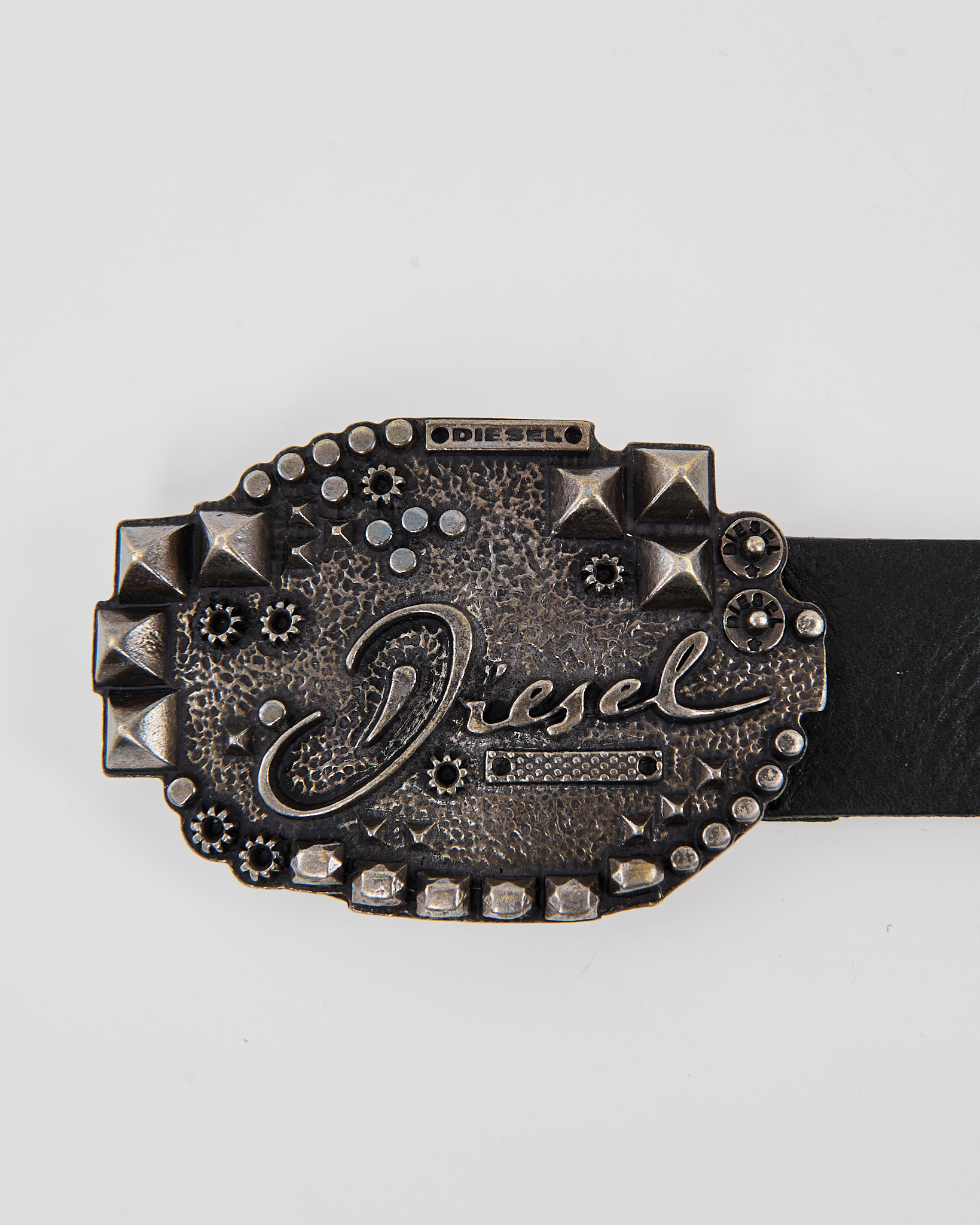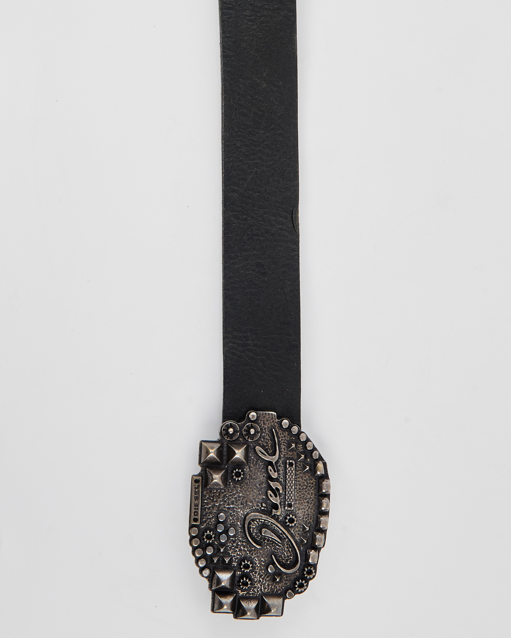 Ремень Diesel из 100% натуральной кожи. Крупная пряжка с металлическими шипами и логотипом, винтажная модель серии Extra Tough.