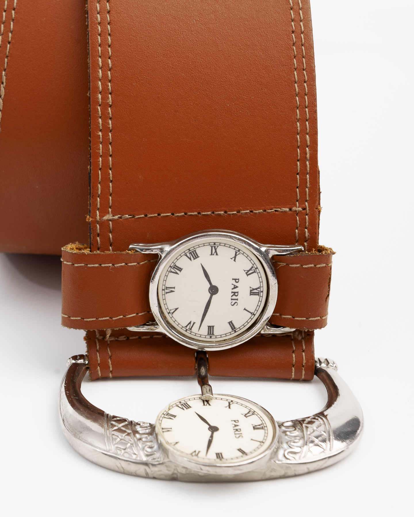 - Украшен металлической пряжкой с двумя декоративными часами с маркировкой PARIS.