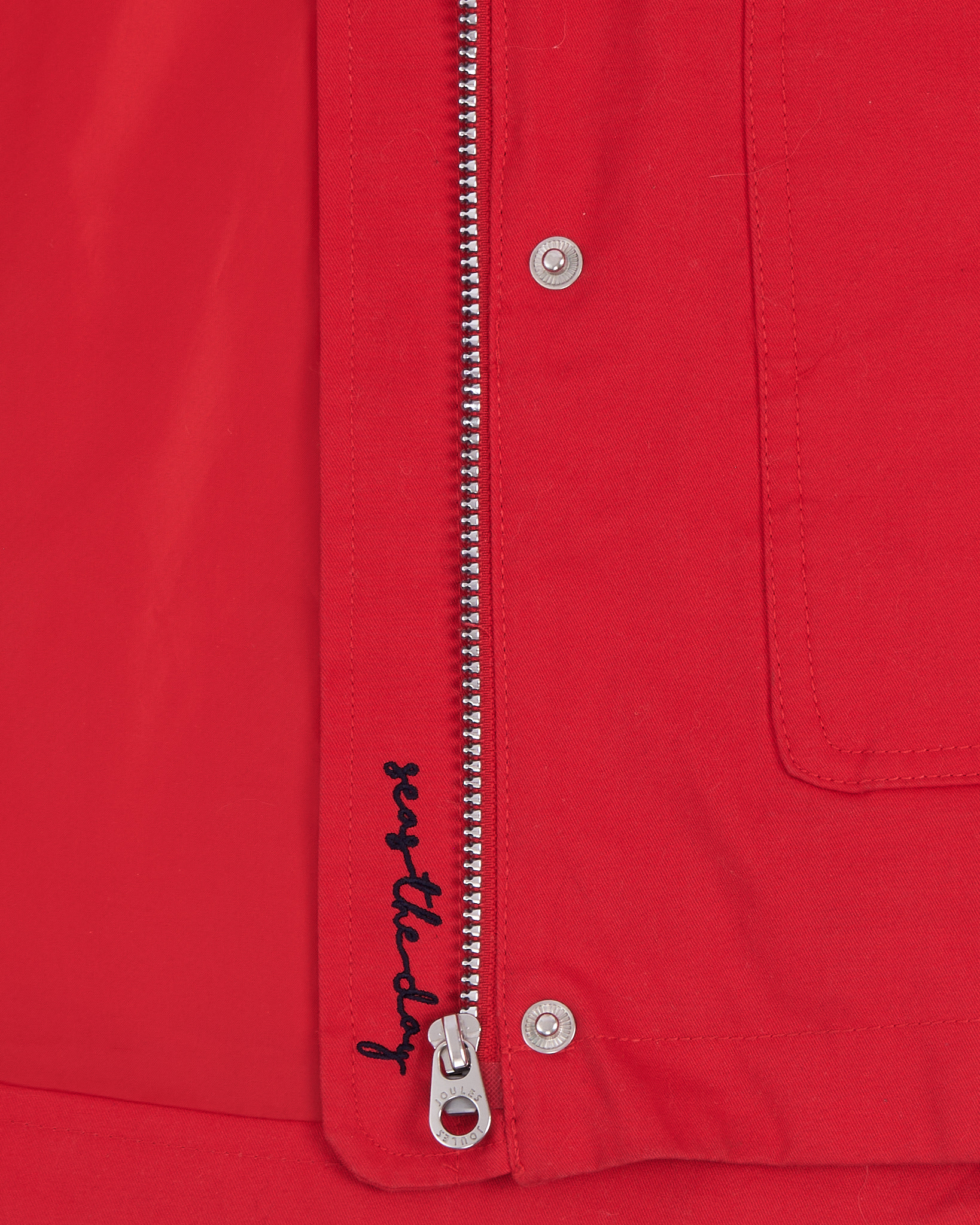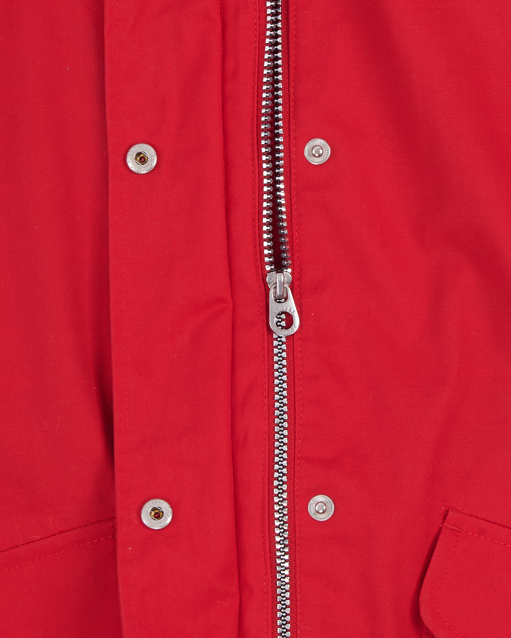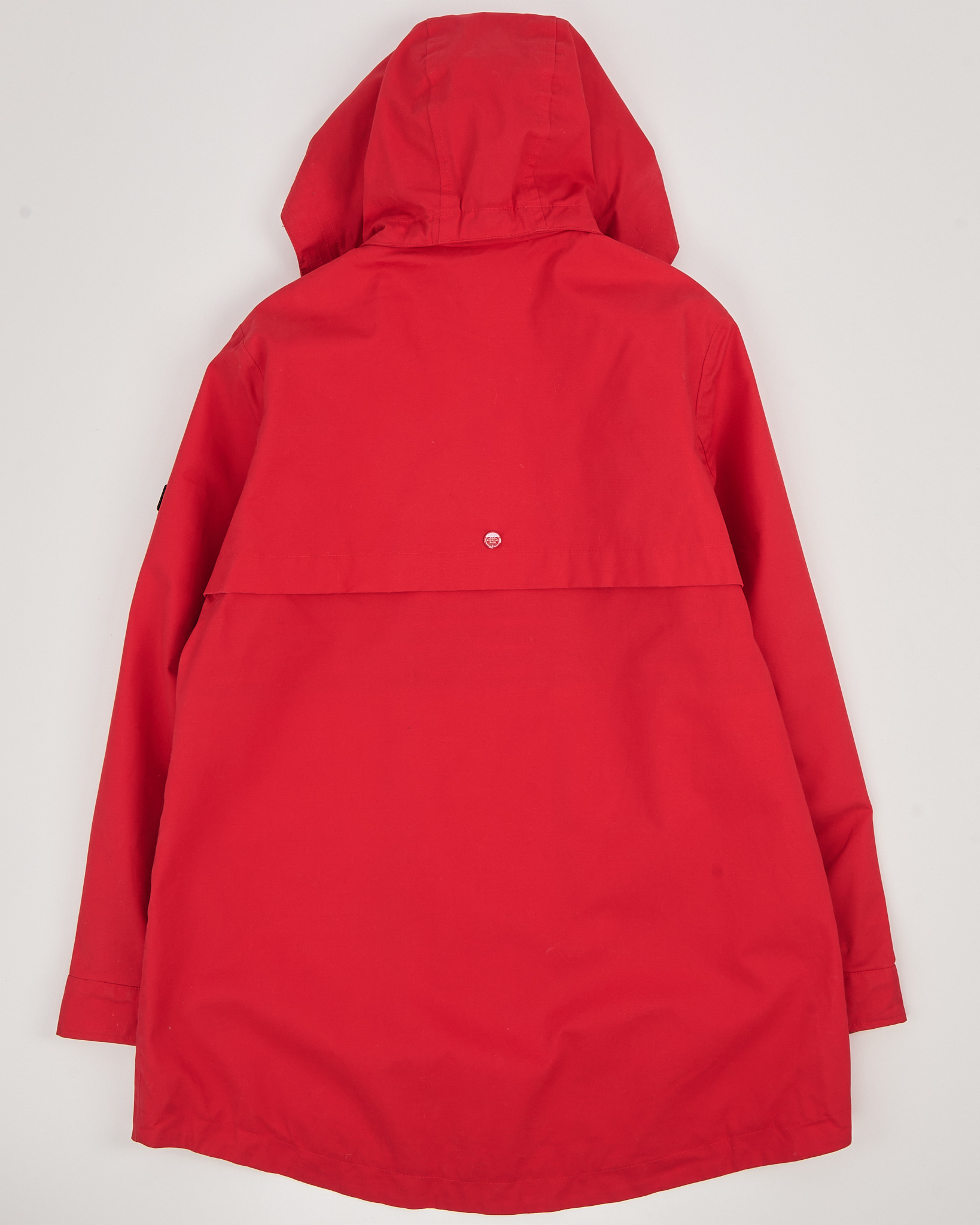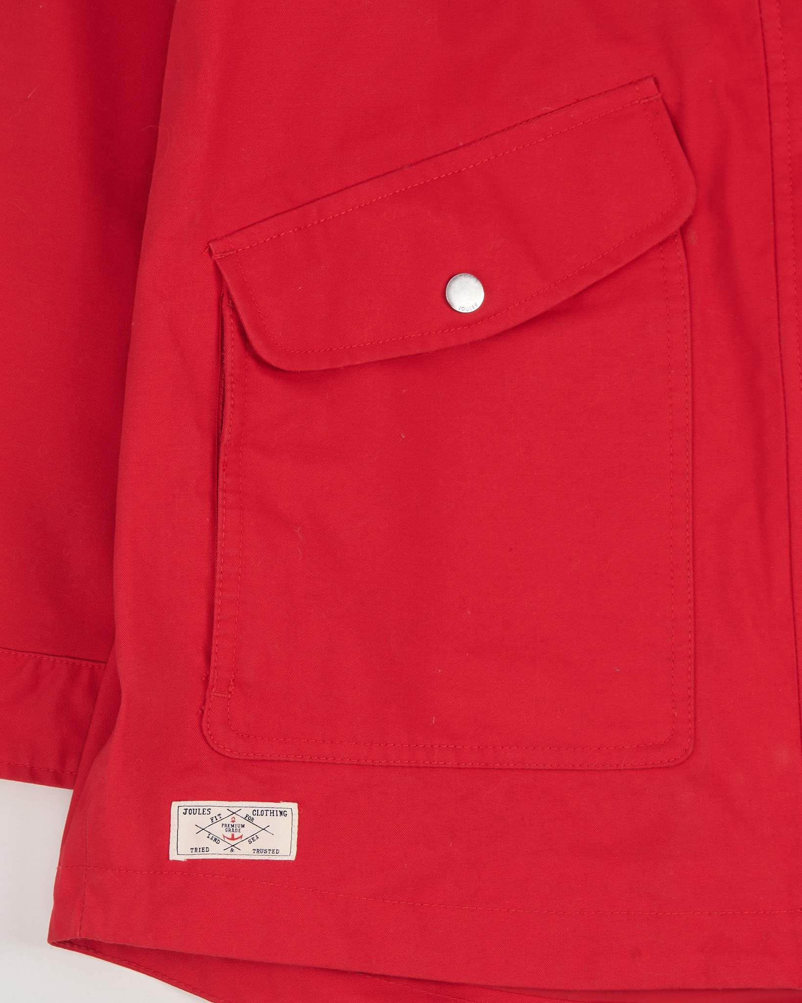 Парка Joules из плотного хлопкоа. Прямой крой, свободная посадка. Ткань гладкая, плотная, держит форму, внутри мягкая подкладка с рисунком в полоску. Капюшон с утяжками, крупные карманы и металлические кнопки добавляют акцент.