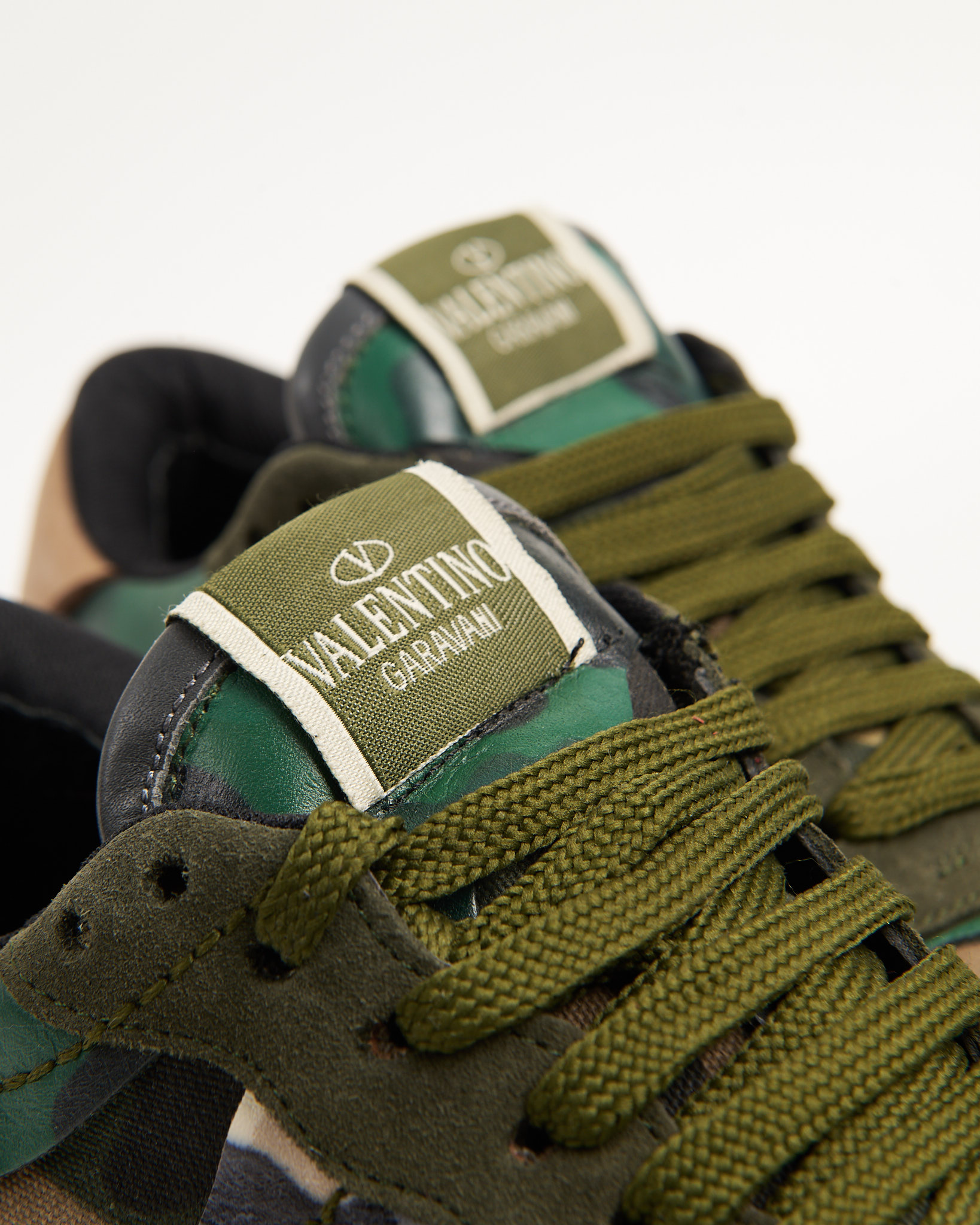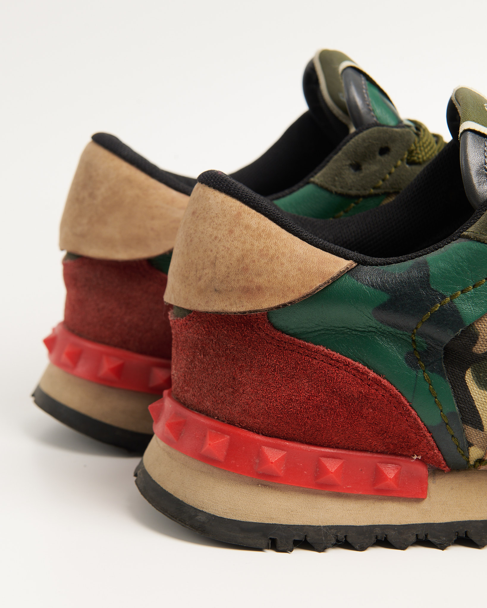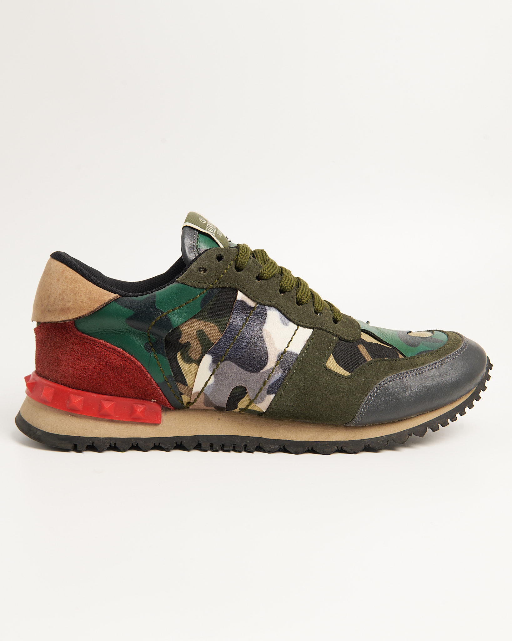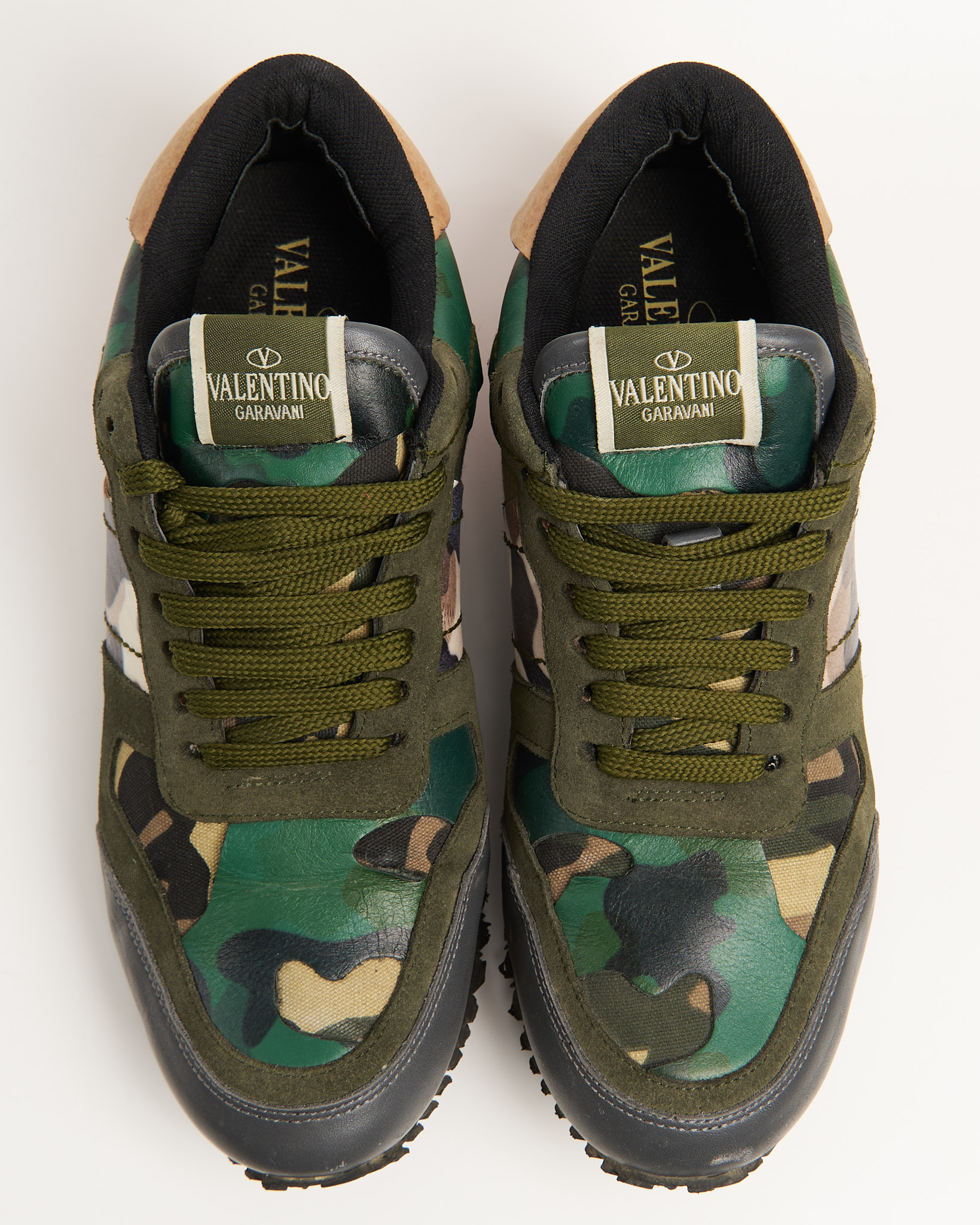 Культовые Valentino Garavani Rockrunner. Сочетание бархатистой замши, гладкой кожи и плотного текстиля, фирменный сложный камуфляжный принт.