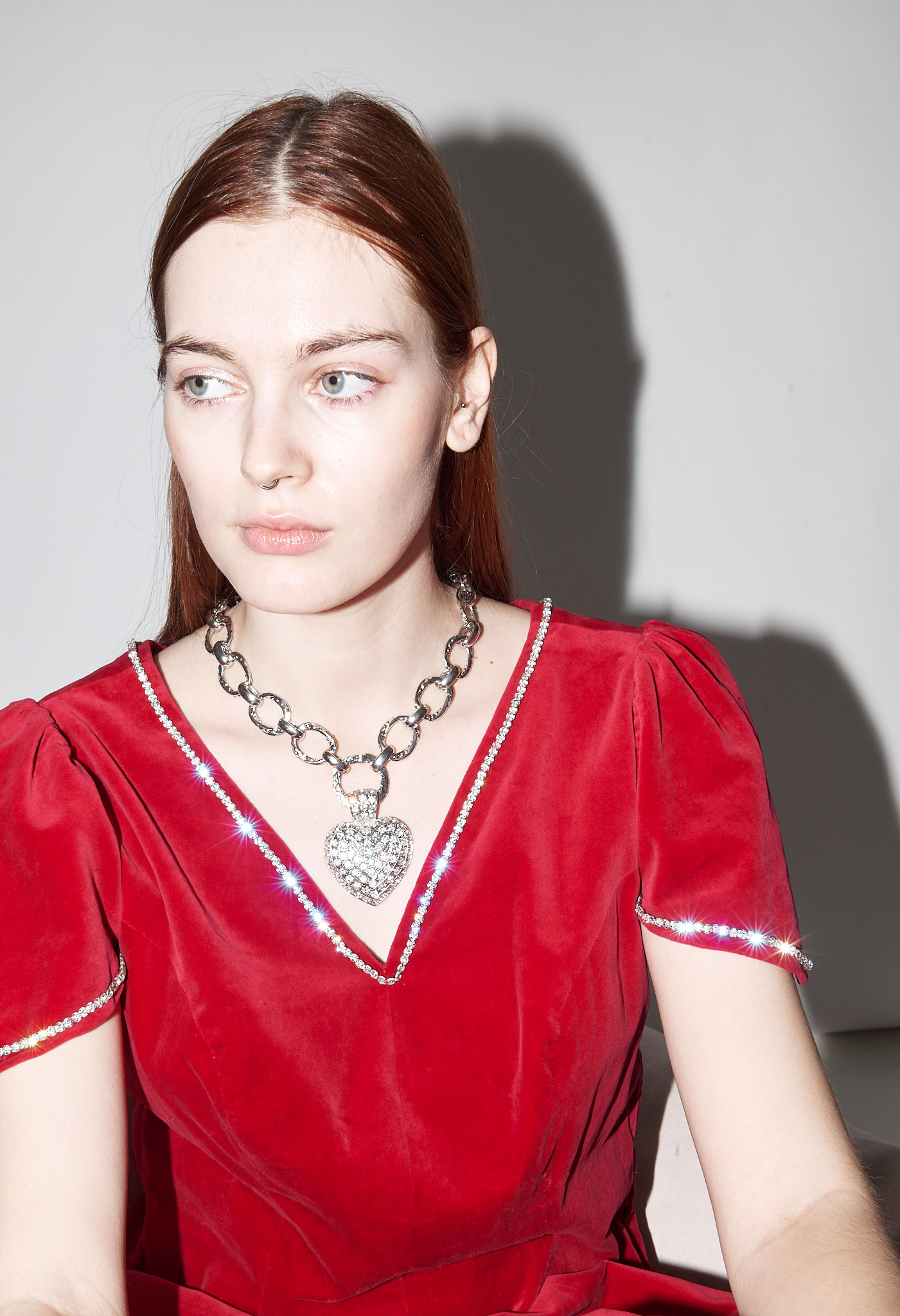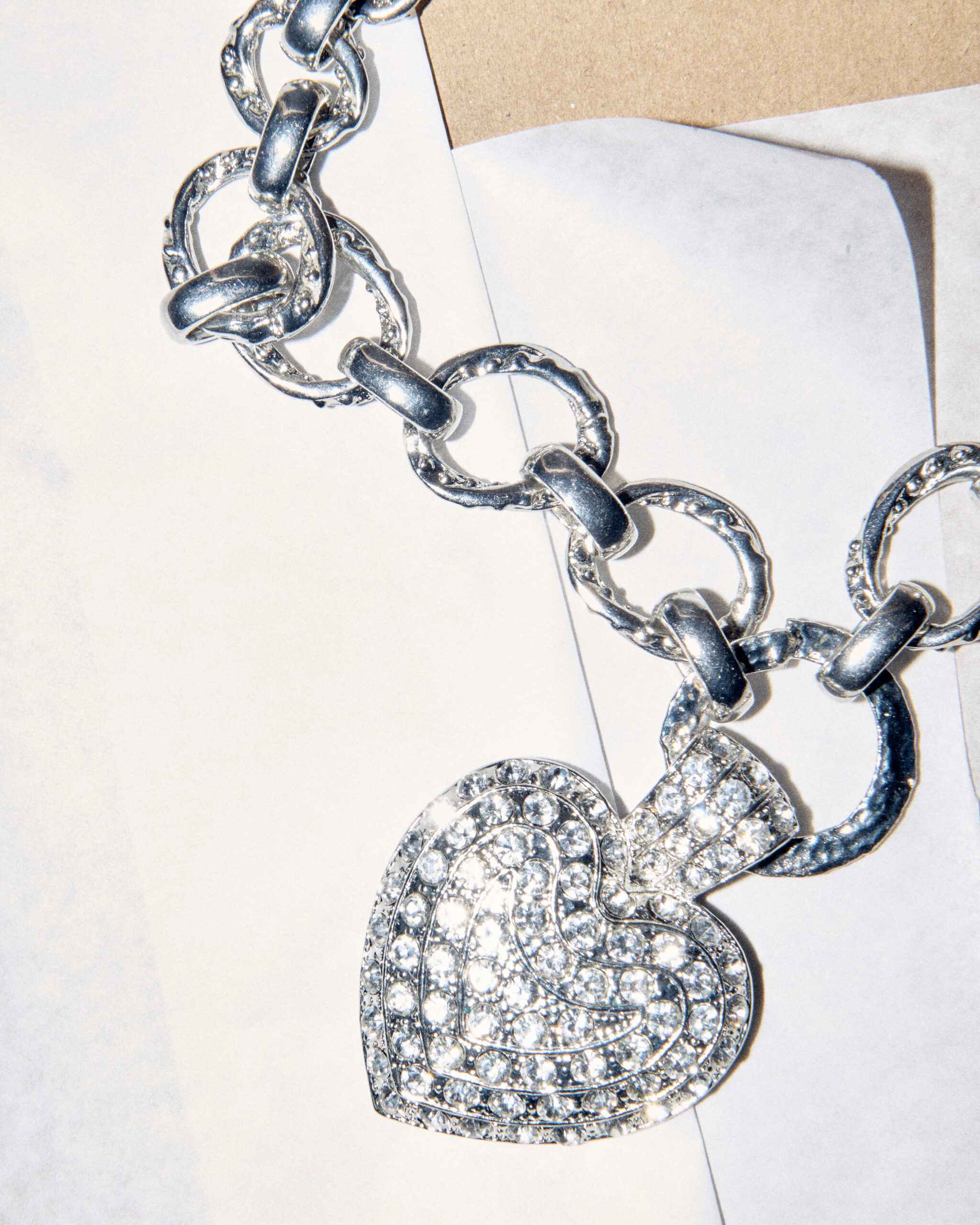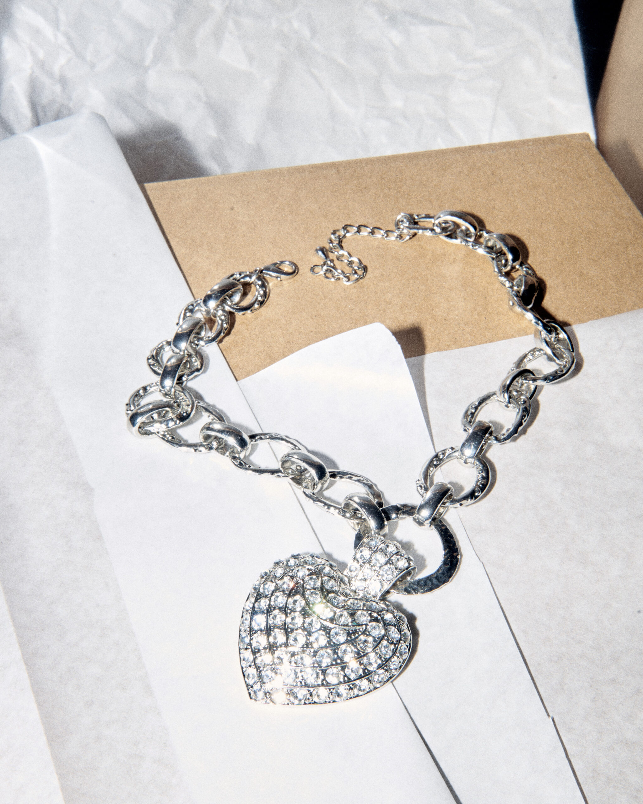 Колье-чокер Crystal Heart. Цепочка крупными кольцами, кулон в виде сердца с россыпью камней.