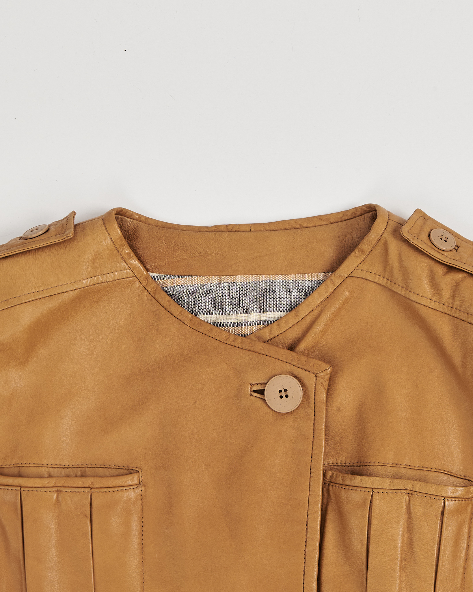 Уровень 10 соответствует новому винтажному состоянию/deadstock. Любые дефекты указаны в описании. Мы тщательно оцениваем каждую вещь и выставляем на продажу только те, у которых есть незначительные признаки износа или где несовершенства придают им особый шарм.