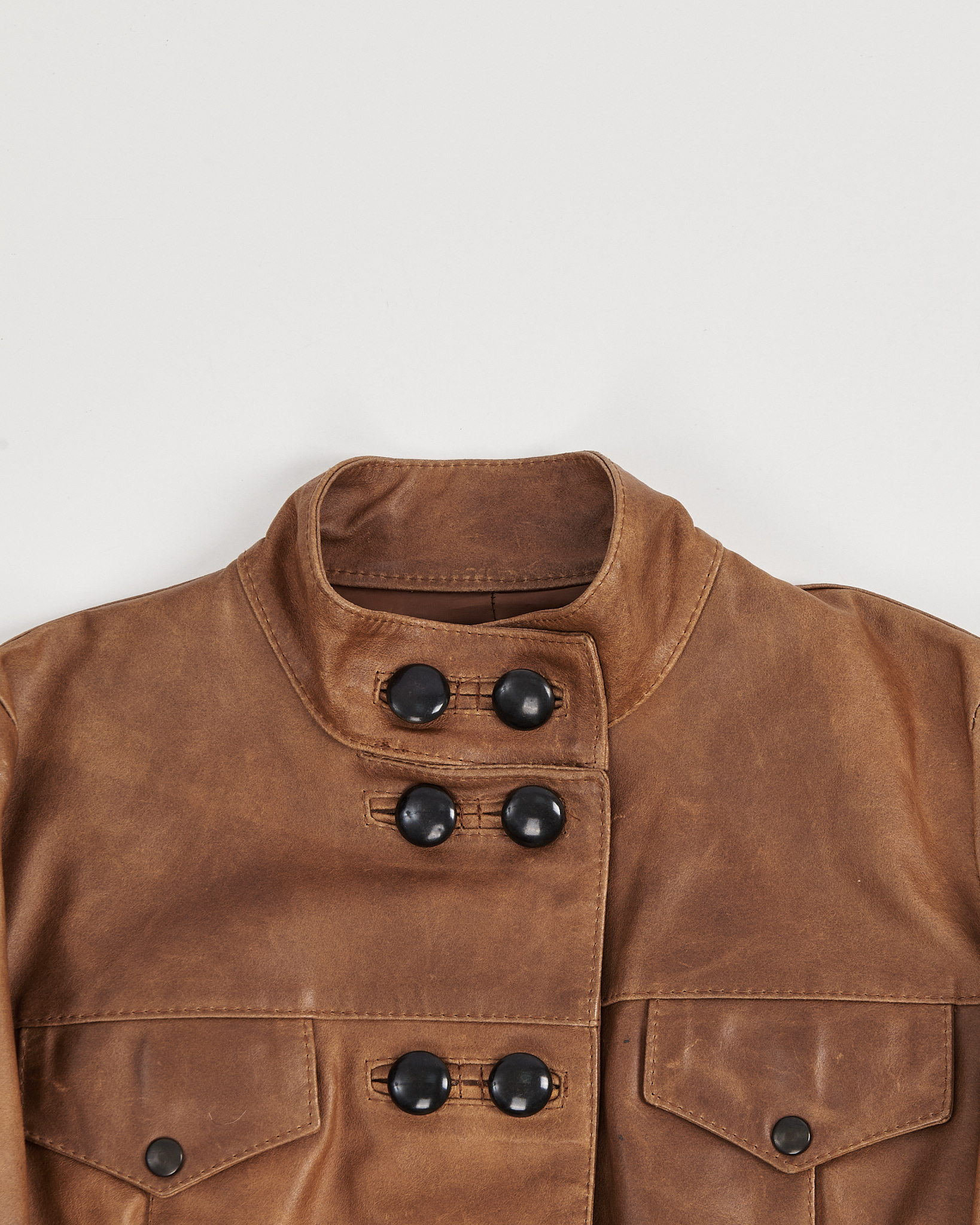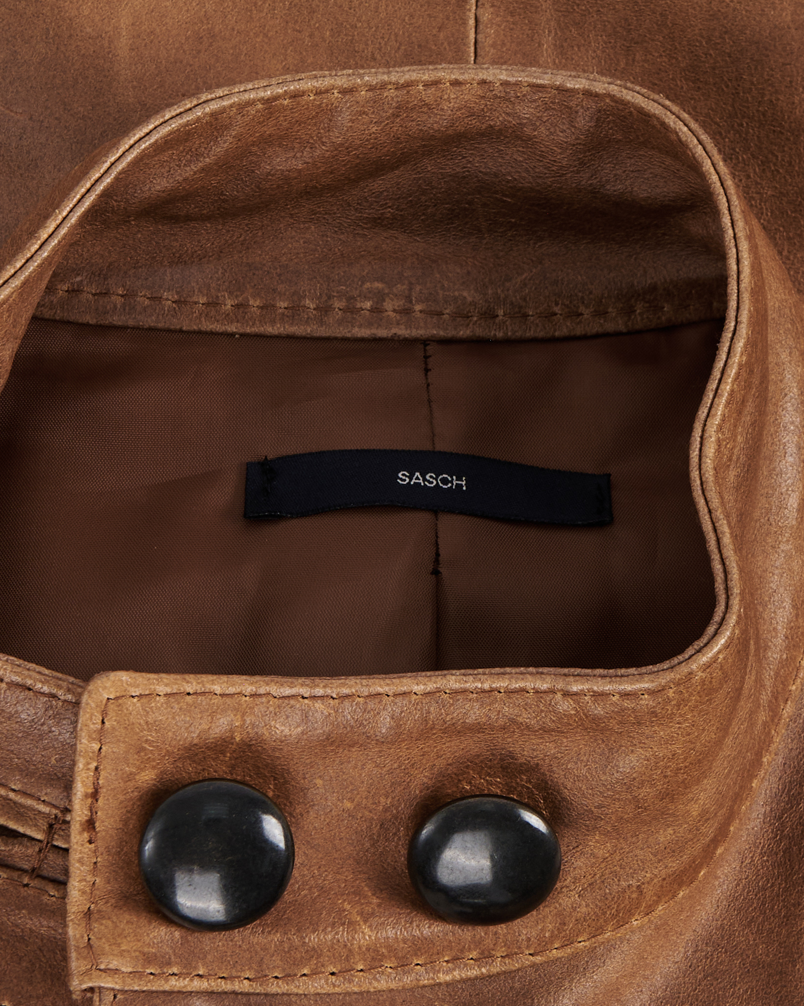 Куртка Sasch из натуральной кожи. Укороченный силуэт, четкая посадка.. Высокий воротник и крупные контрастные пуговицы, нагрудные клапаны и удобные карманы на молнии.