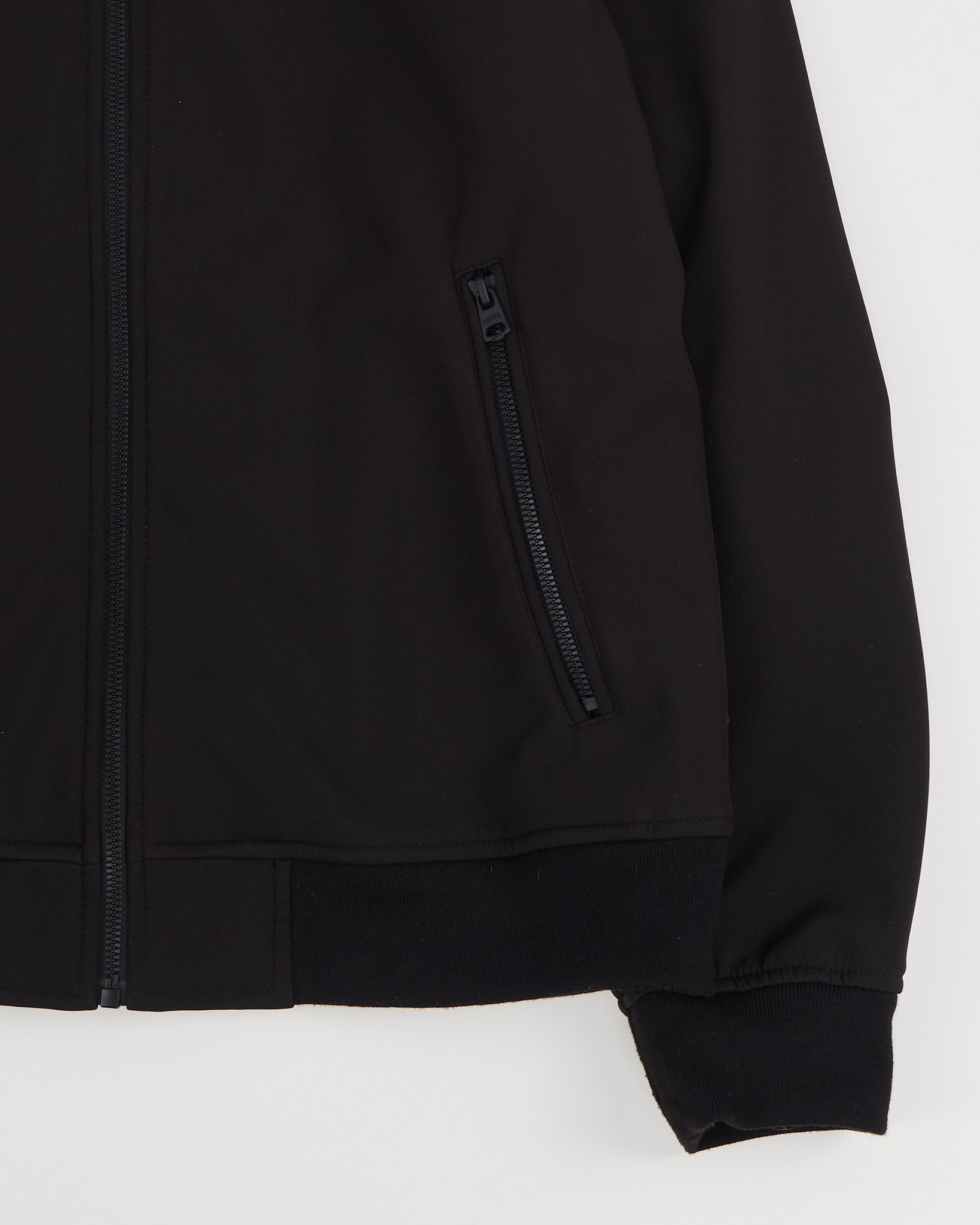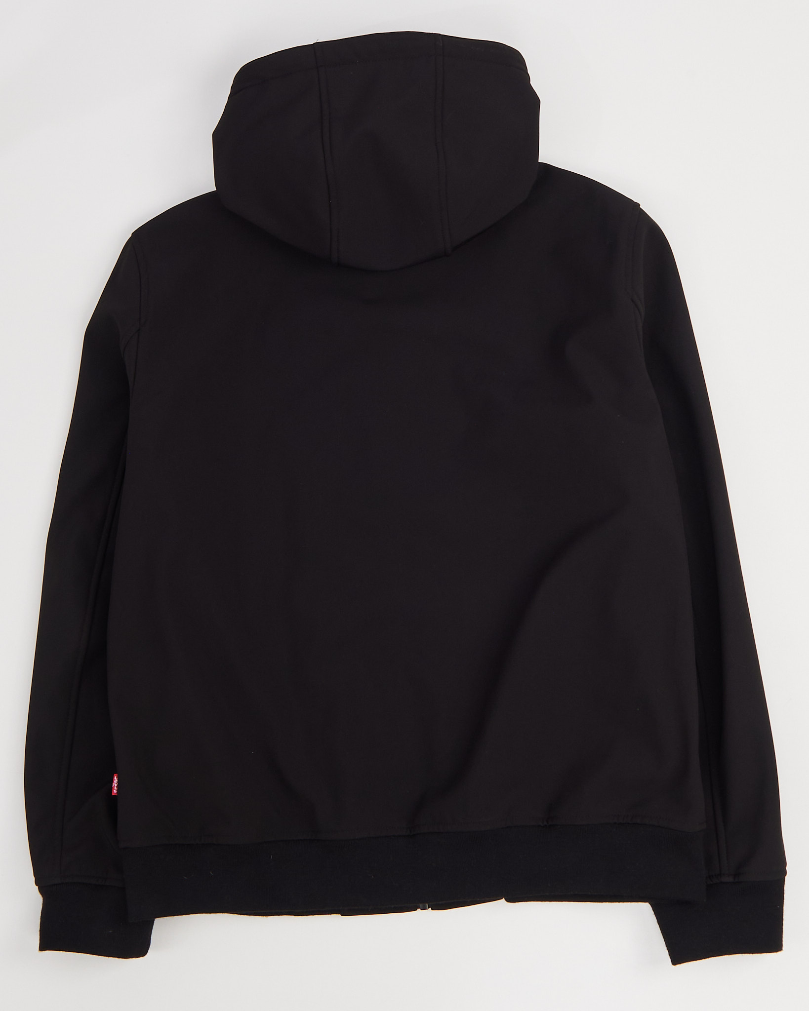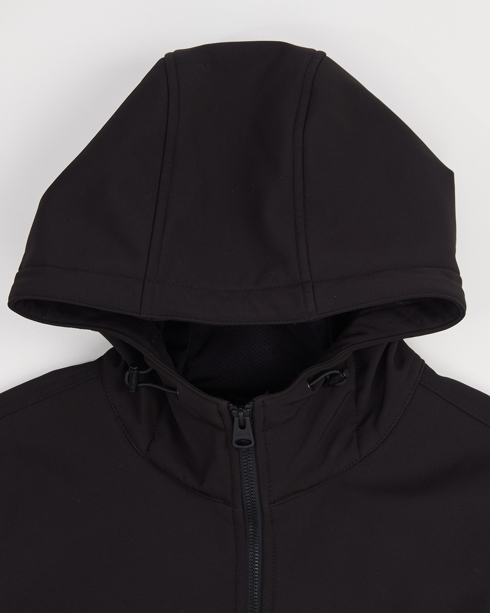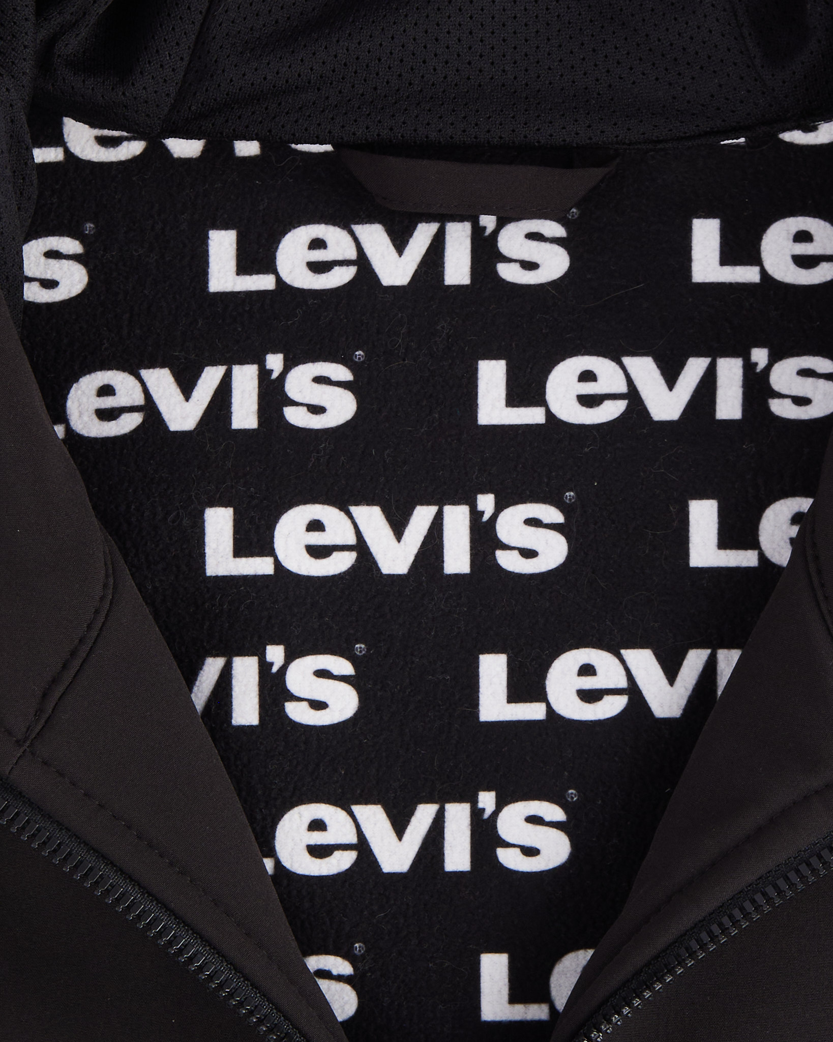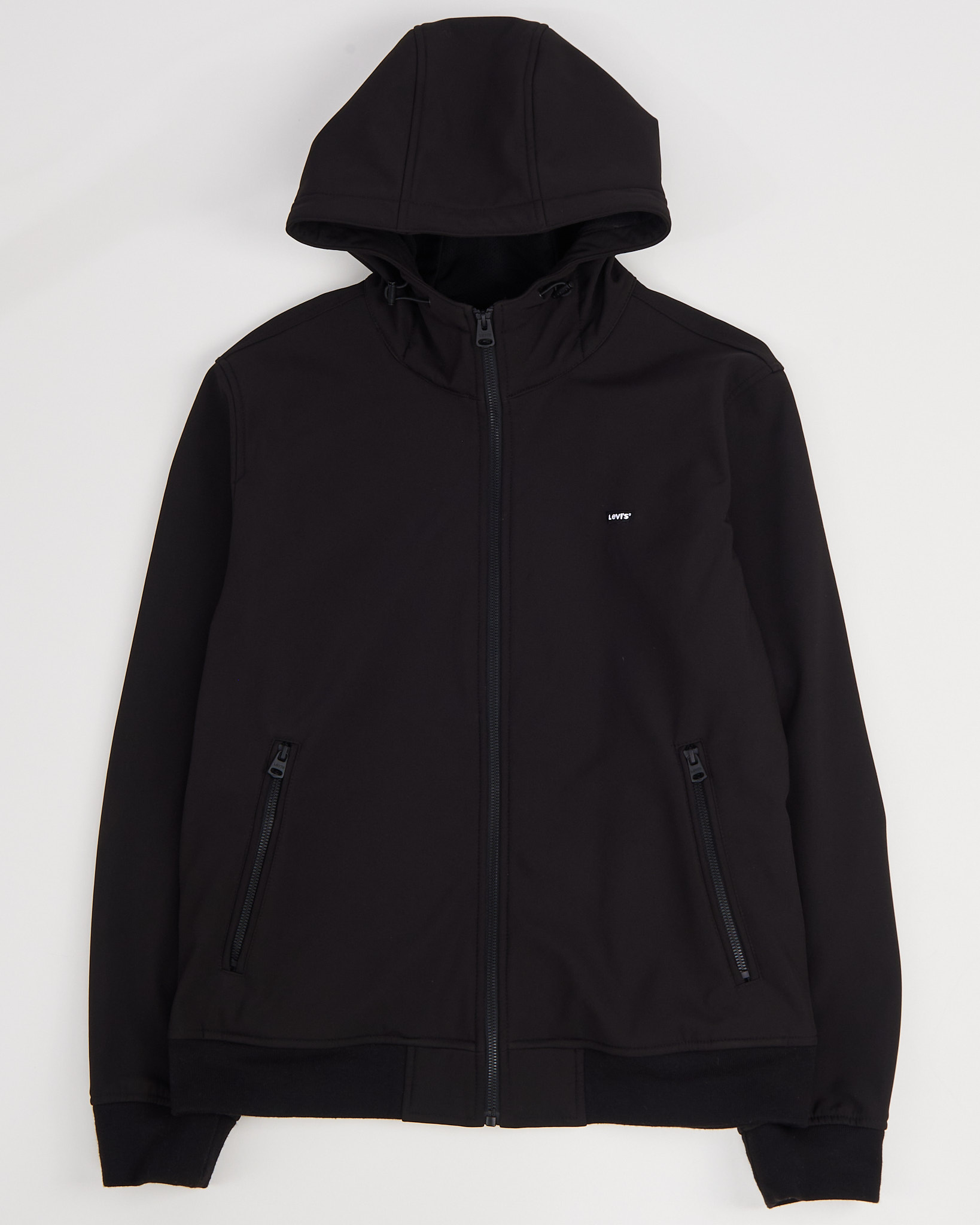 Куртка с капюшоном Levi's черного цвета. Плотный материал с гладкой поверхностью. Глубокий капюшон с утяжками. Застежка на молнии по всей длине. По бокам функциональные карманы на молнии. Внутри подкладка с повторяющимся логотипом бренда.