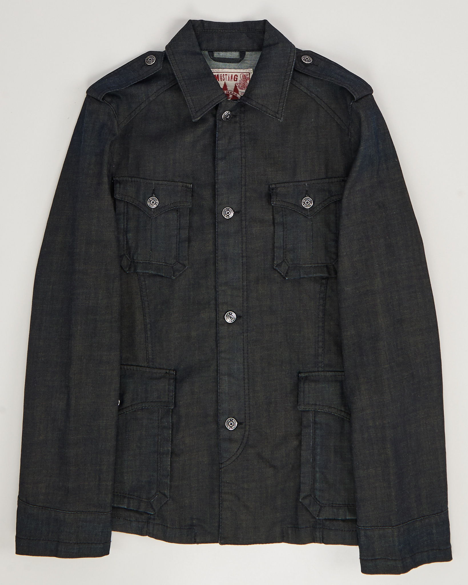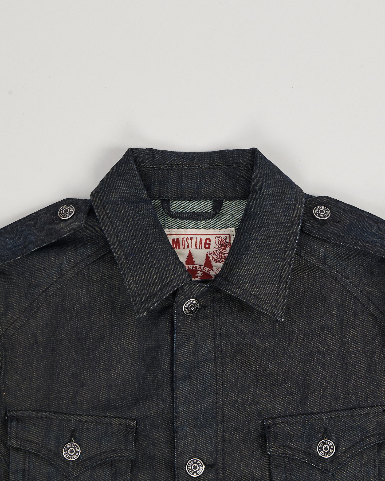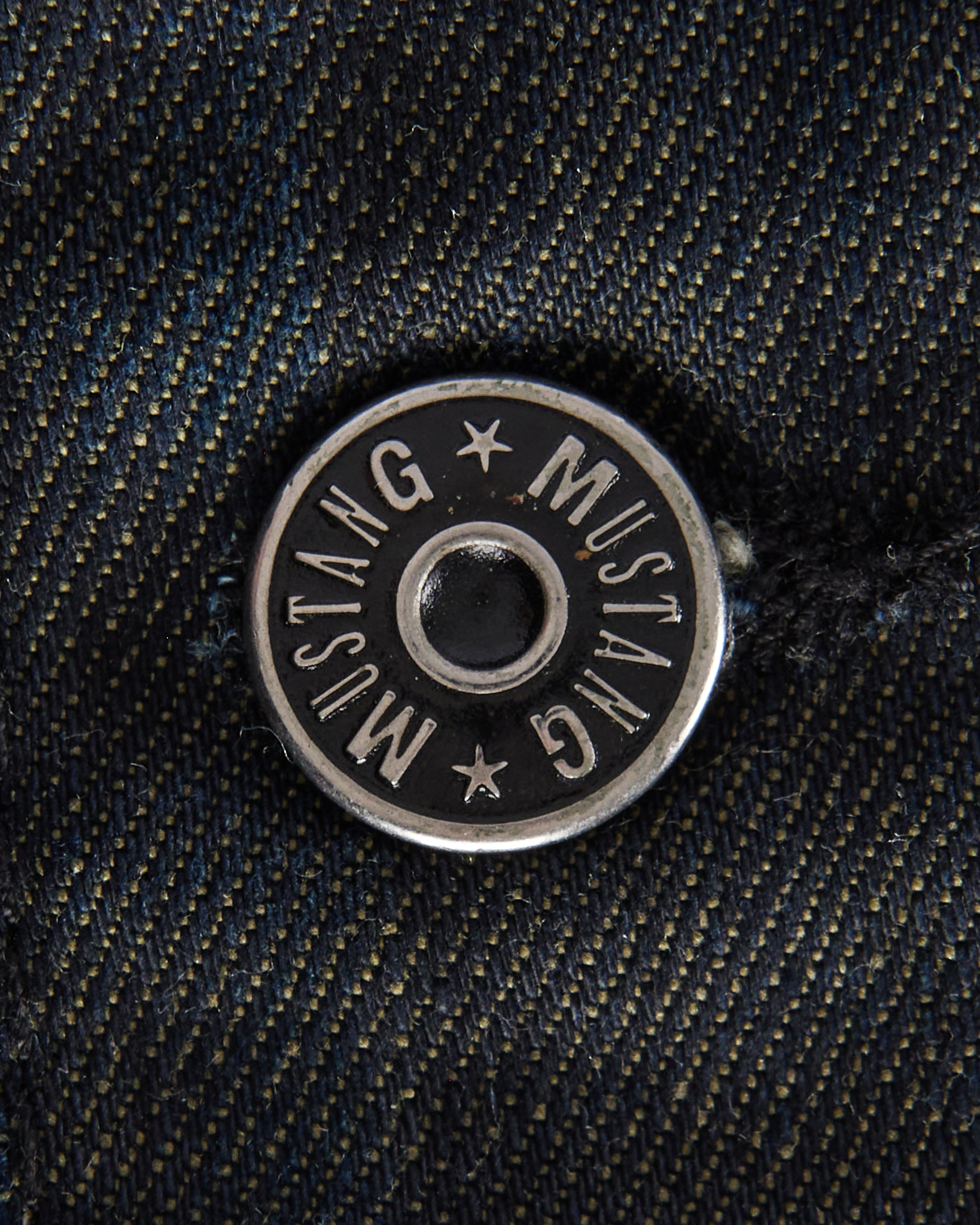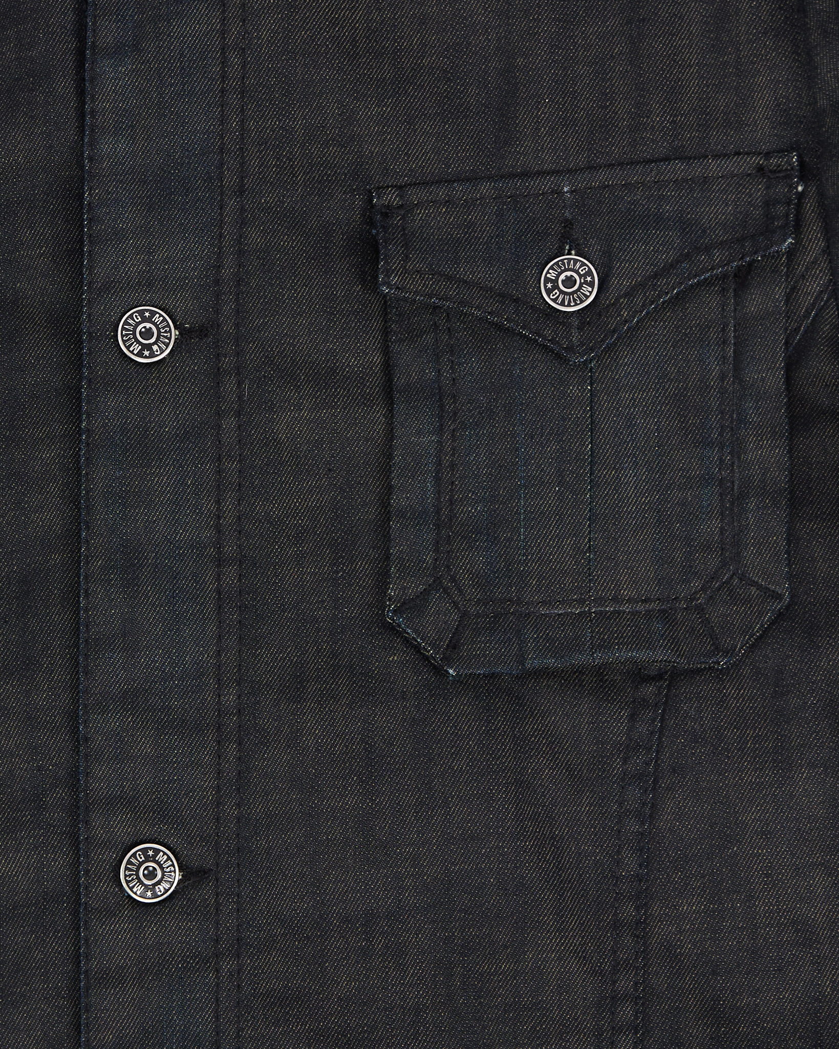Куртка Mustang из плотного тёмного денима. Прямая посадка, силуэт собранный. Четыре кармана и металлические кнопки. Деним с лёгким оттеночным переходом и фирменная фурнитура.
