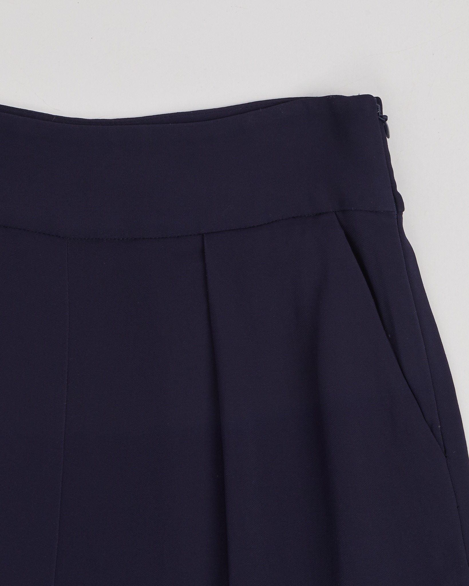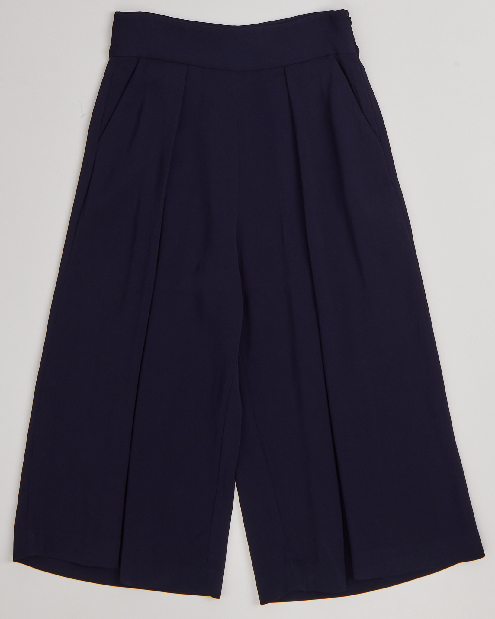 Кюлоты Polo Ralph Lauren темно - синего цвета. Высокая посадка. Линия талии оформлена широким поясом. Скрытая молния сбоку. Два функциональных боковых кармана. Аккуратные складки спереди.