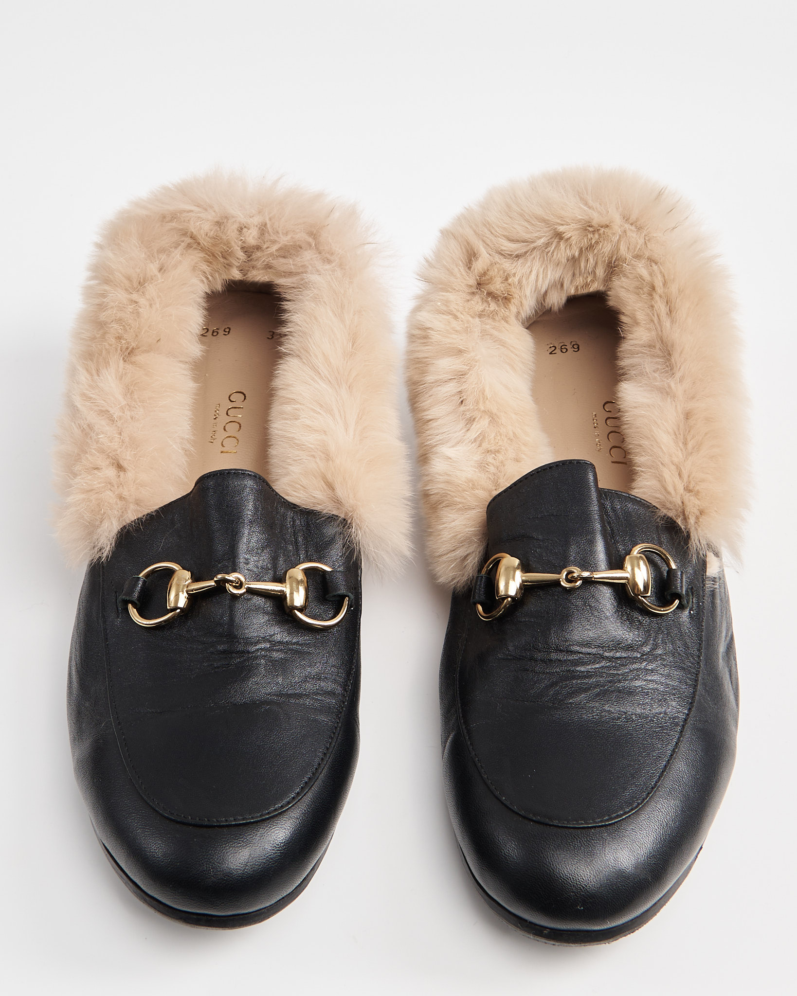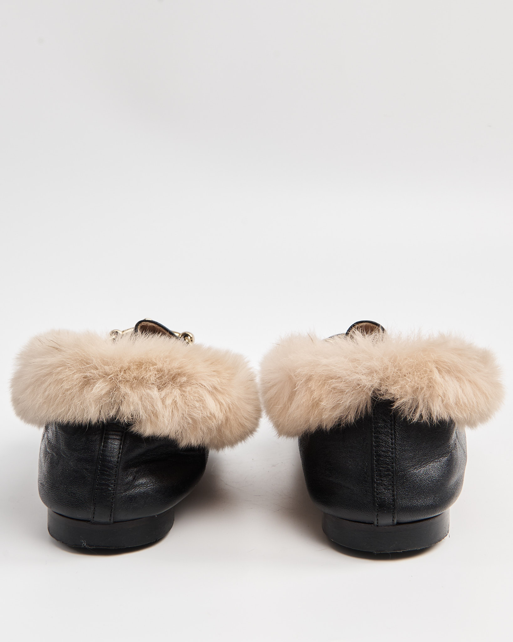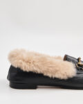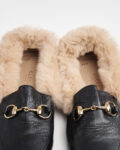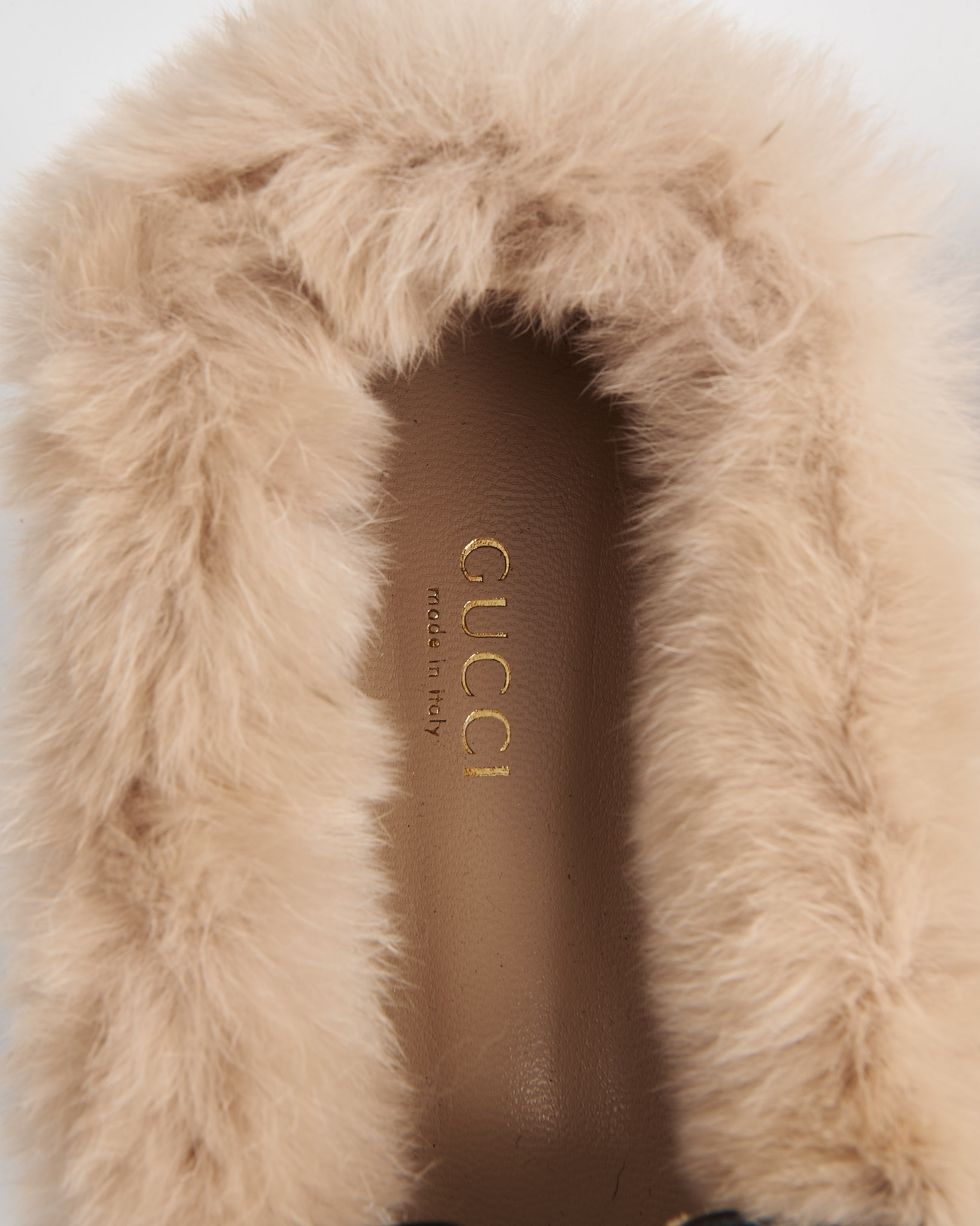 Винтажные лоферы Gucci с меховой отделкой. Натуральная кожа, золотистая пряжка-трензель.