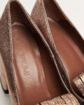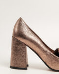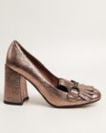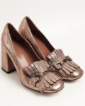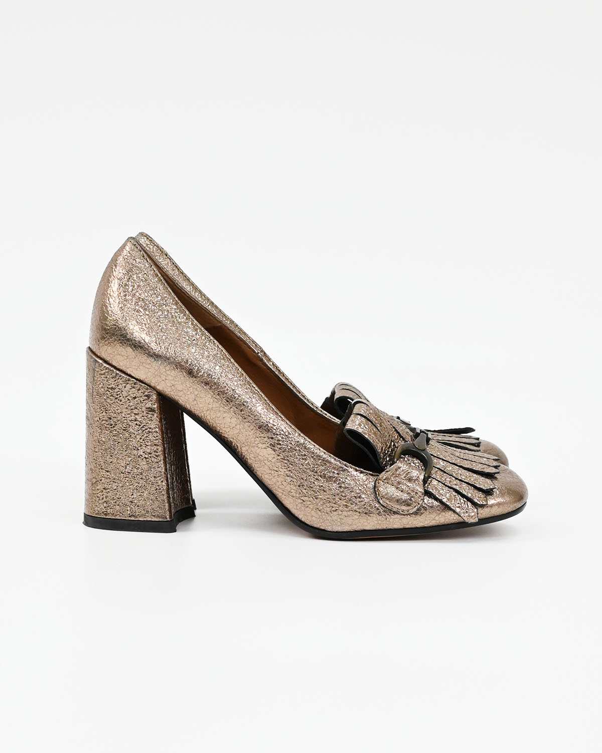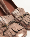 Бронзовые лоферы Piumi на массивном каблуке.  Натуральная кожа с напылением, крупная бахрома и темная металлическая фурнитура.