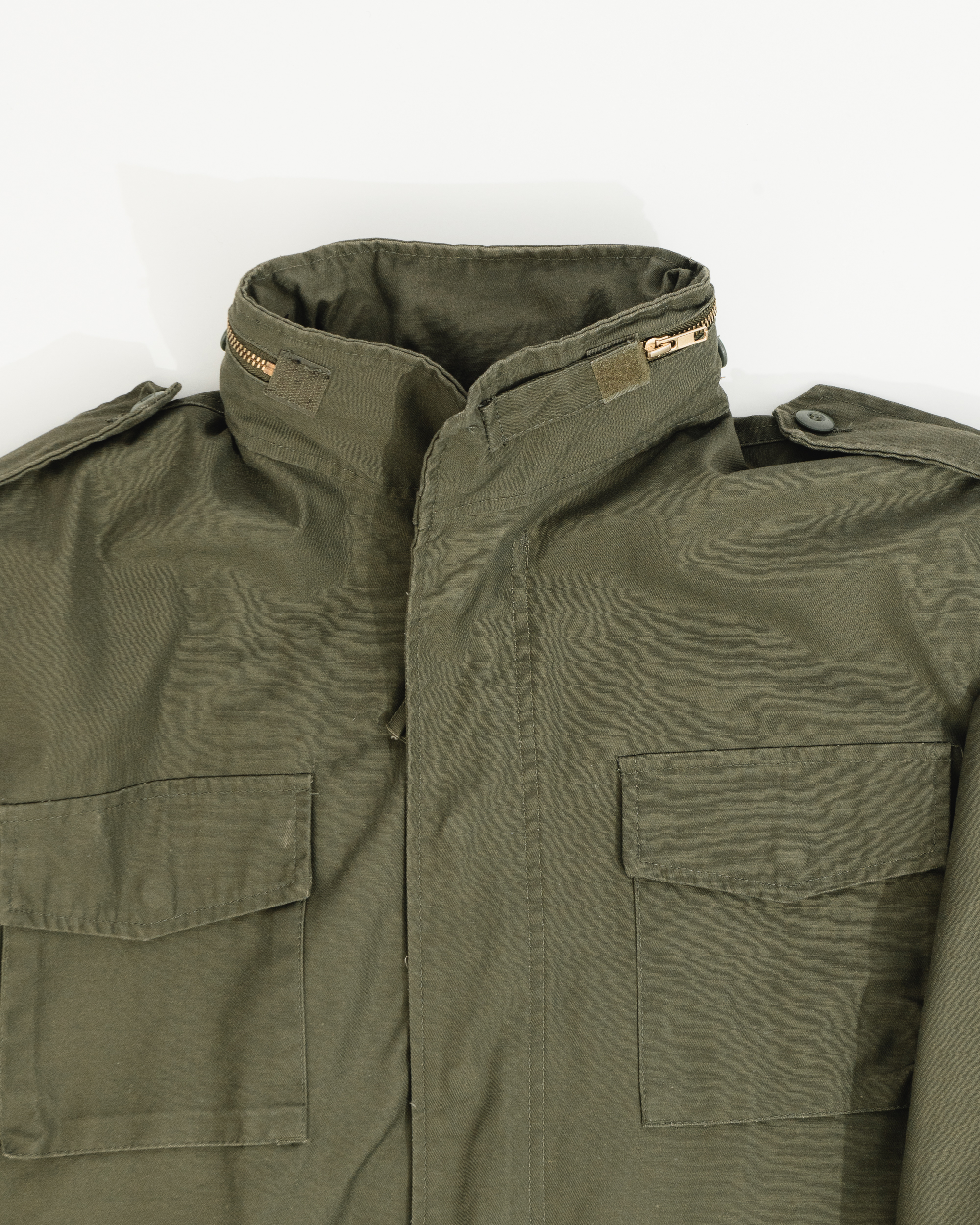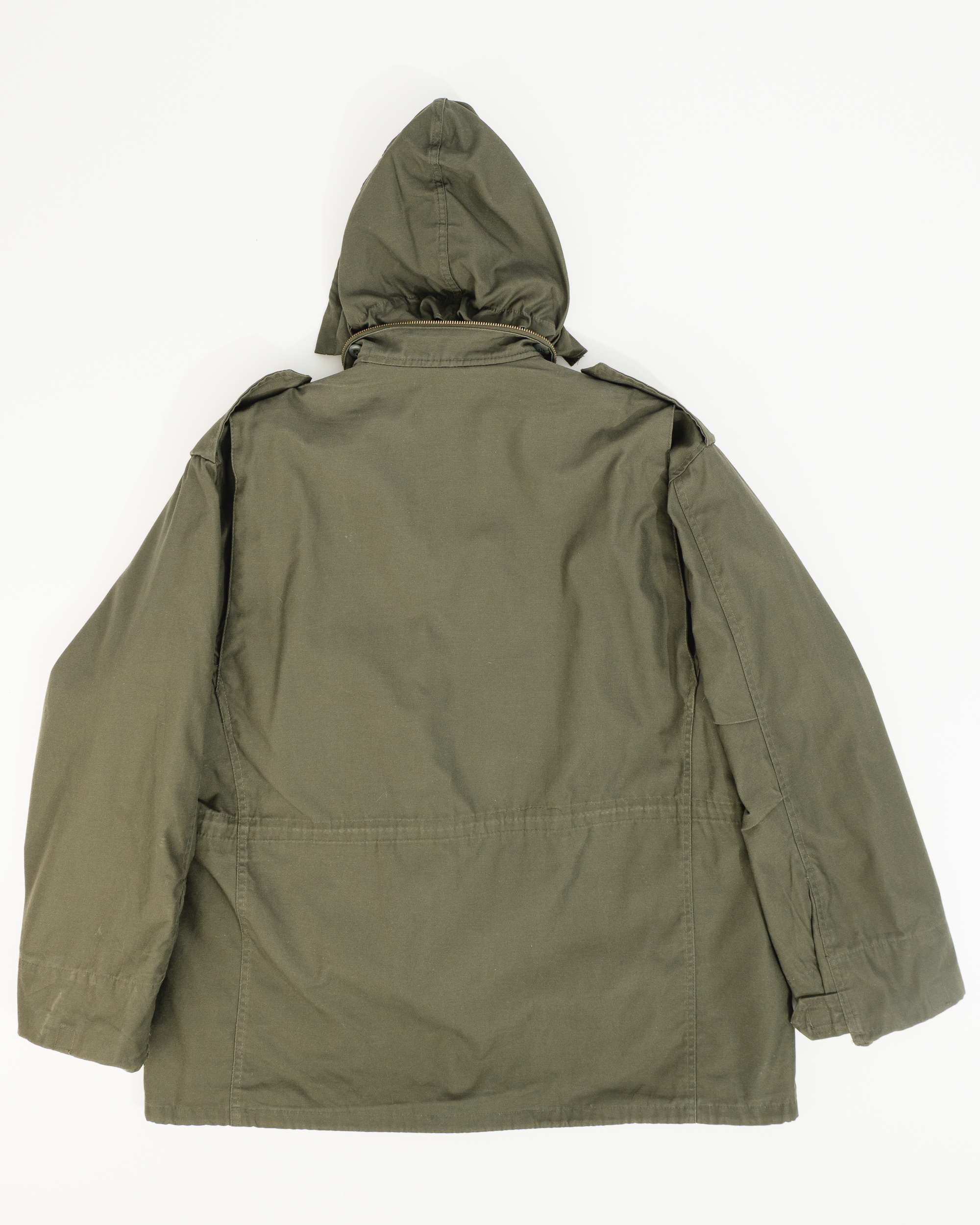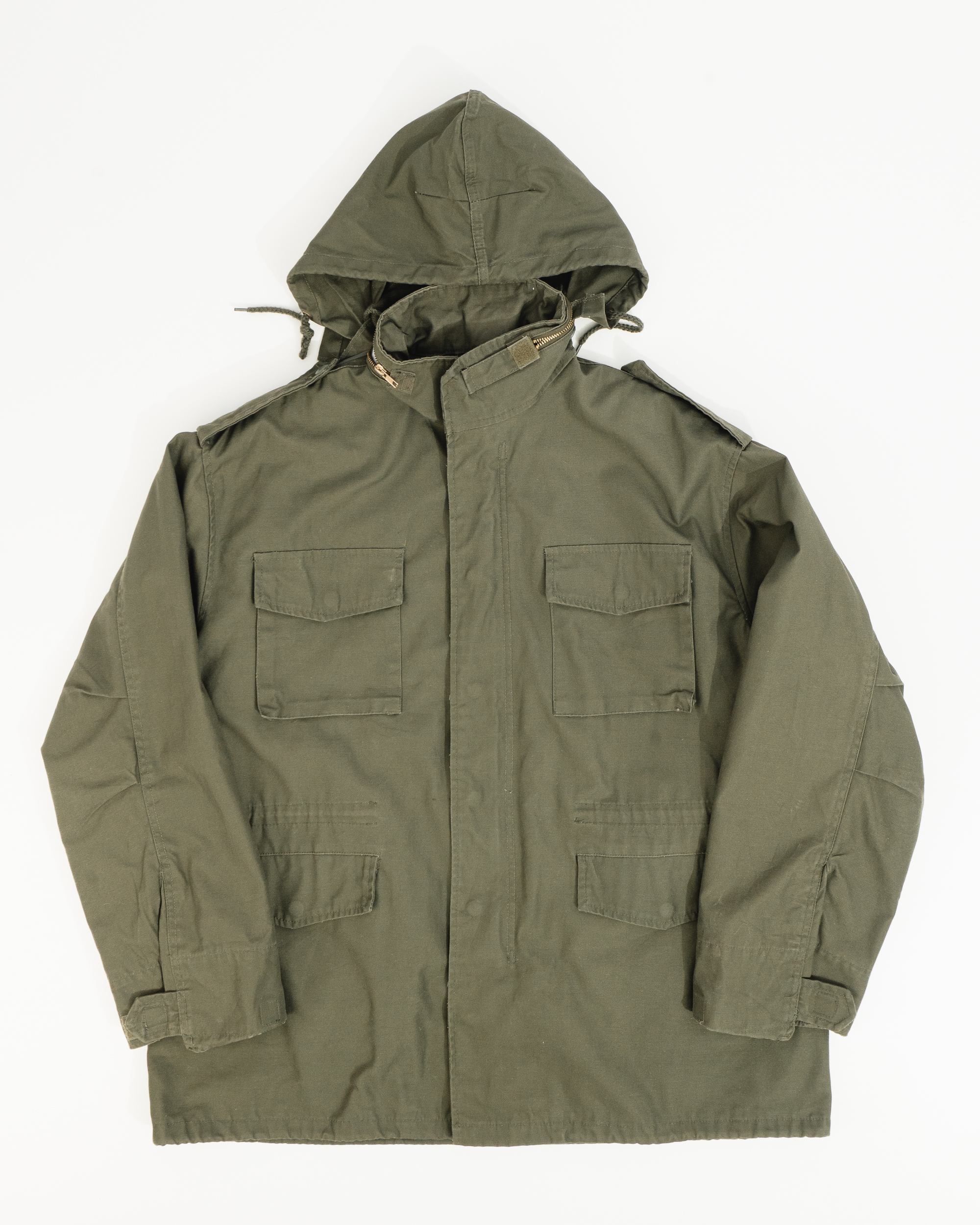 Милитари куртка из хлопковой ткани с добавлением полиэстера. Капюшон спрятанный в воротнике. Накладные карманы с клапанами. Фальш-погоны на плечах.