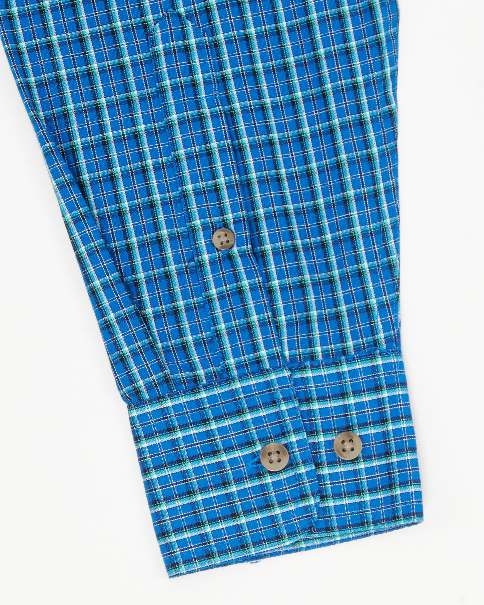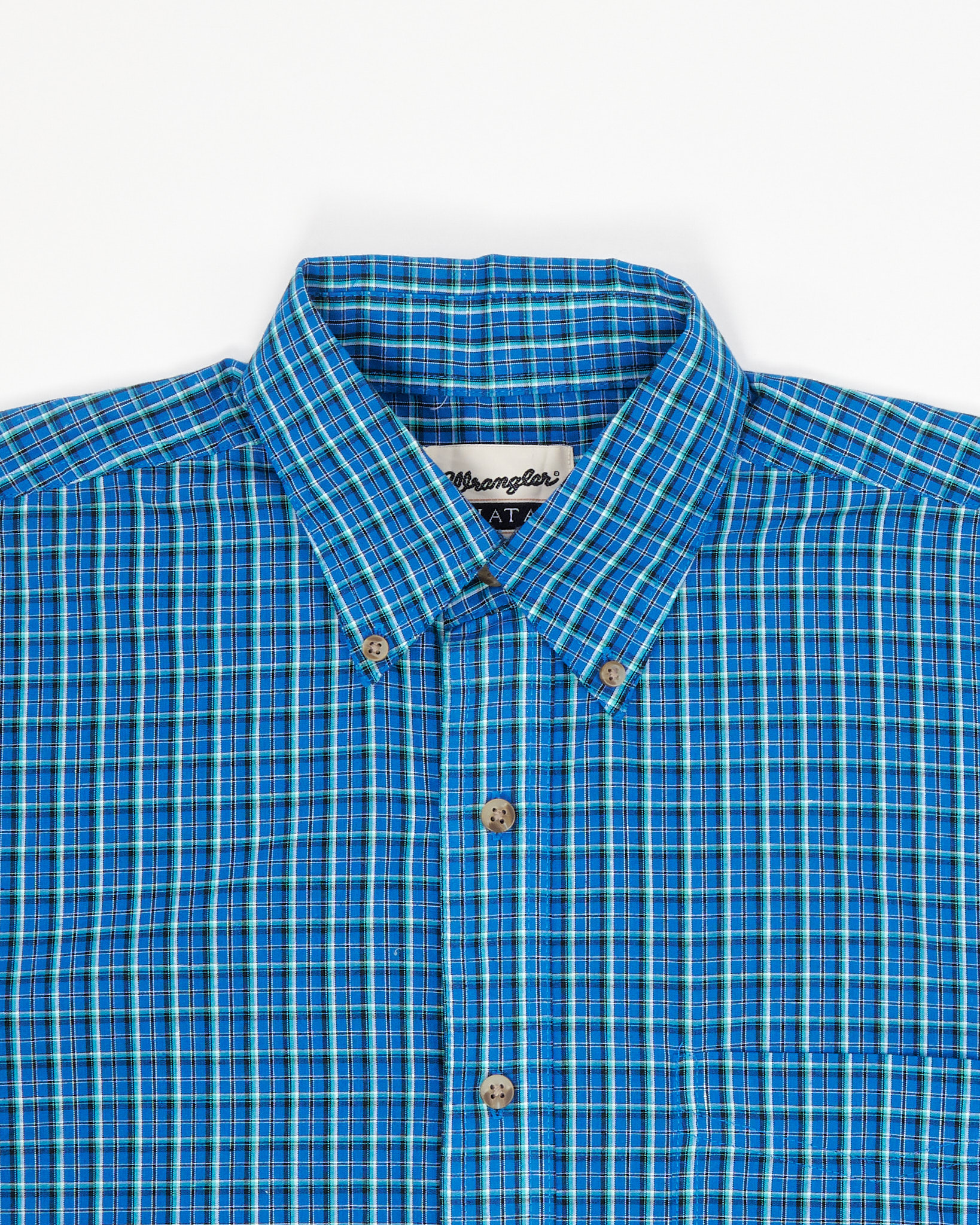 Классическая рубашка в клетку от Wrangler из коллекции Riata. Принт в сине-зелёную клетку с чёрными и белыми акцентами. Подходит как для повседневной носки, так и для полуофициальных образов. Классика американского casual.