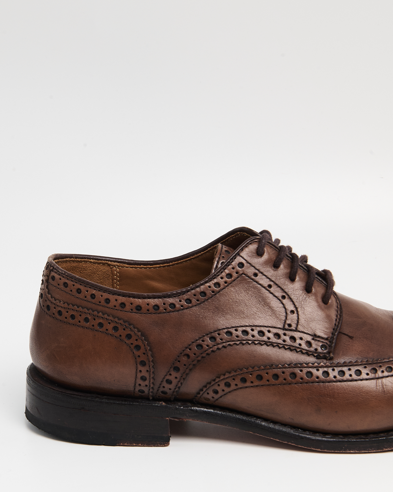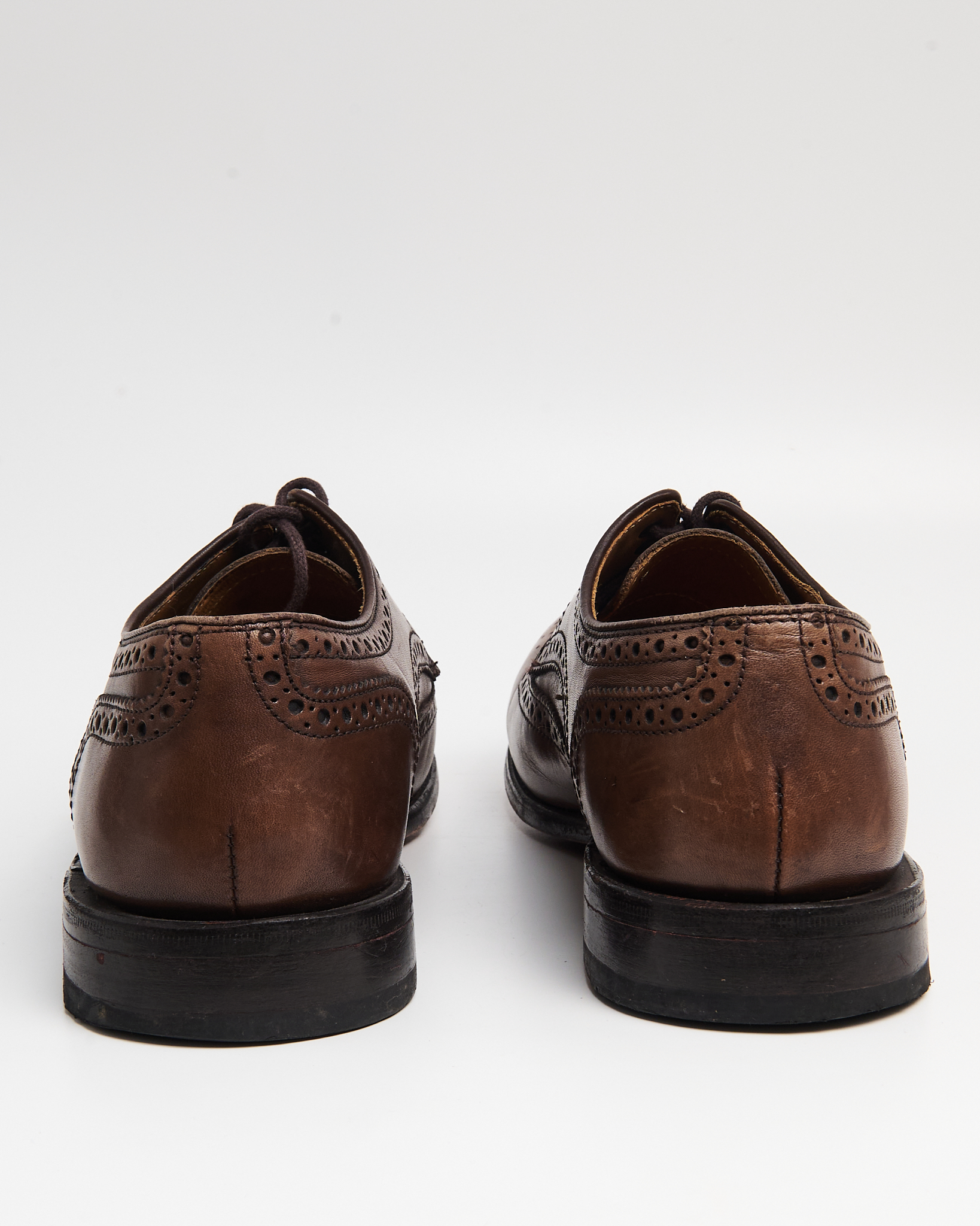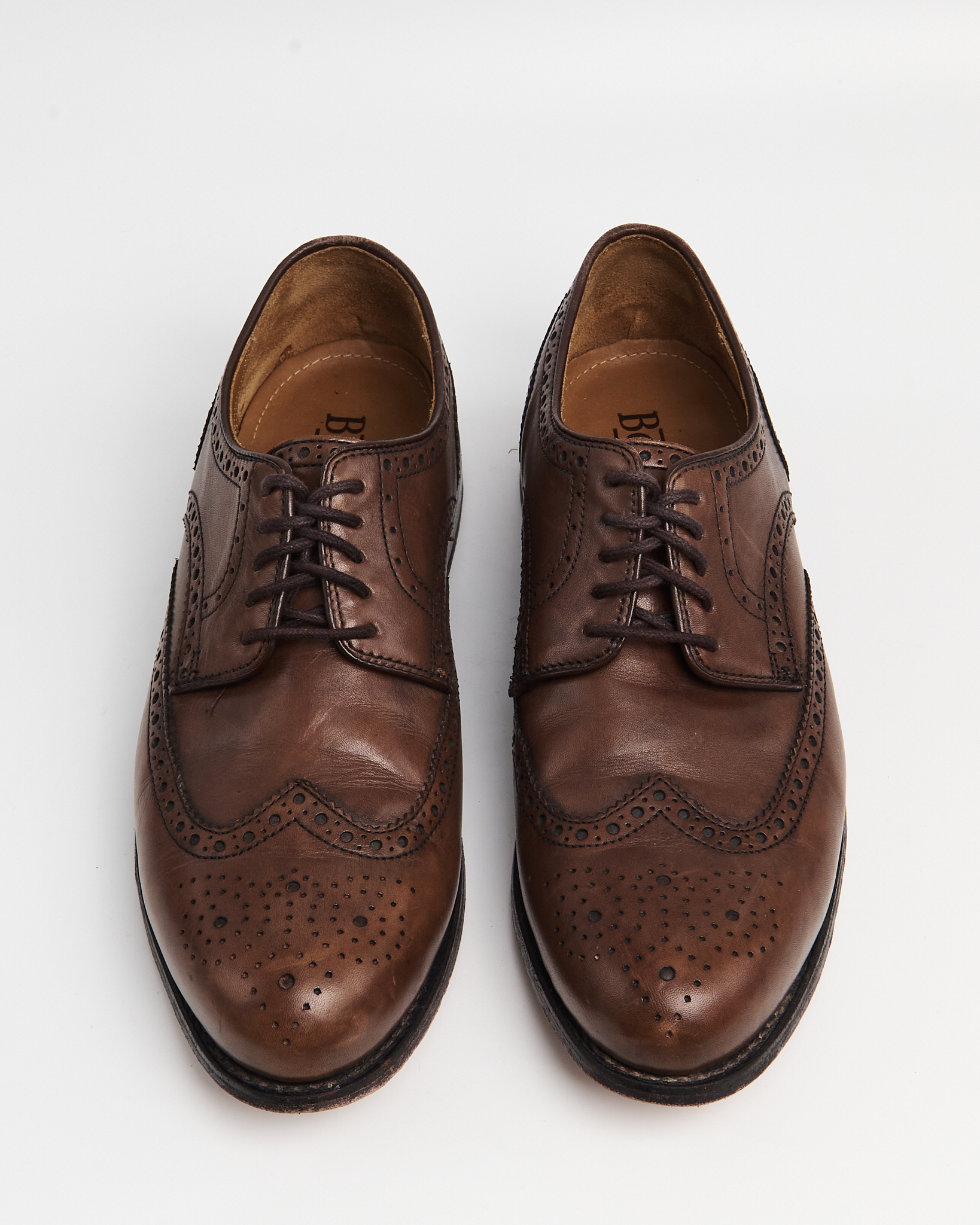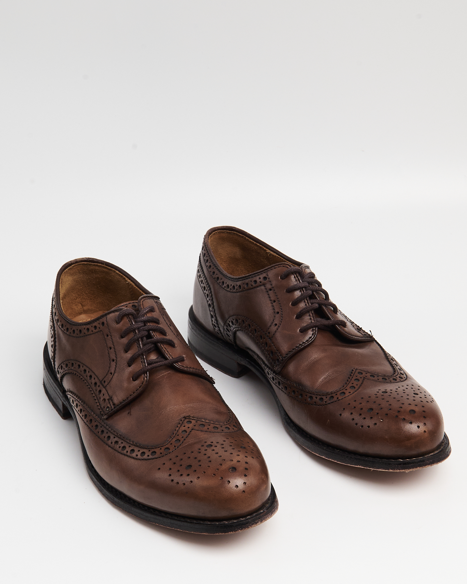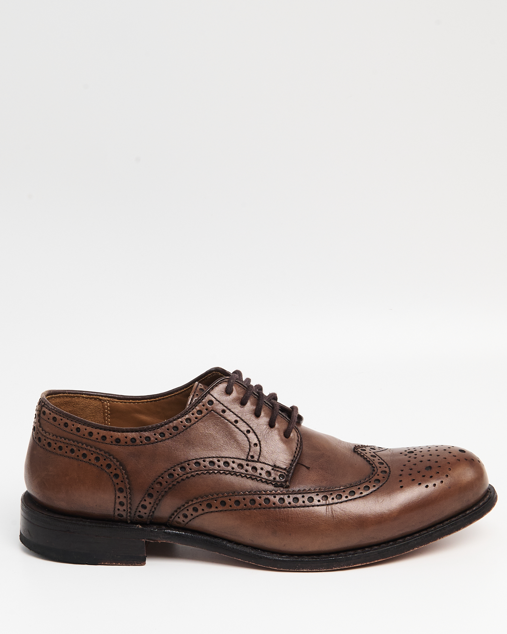 Классические броги от итальянского бренда Borelli. Модель из  натуральной кожи насыщенного коричневого оттенка с перфорационным узором и декоративной строчкой в технике wingtip.