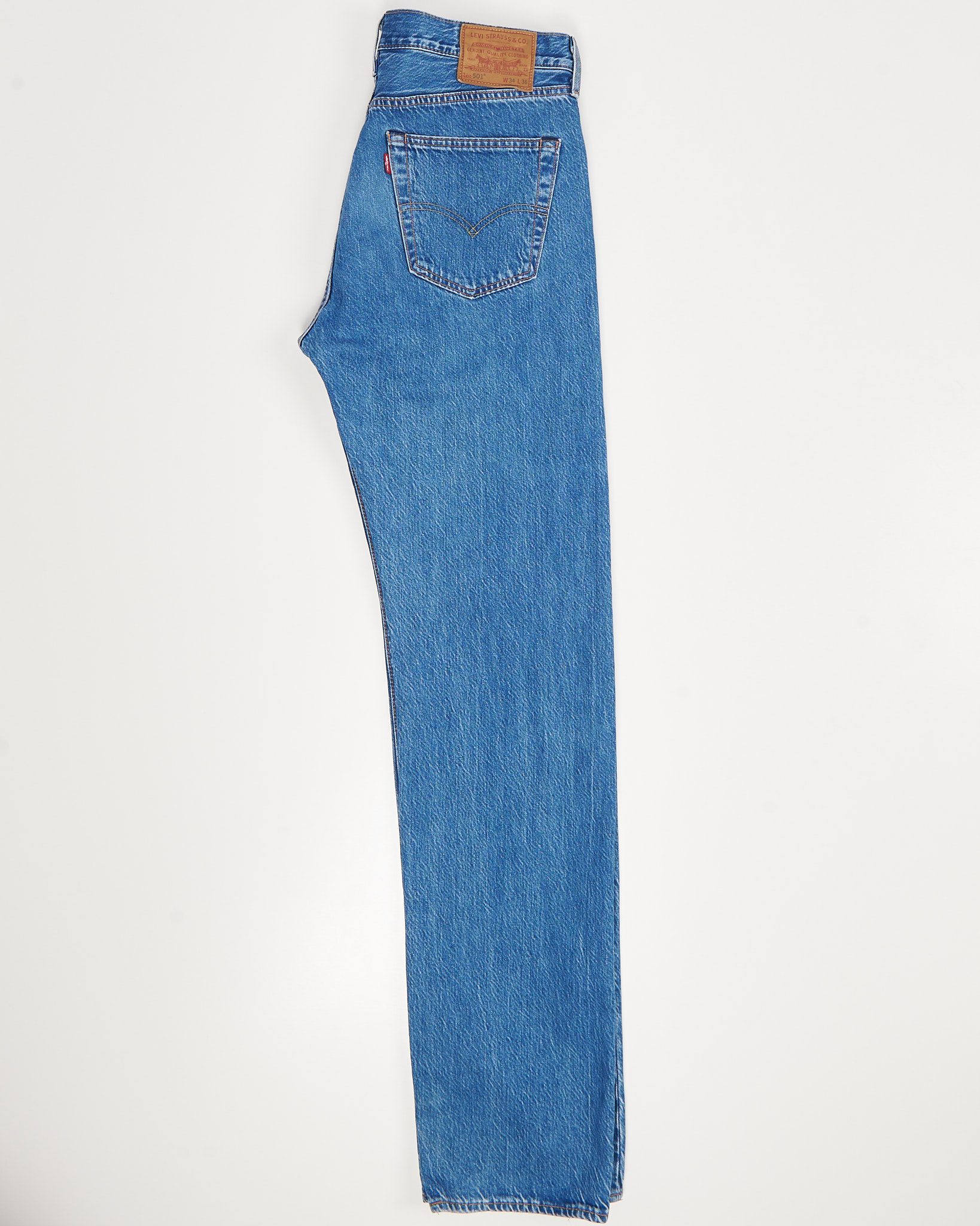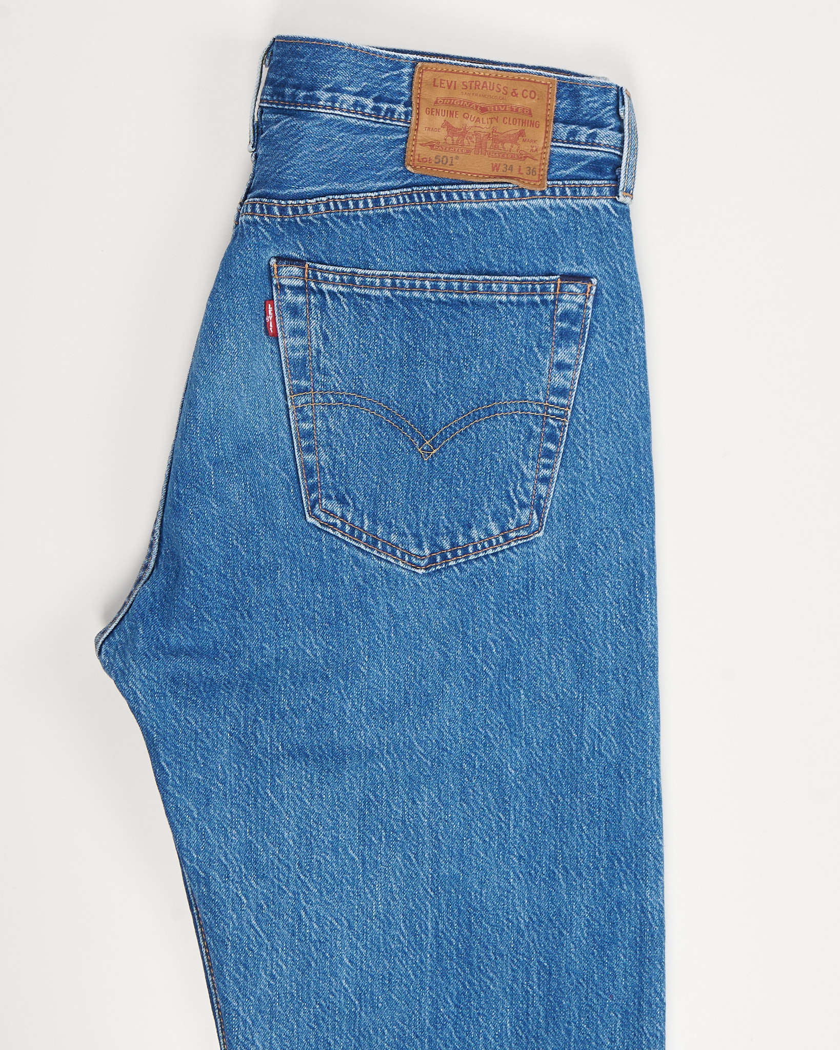 Оригинальные мужские джинсы Levi's 501 Premium в винтажном стиле. Модель выполнена в классическом синем цвете с легким состаренным эффектом. Прямая классическая посадка (straight fit).