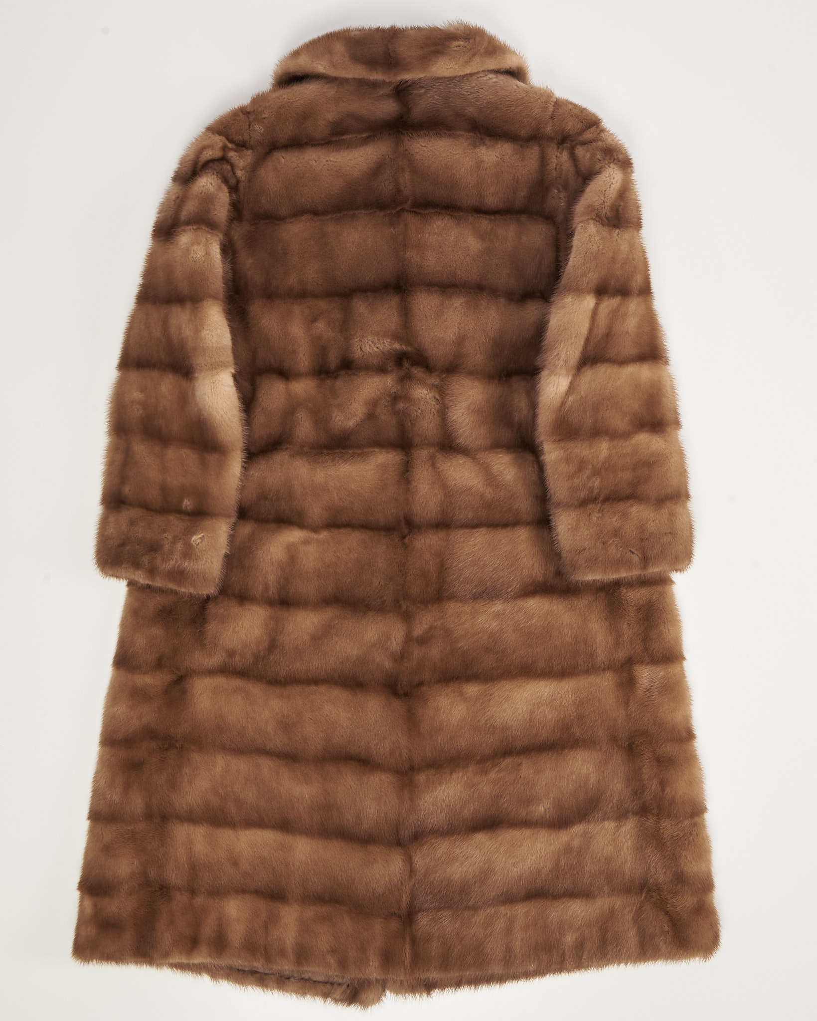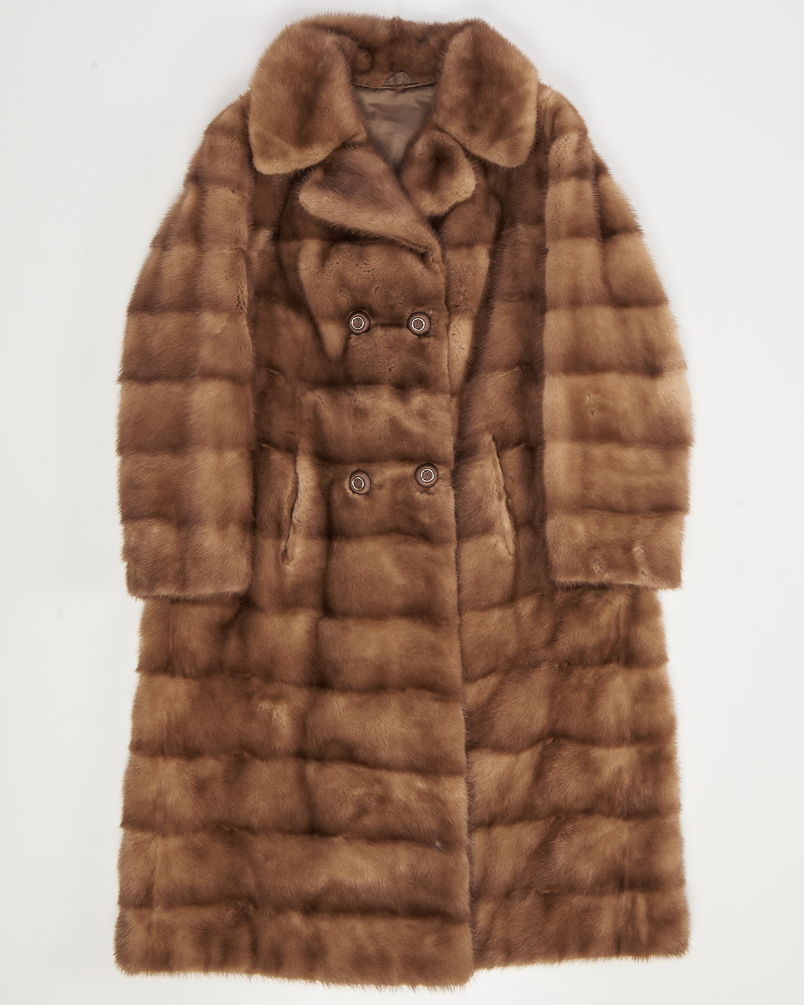 Шуба из натуральной норки от бренда Marinelli с маркировкой Saga Selected.Мех плотный, гладкий и шелковистый на ощупь. Посадка прямая и комфортная, линия плеч аккуратная.Двубортная застёжка и широкие меховые лацканы подчёркивают статусный характер вещи.