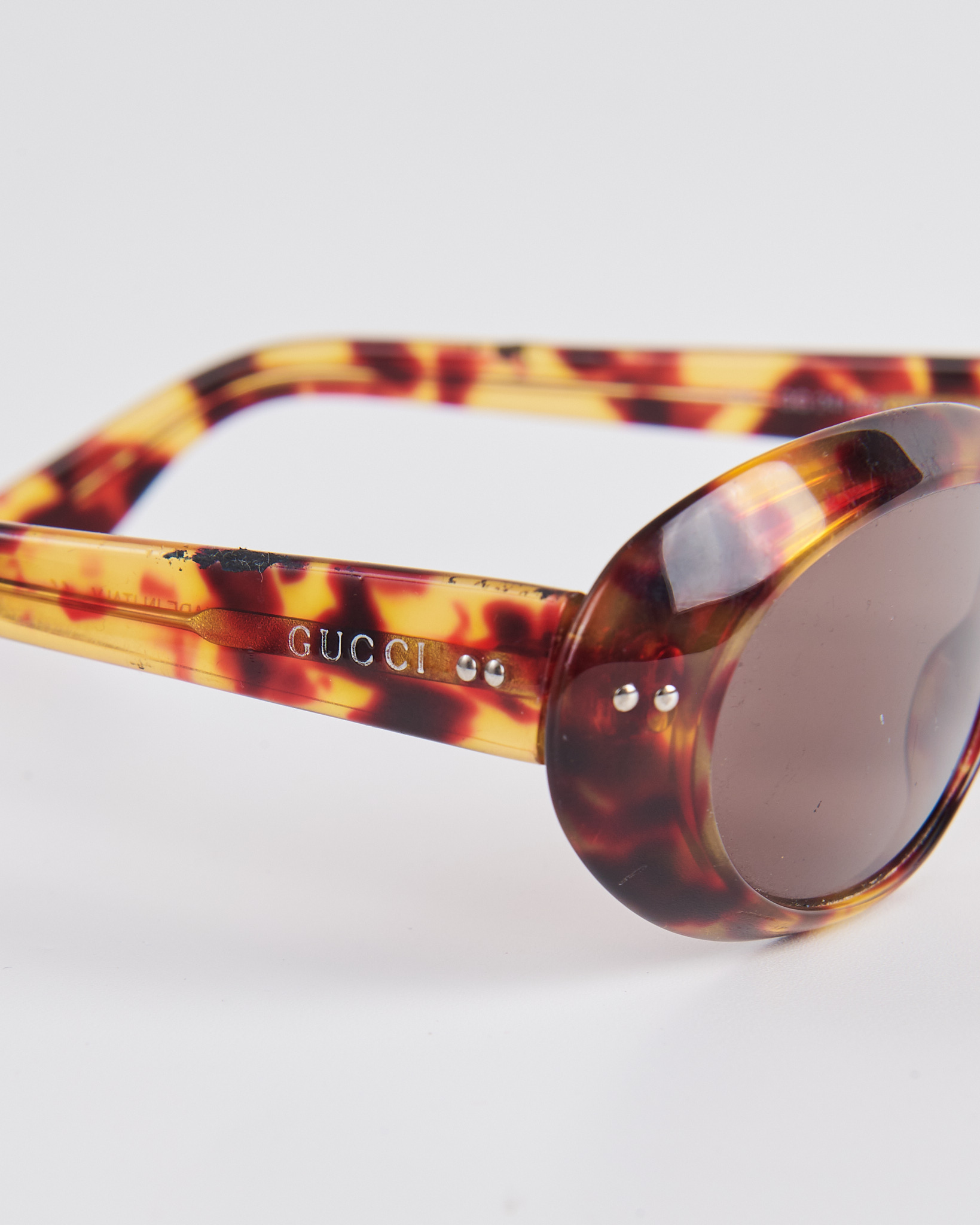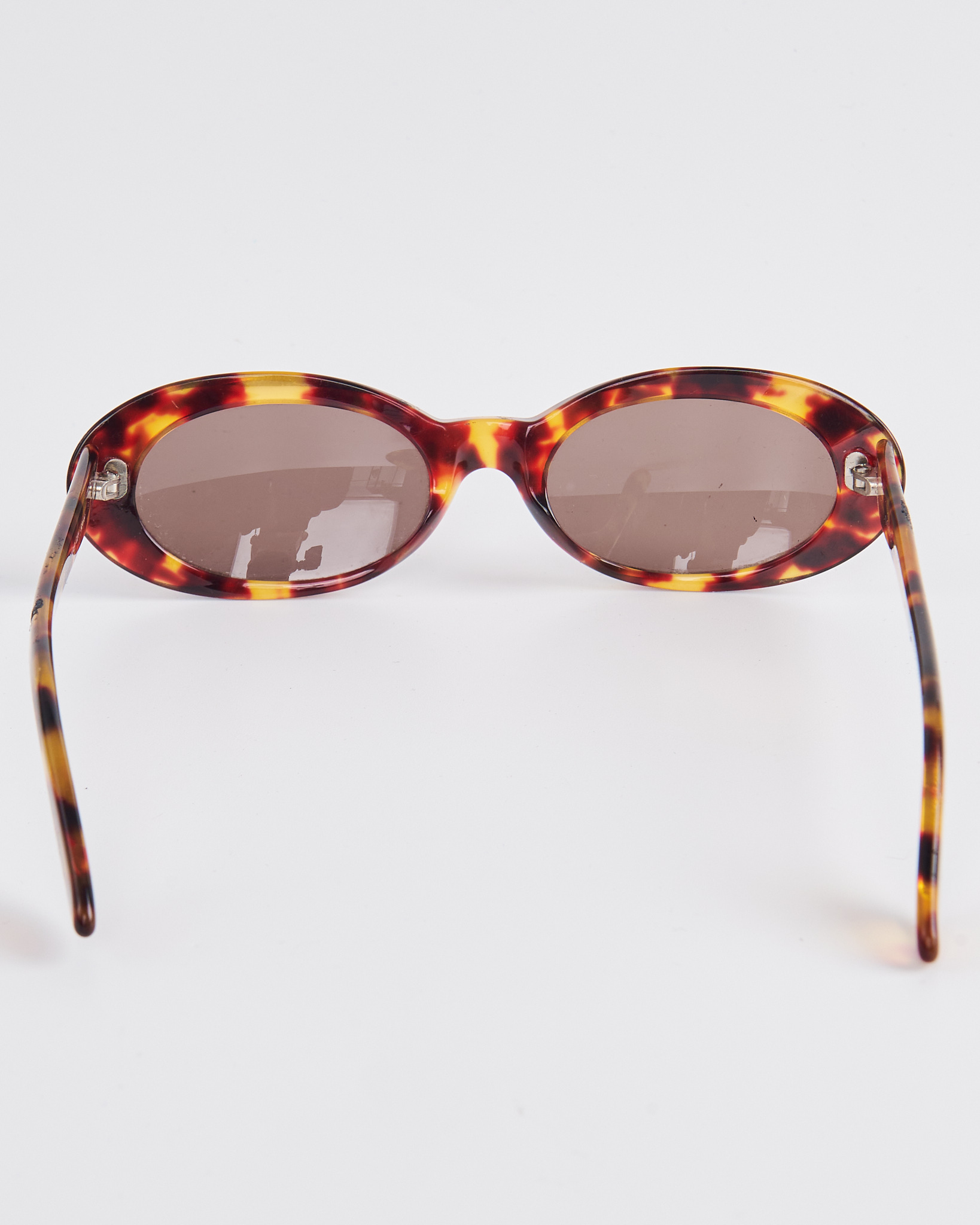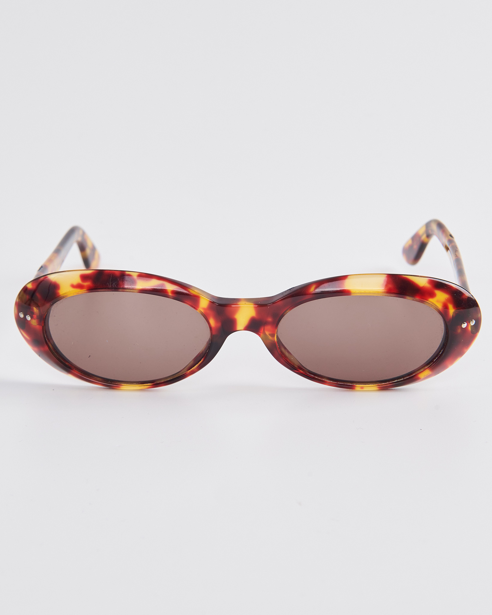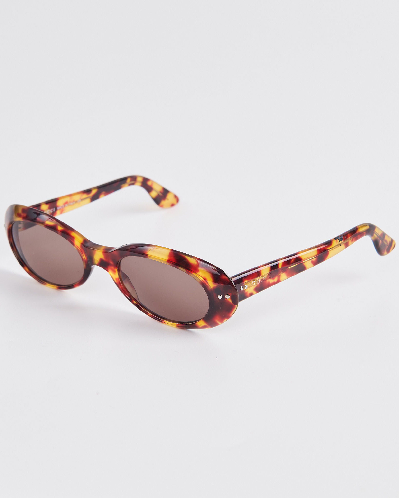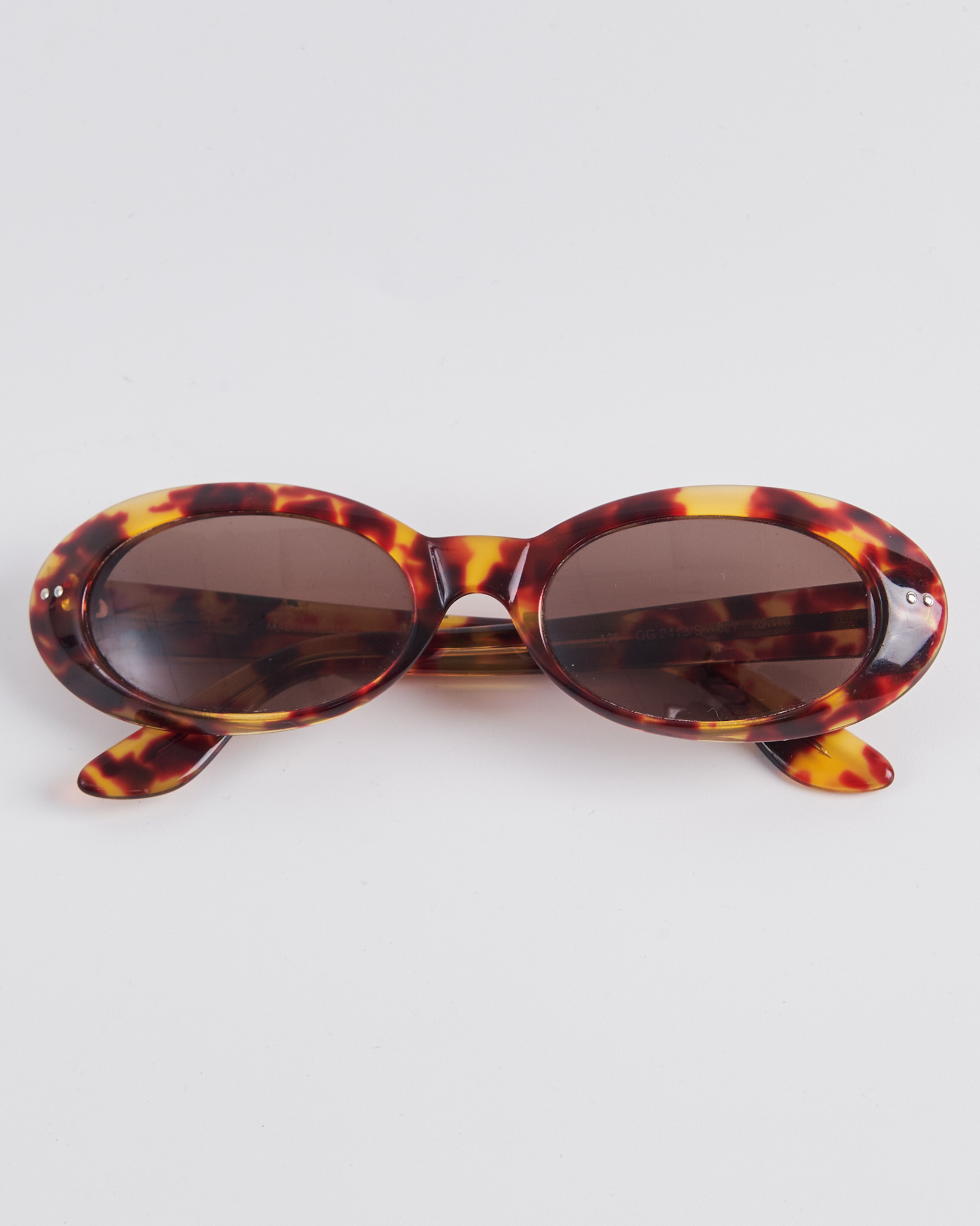 Солнцезащитные очки с черепаховым рисунком, с узкой овальной формой оправы. Made in Italy.