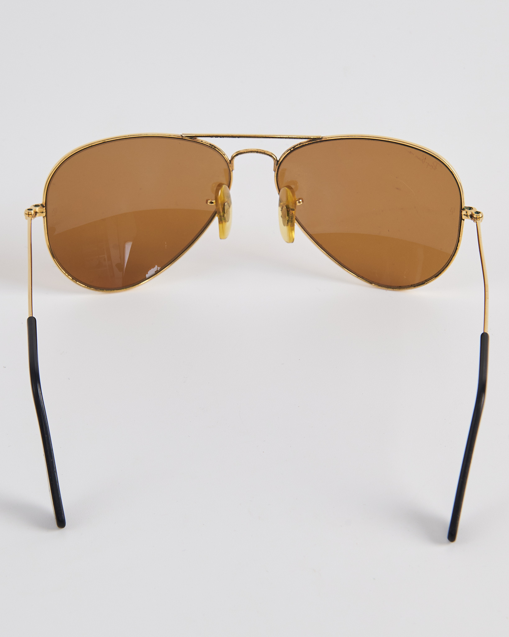 Очки Ray-Ban в металлической оправе золотистого оттенка с янтарными линзами. Посадка аккуратная, форма хорошо фиксируется и комфортно держится в течение дня. Линзы мягко фильтруют свет.