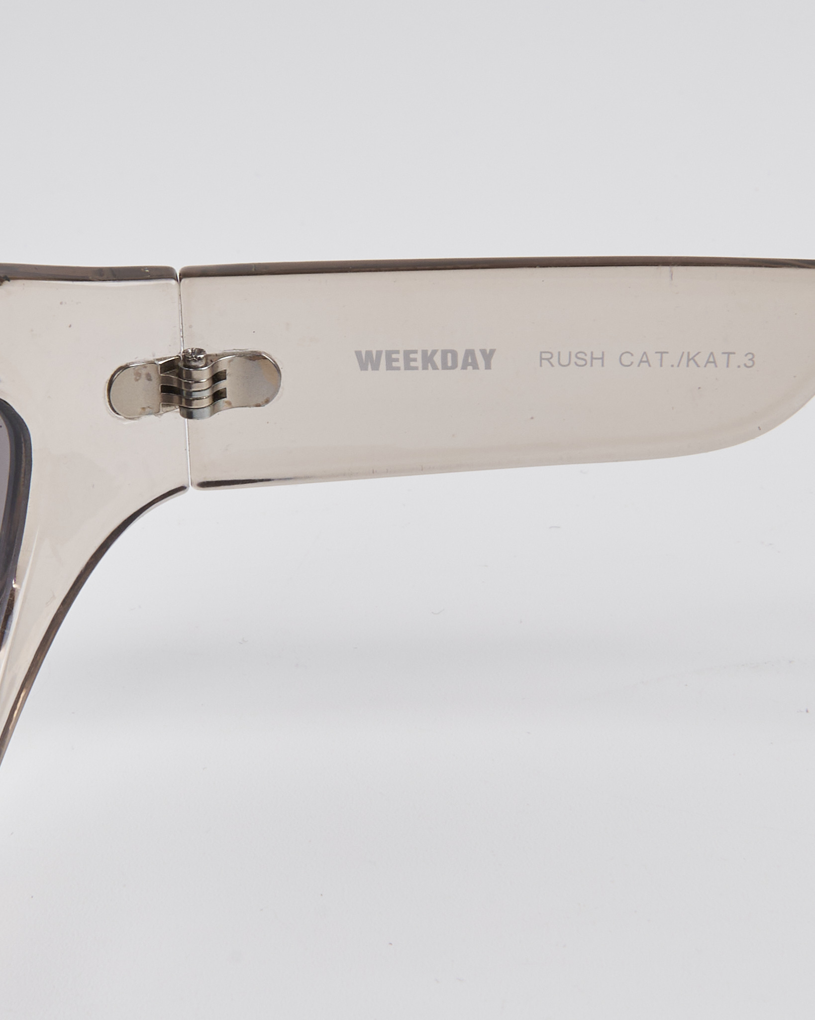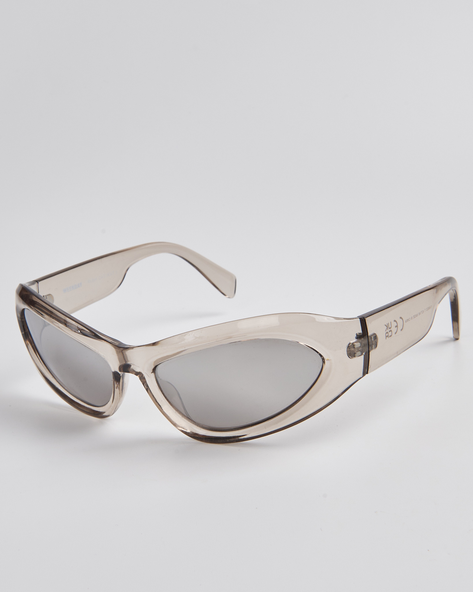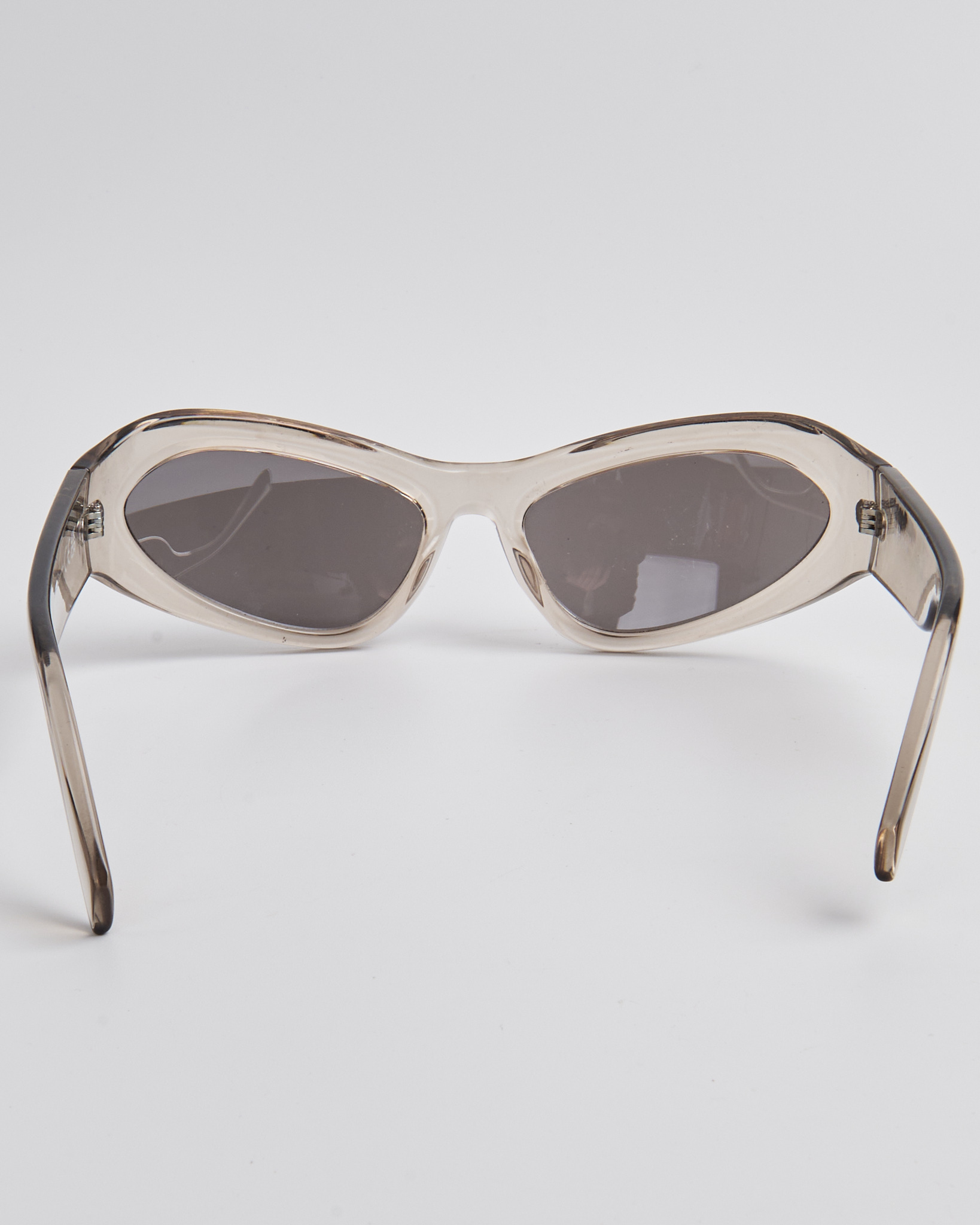 Очки с вытянутой овальной формой линз. Полупрозрачная оправа в оттенке металлик