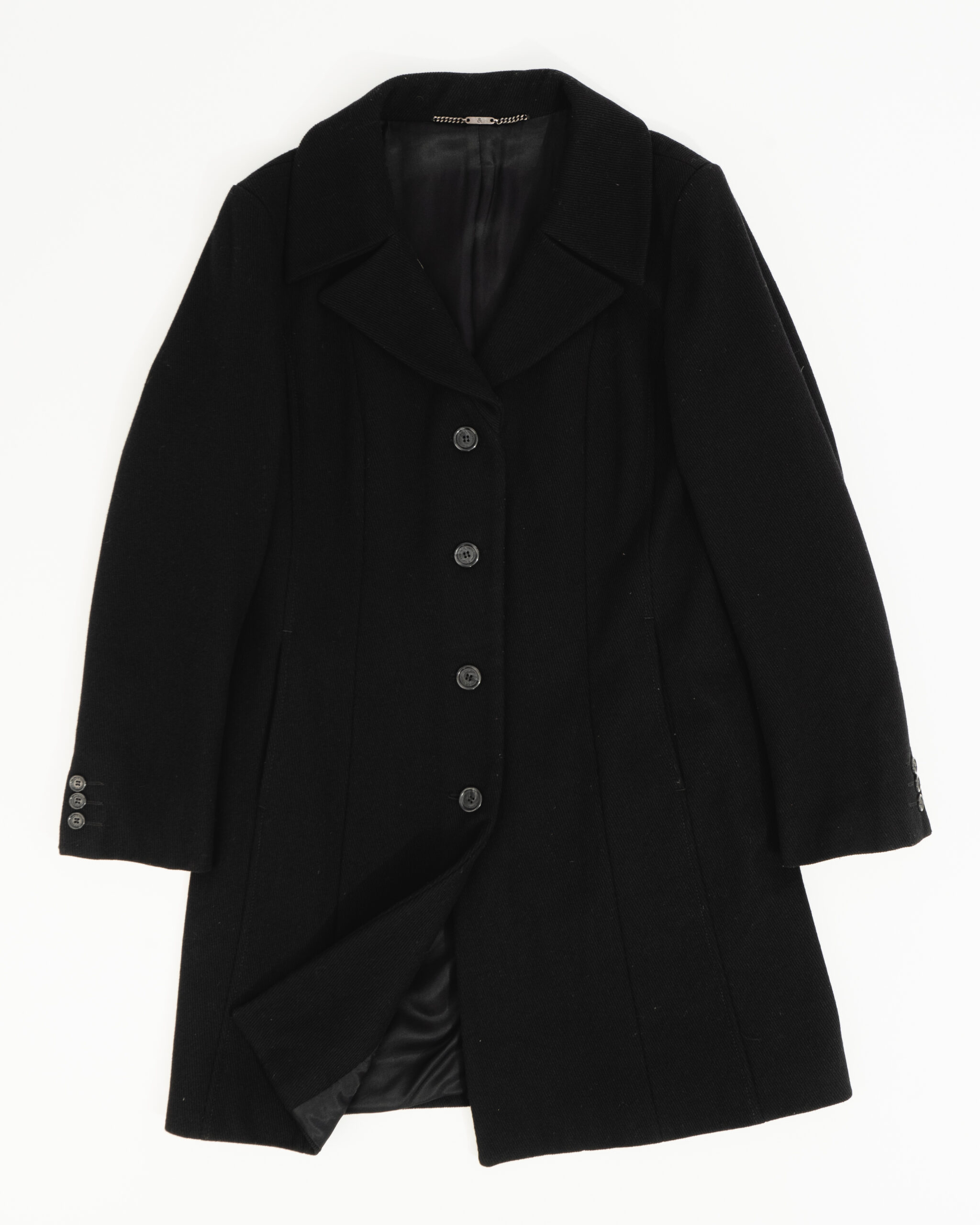 - Пальто выполнено из плотной шерстяной ткани, которая держит форму